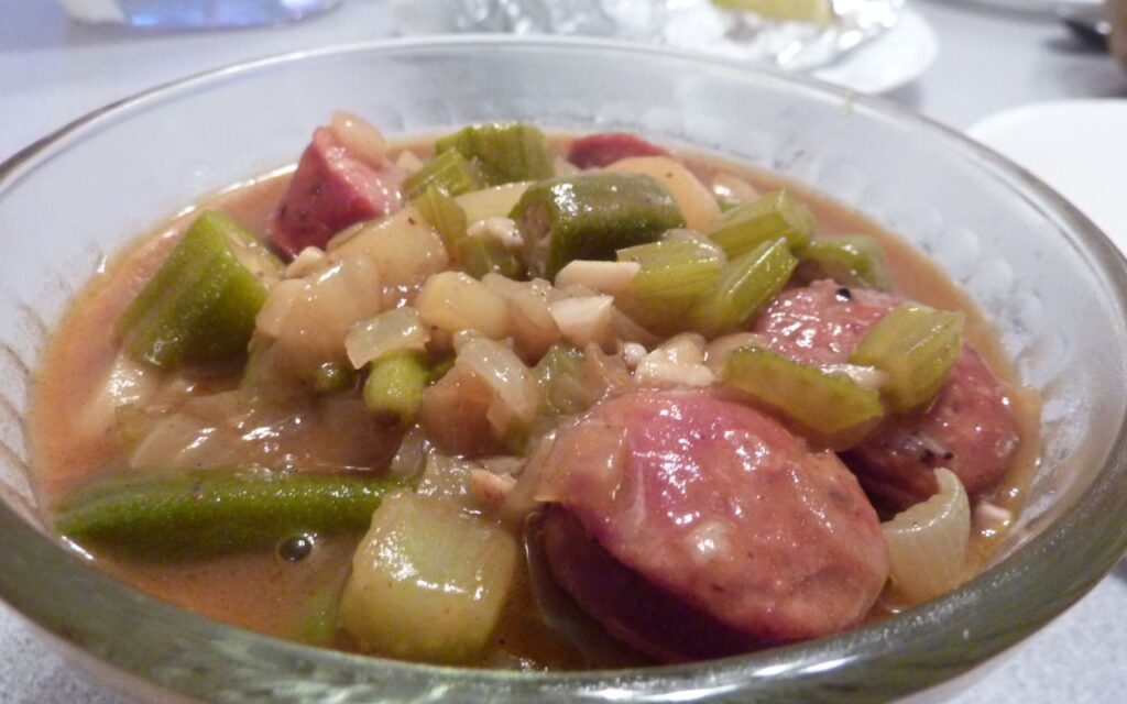 Okra, a crop brought from Africa, found a new home in Louisiana, where Black cooks combined it with local seafood and spices to create gumbo. Its thickening qualities gave the dish its signature texture, while the blending of African, Native American, and European ingredients reflected cultural exchange. Gumbo became a defining dish of Creole cuisine and a symbol of community gatherings. The recipe evolved across generations but still honors the ingenuity and adaptability of African culinary traditions that crossed oceans and took root in America.