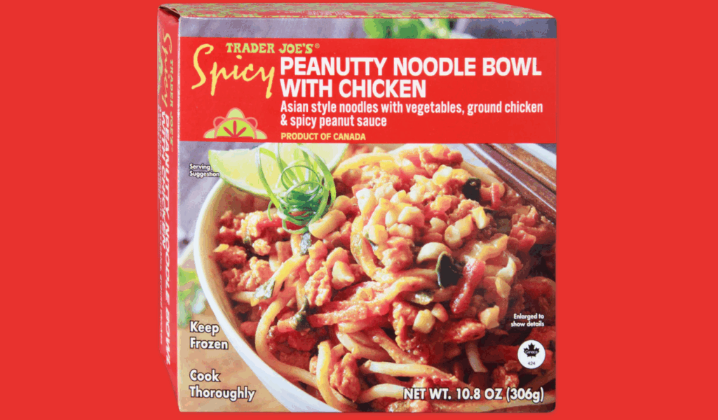 This one has a spicy kick and a sauce that tastes like peanuts. It has noodles, ground chicken, and peanuts. The sauce has depth because it has nutty, salty, and sweet elements that work together. The chicken also merges in with the noodles instead of feeling like a frozen piece, and the noodles stay firm (not mushy). A lot of people remark this one seems like a bowl you might order or put together fresh.