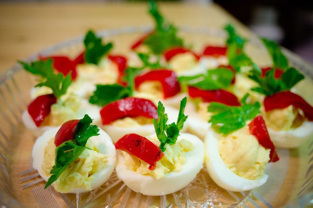 Deviled eggs are back on appetizer platters with bolder, fresher flavors. The yolk filling is smoothed with mayonnaise, mustard, and a touch of vinegar for tang, then customized with herbs, hot sauce, or pickled vegetables. Some cooks use smoked paprika, crispy bacon, or salmon flakes for garnish. Served chilled and neatly piped, deviled eggs remain a crowd-pleaser that bridges tradition and creativity, proving that even simple finger foods deserve care and presentation.