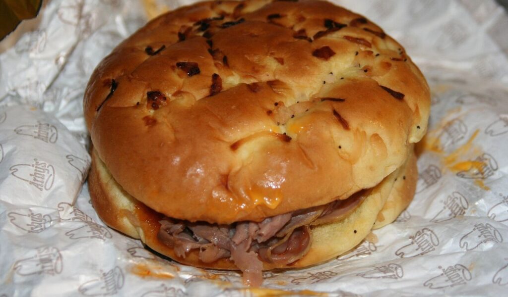 Arby’s Classic Beef ‘n Cheddar is a signature favorite that highlights simple ingredients with bold, comforting flavors. It starts with thinly sliced, tender roast beef stacked high, then topped with a smooth and melty cheddar cheese sauce that adds creamy richness. A drizzle of Arby’s tangy signature sauce balances the savory beef with a touch of zest. All of this is served on a warm, soft onion bun that adds a subtle sweetness and texture, creating a satisfying bite. This iconic sandwich remains a longtime staple on Arby’s menu for its irresistible flavor pairing.