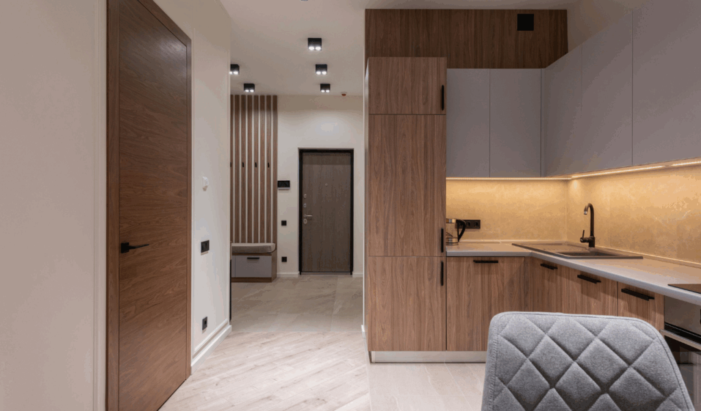 Install a fold-down or drop-leaf extension that you can raise only when necessary if the permanent countertop size is limited. It provides additional workspace or storage space when open, and it leaves wall clearance when folded. Hooks or shallow shelves can be installed beneath that surface. This hack gives you an extra real work area without adding bulk over time by striking a balance between functionality and compactness.