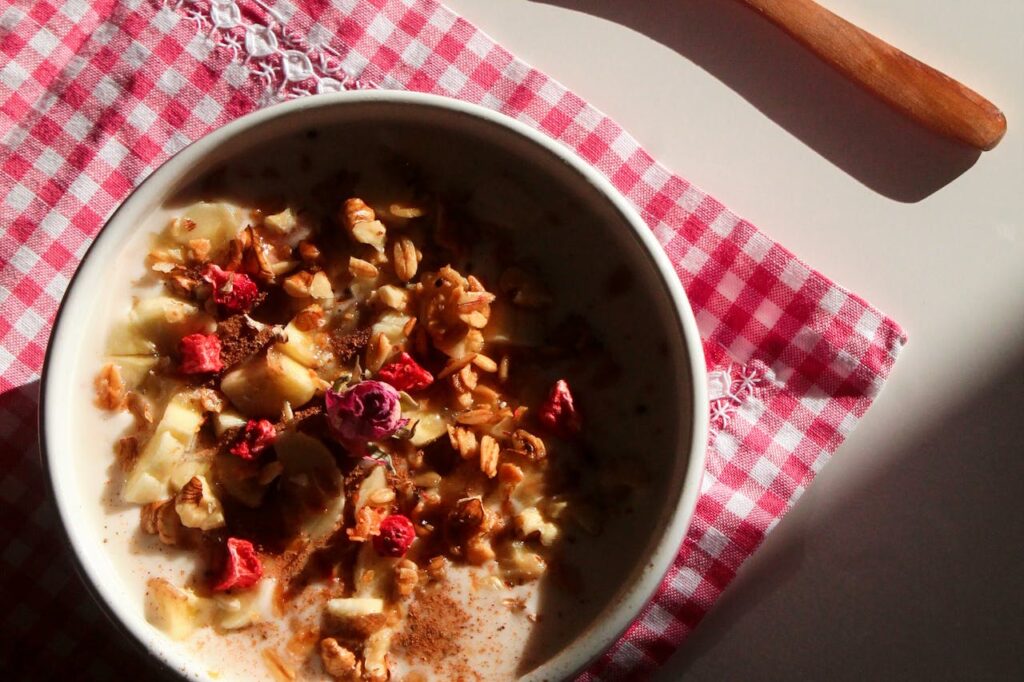 Create a quick, layered parfait with yogurt, honey, and granola. Creamy yogurt forms the base while honey adds natural sweetness and granola brings crunch. Alternate layers in a glass for an attractive presentation that feels like a treat. It is perfect for breakfast, dessert, or a snack that feels indulgent but stays wholesome. You can switch flavors with fruit yogurt or flavored honey, yet the core trio always works. Balanced, nourishing, and beautifully simple, it is comfortable in a cup.