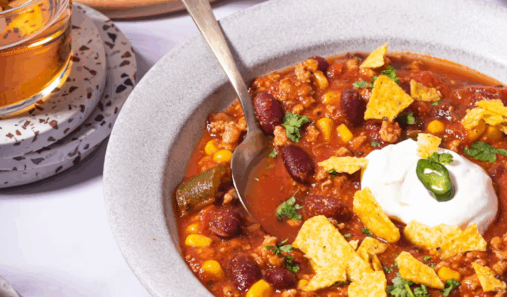 This spicy soup with a Mexican flair is quick, substantial, and flavorful. Add the broth, canned diced tomatoes, corn, black beans, and cooked shredded chicken first. Add garlic, chili powder, and cumin for seasoning. Add the avocado, lime, and tortilla strips after a quick simmer. Every bite of this one-pot wonder adds brightness and spice. For even faster preparation, use rotisserie chicken, and don’t omit the lime, it makes the entire dish pop.