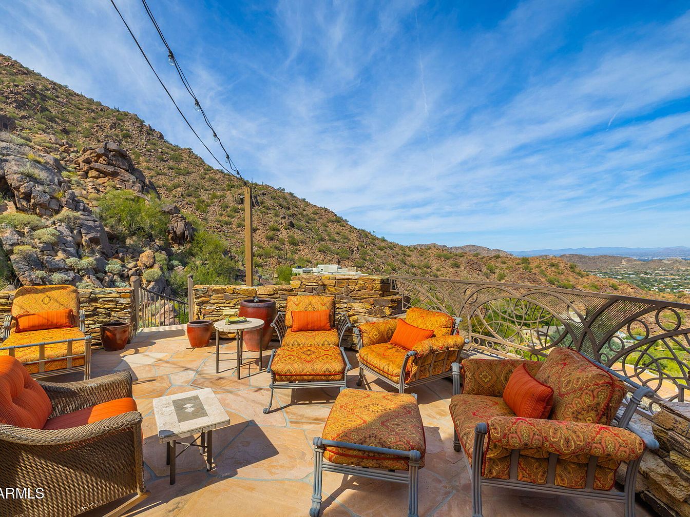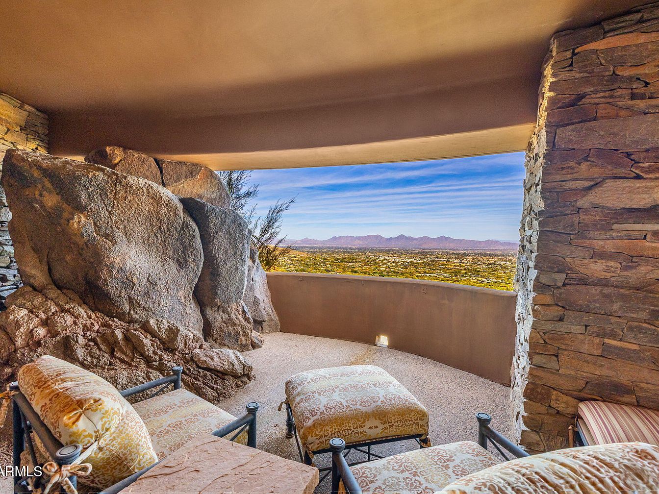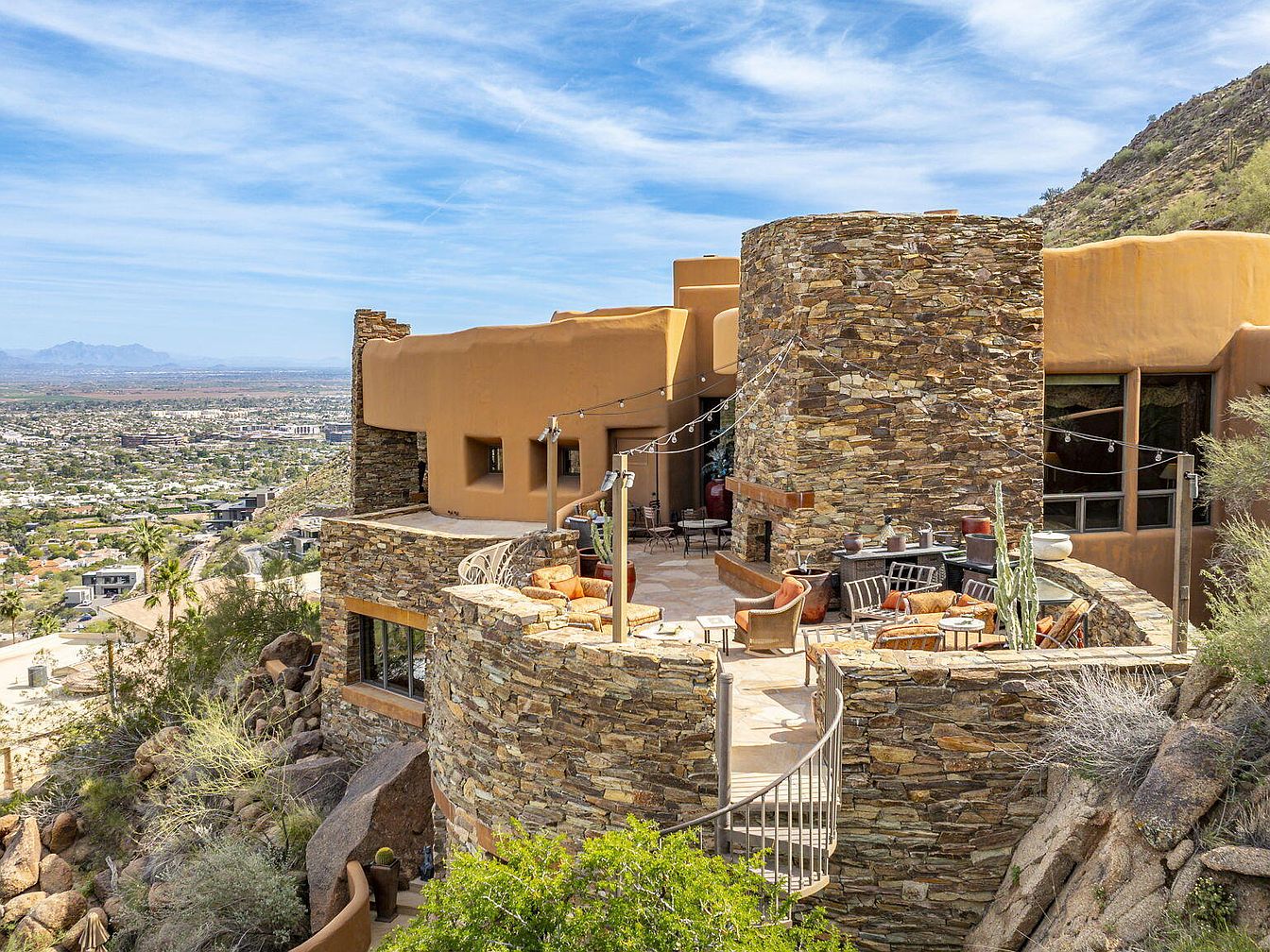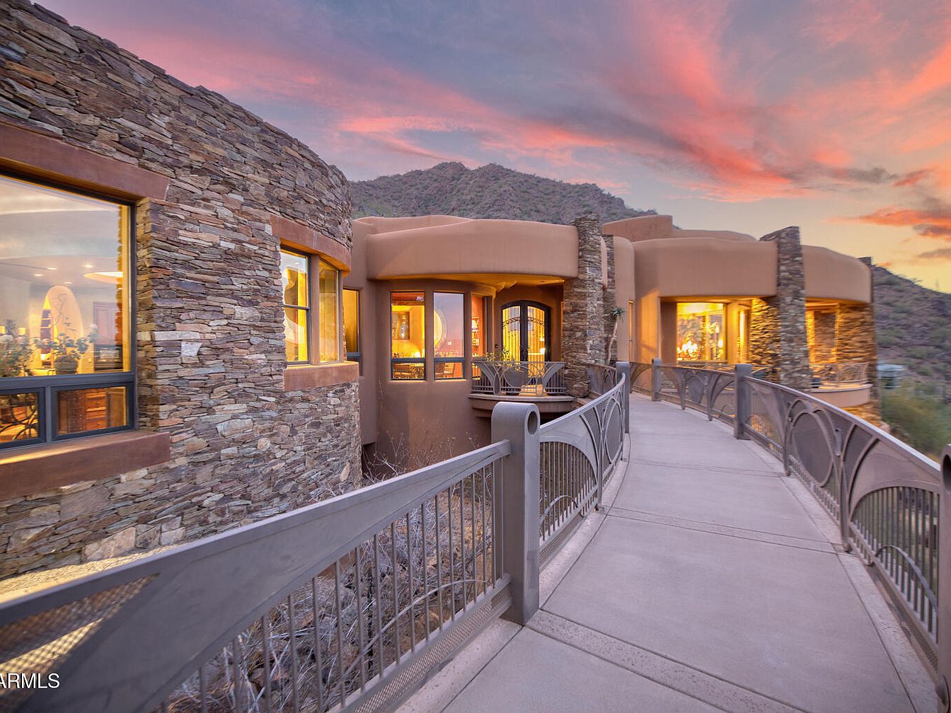 Nestled on the zenith of Camelback Mountain in Paradise Valley, AZ, this extraordinary century home, designed by noted architect Ken Hutchinson, showcases a unique blend of artistry and functionality. Built on a generous 4-acre plot, it features flowing walls, an expansive 40-ft radius glass wall offering panoramic views, and distinctive boulder outcroppings integrated into its structure. Recently listed for $12,500,000, the home encompasses luxurious amenities, including a 52-ft cantilevered mosaic-tiled pool and spa, and a split primary suite with dual baths. With only its second offering, this architectural gem is a testament to upscale mountain living, capturing breathtaking vistas of the McDowell and Four Peaks Mountains.
