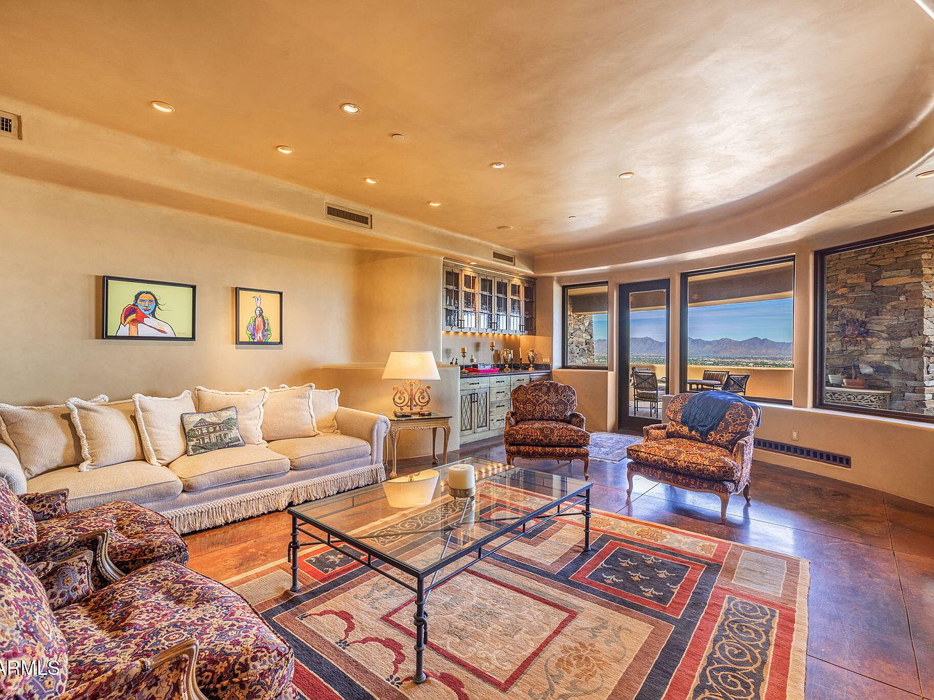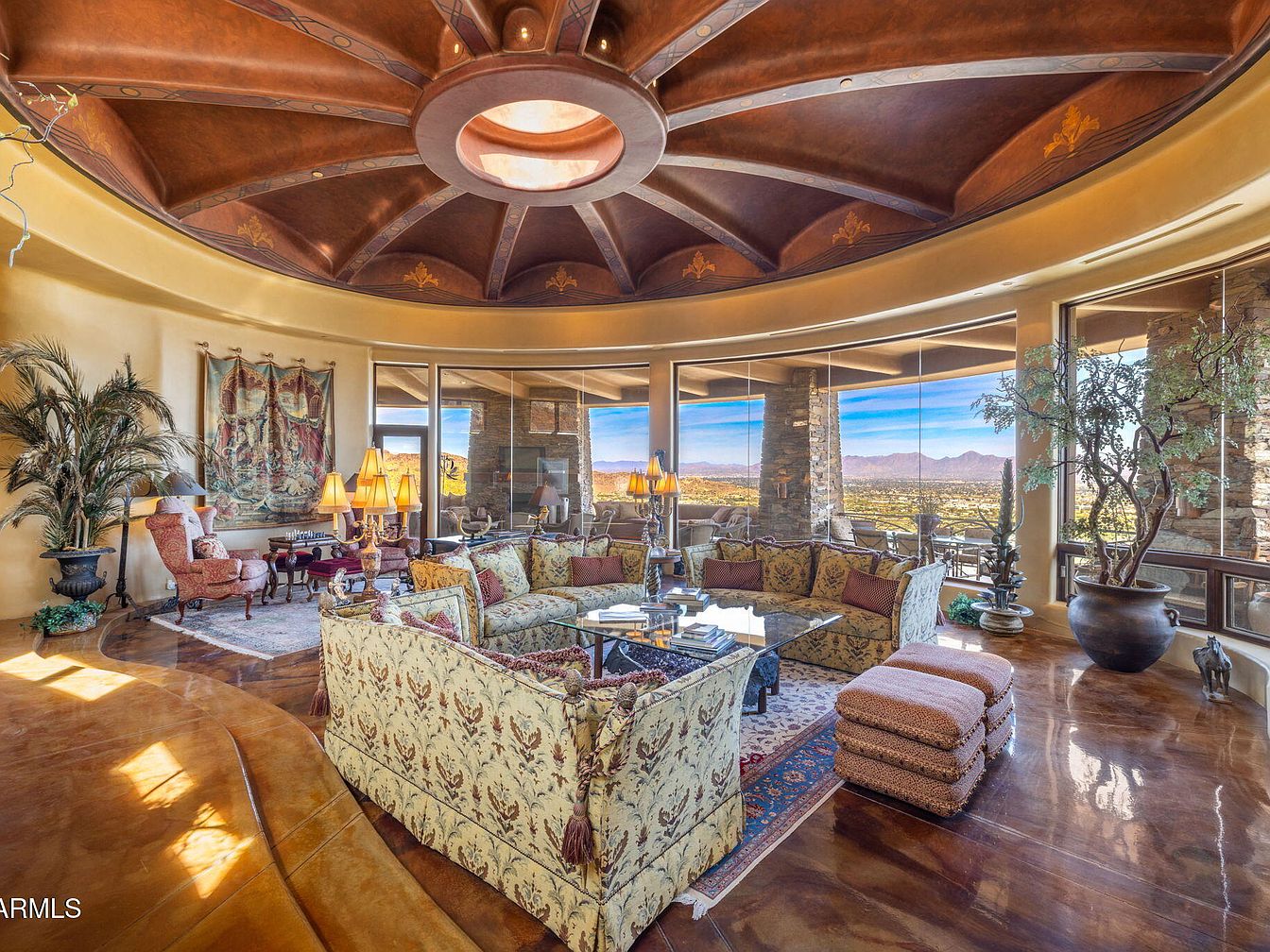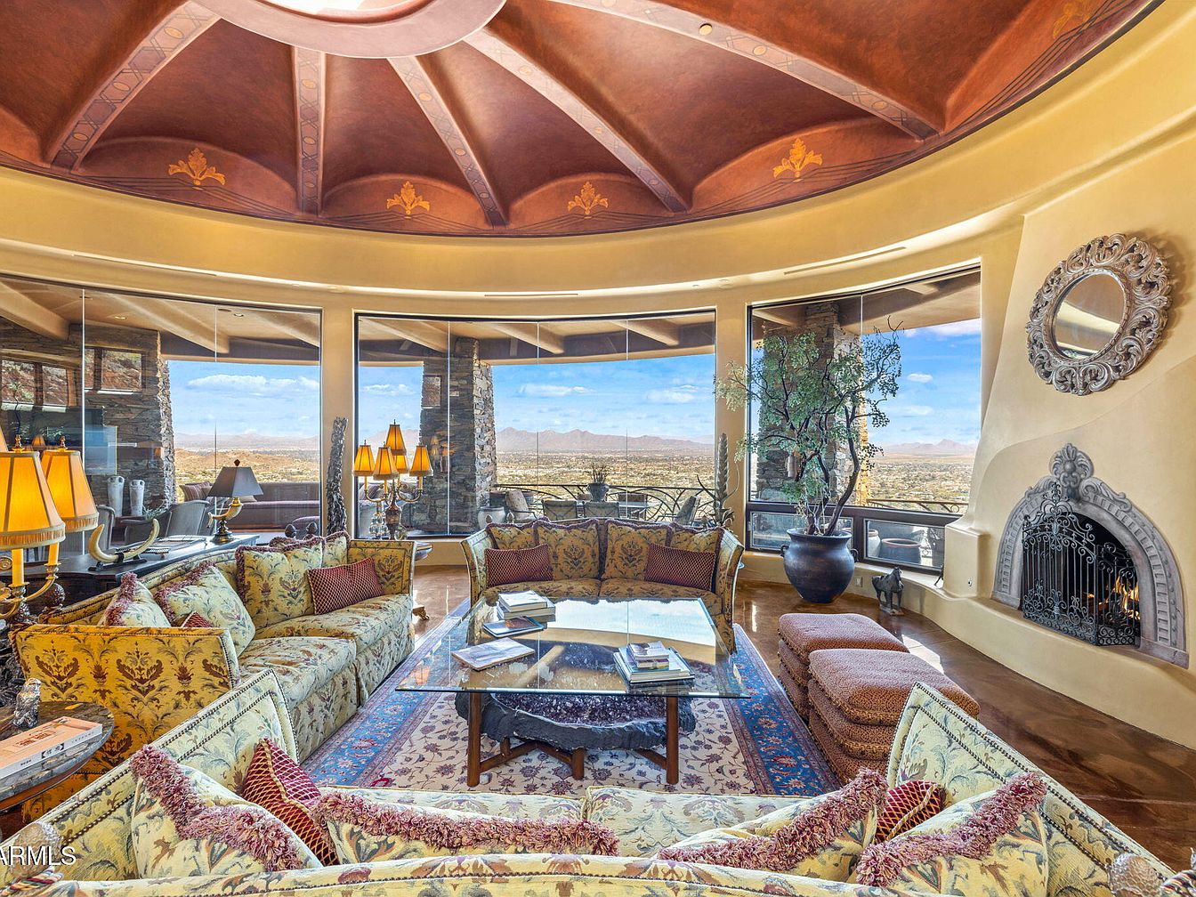 Nestled on the zenith of Camelback Mountain in Paradise Valley, AZ, this extraordinary century home, designed by noted architect Ken Hutchinson, showcases a unique blend of artistry and functionality. Built on a generous 4-acre plot, it features flowing walls, an expansive 40-ft radius glass wall offering panoramic views, and distinctive boulder outcroppings integrated into its structure. Recently listed for $12,500,000, the home encompasses luxurious amenities, including a 52-ft cantilevered mosaic-tiled pool and spa, and a split primary suite with dual baths. With only its second offering, this architectural gem is a testament to upscale mountain living, capturing breathtaking vistas of the McDowell and Four Peaks Mountains.