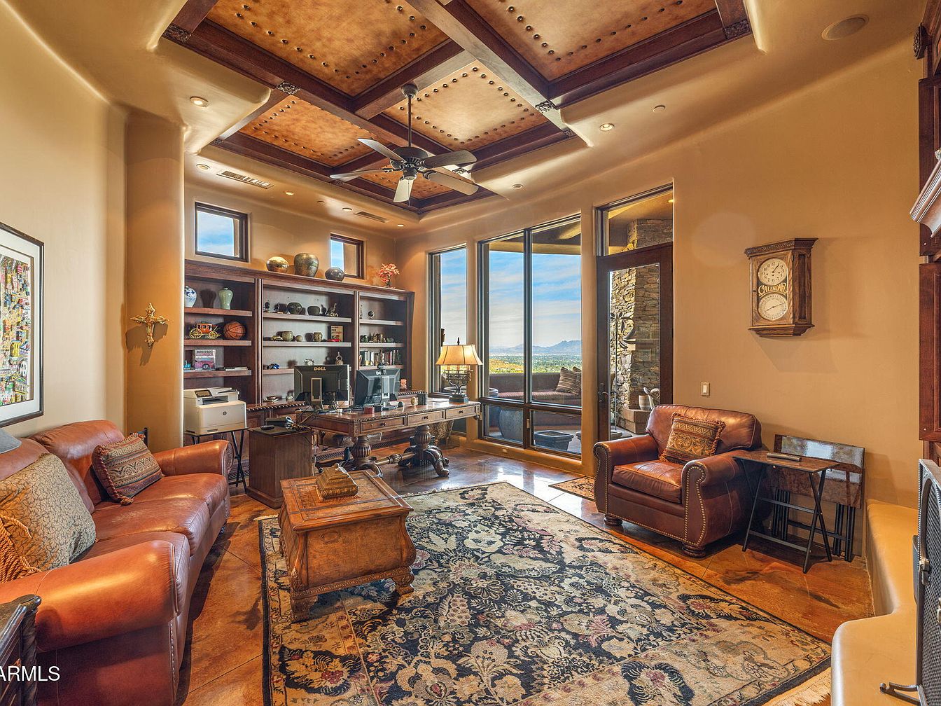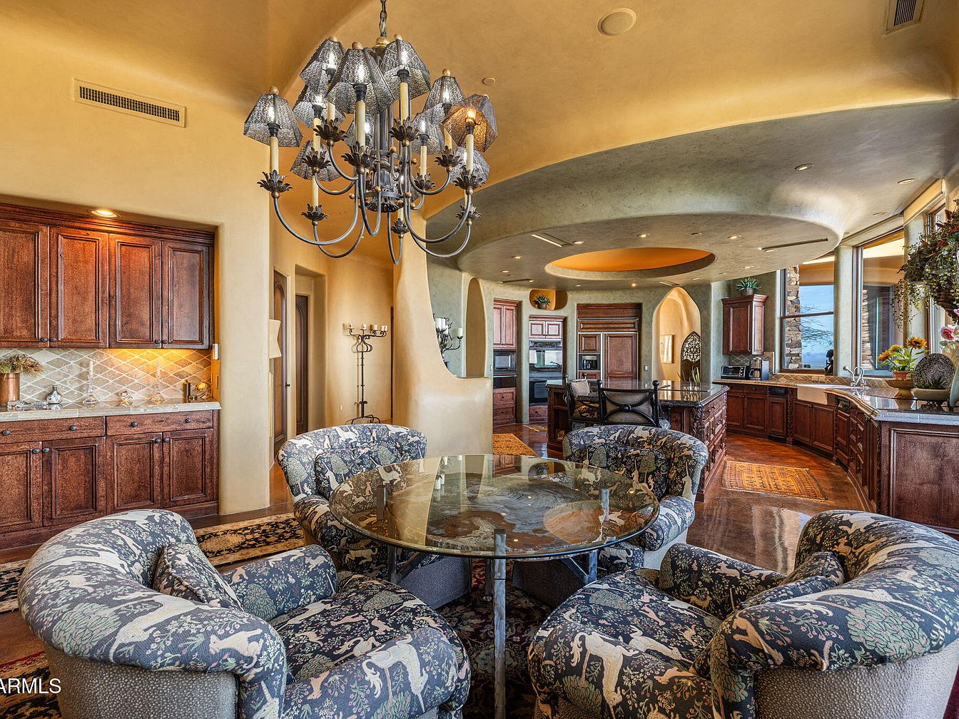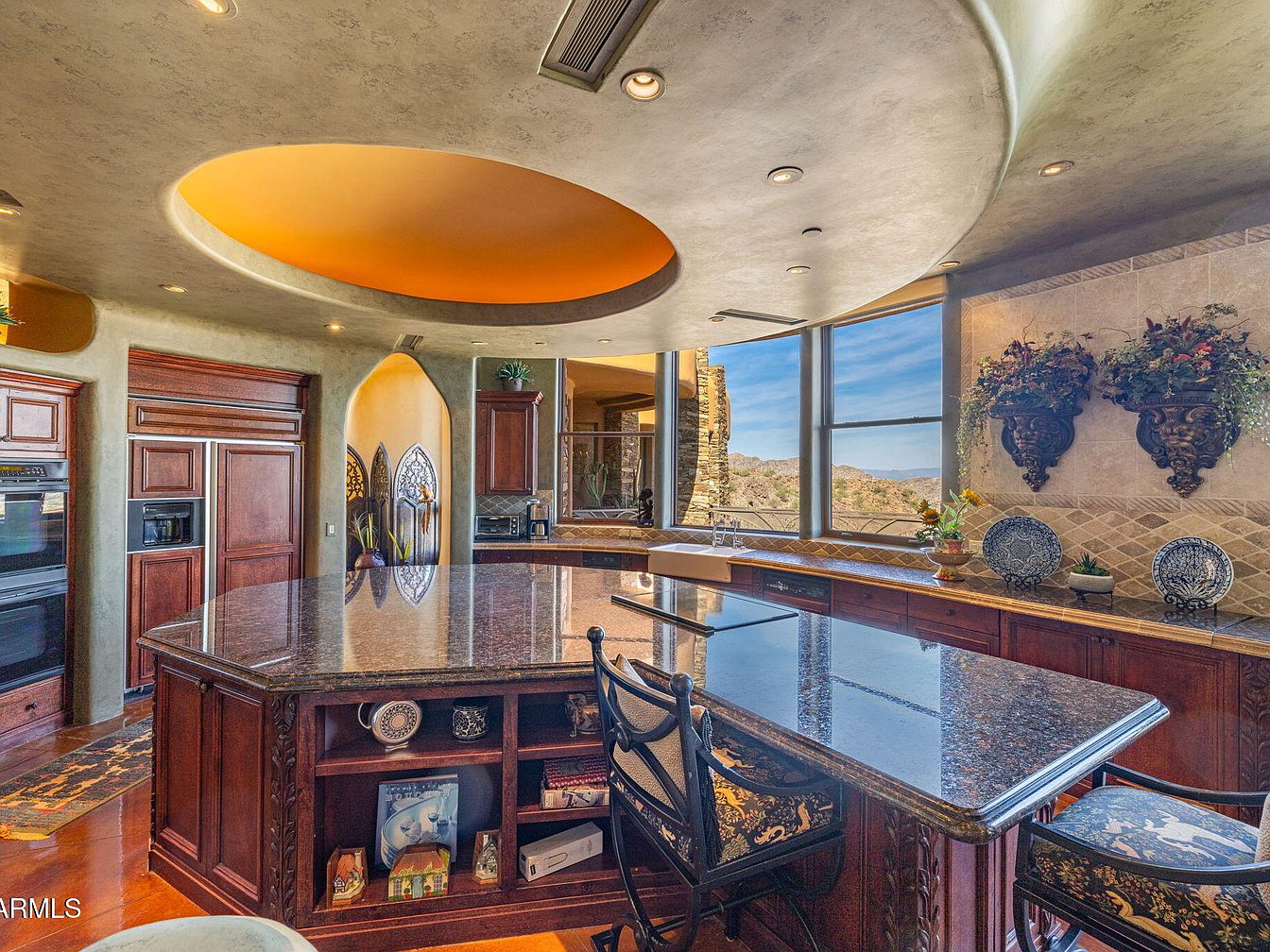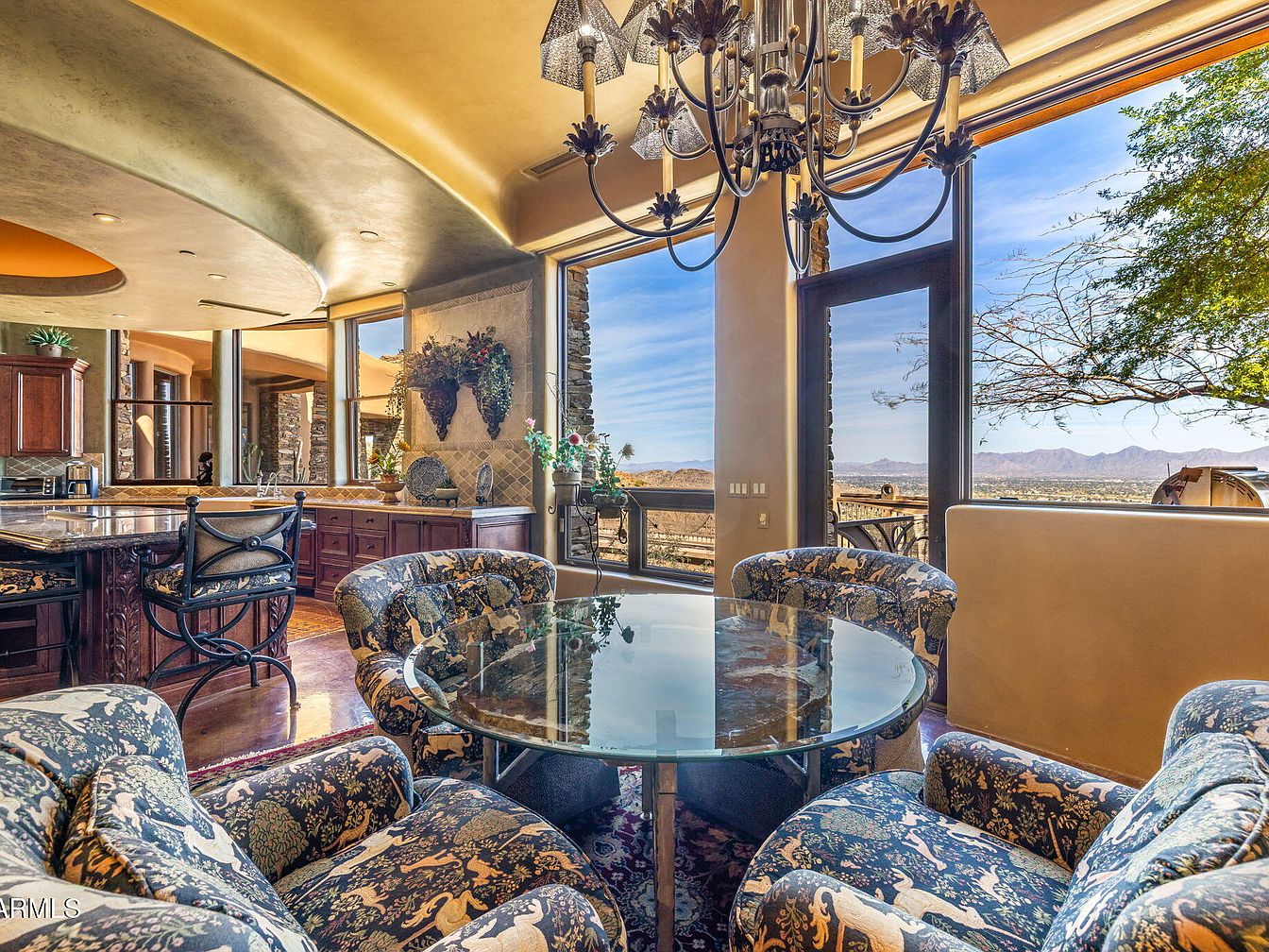 Nestled on the zenith of Camelback Mountain in Paradise Valley, AZ, this extraordinary century home, designed by noted architect Ken Hutchinson, showcases a unique blend of artistry and functionality. Built on a generous 4-acre plot, it features flowing walls, an expansive 40-ft radius glass wall offering panoramic views, and distinctive boulder outcroppings integrated into its structure. Recently listed for $12,500,000, the home encompasses luxurious amenities, including a 52-ft cantilevered mosaic-tiled pool and spa, and a split primary suite with dual baths. With only its second offering, this architectural gem is a testament to upscale mountain living, capturing breathtaking vistas of the McDowell and Four Peaks Mountains.