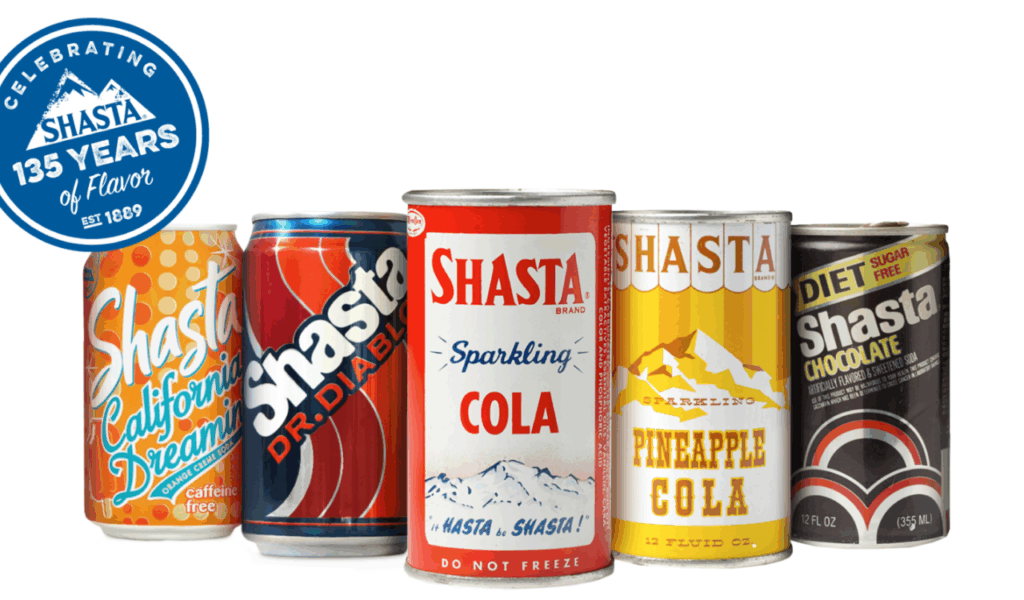 Around 1889, Shasta was founded in California. It established a reputation as a widely available, reasonably priced soda brand with a wide variety of flavors (cola, fruit sodas, and flavored lines) for the majority of the 20th century. Shasta sodas are still accessible in many areas, specialty shops, and through nostalgic soda distributors, despite having undergone multiple ownership changes and somewhat retreating from mass shelf dominance.