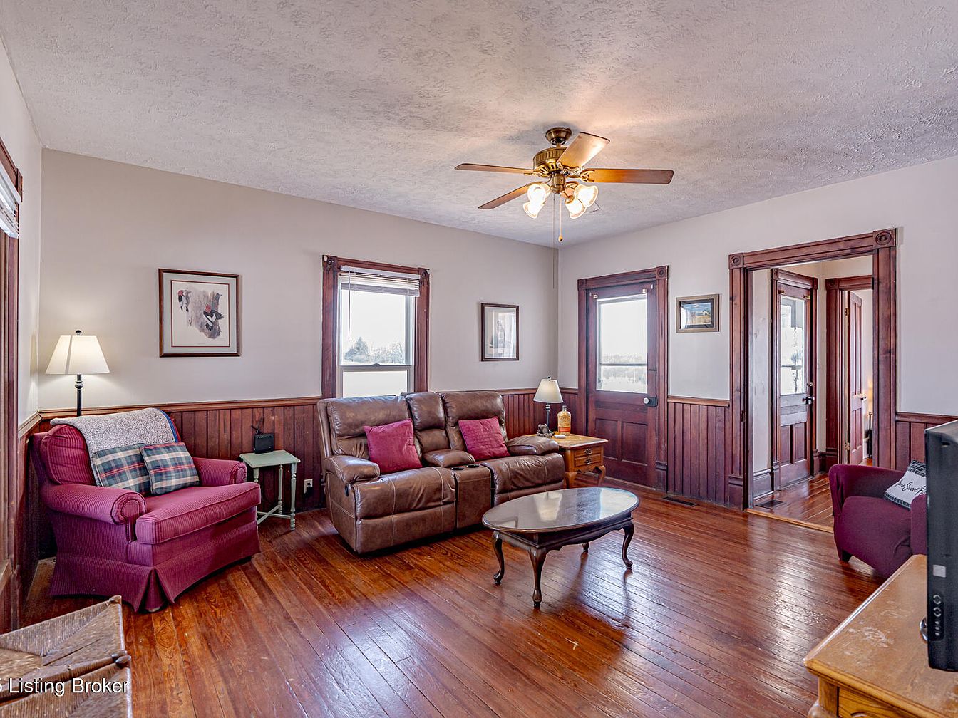 This charming century home, located in Finchville, Kentucky, boasts rich historical significance as a classic example of rural American farmhouse architecture, likely from the late 19th or early 20th century. Set on nearly 156 acres of rolling farmland with two large ponds and over 2,300 feet of frontage on Plum Creek, the home offers four bedrooms, 1.5 baths, and retains almost all original hardwood flooring. Its inviting covered porch provides sweeping pastoral views, perfect for enjoying the tranquility of country living. Recently utilized as a short-term rental, the property includes a modern equipment barn built in 2018 and three platted five-acre tracts. Listed at $5,439,000, this unique estate blends historical charm with limitless opportunities.