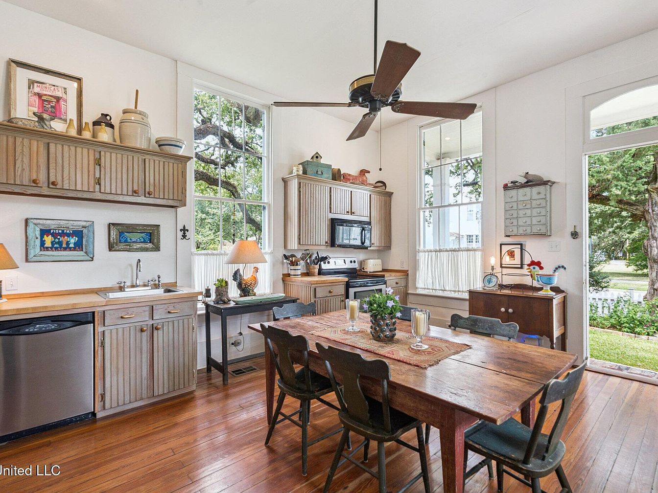Nestled in Bay St. Louis, MS, the exquisite cottage at 200 Carroll Avenue, built between 1895 and 1900, showcases remarkable vernacular L-galleried architecture with a distinctive gable-on-hip roof. Meticulously restored post-Hurricane Katrina, this two-story home retains its historic charm through original hardwood floors and other period elements while incorporating modern amenities. The property spans a generous plot, is listed at $1,450,000, and features a delightful outdoor space with an English herb garden, a rear guest cottage, and a custom boathouse. Located just a block from the waterfront and a short stroll to Old Town’s vibrant restaurants, it stands as a beacon of resilience, embodying refined Gulf Coast living and historical significance.