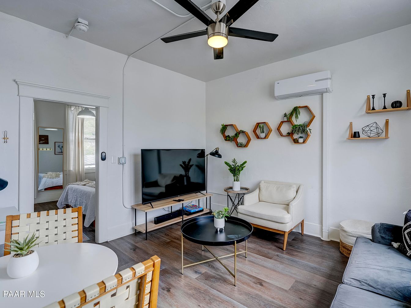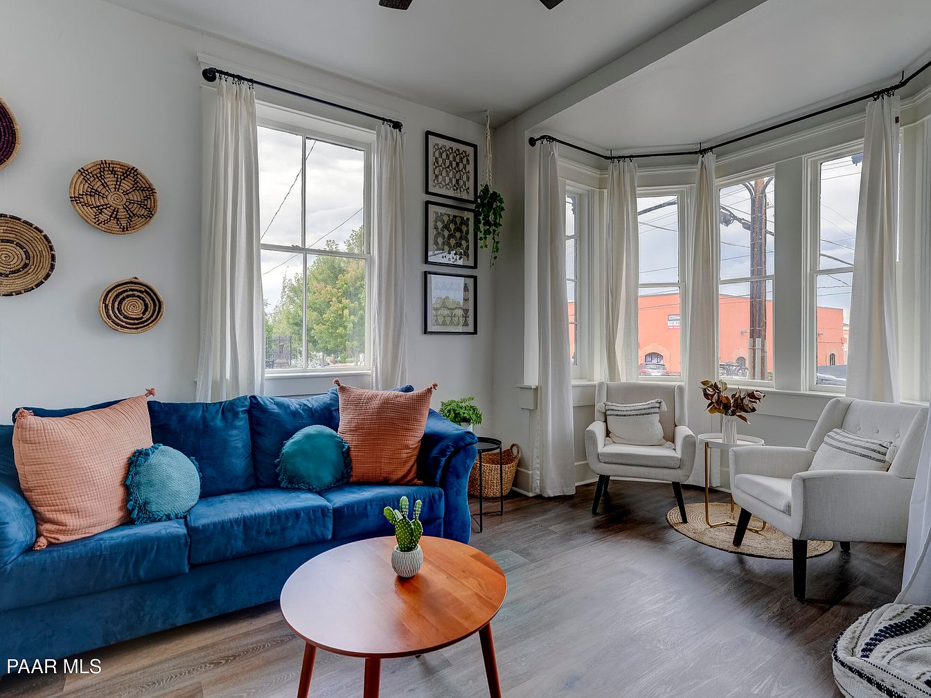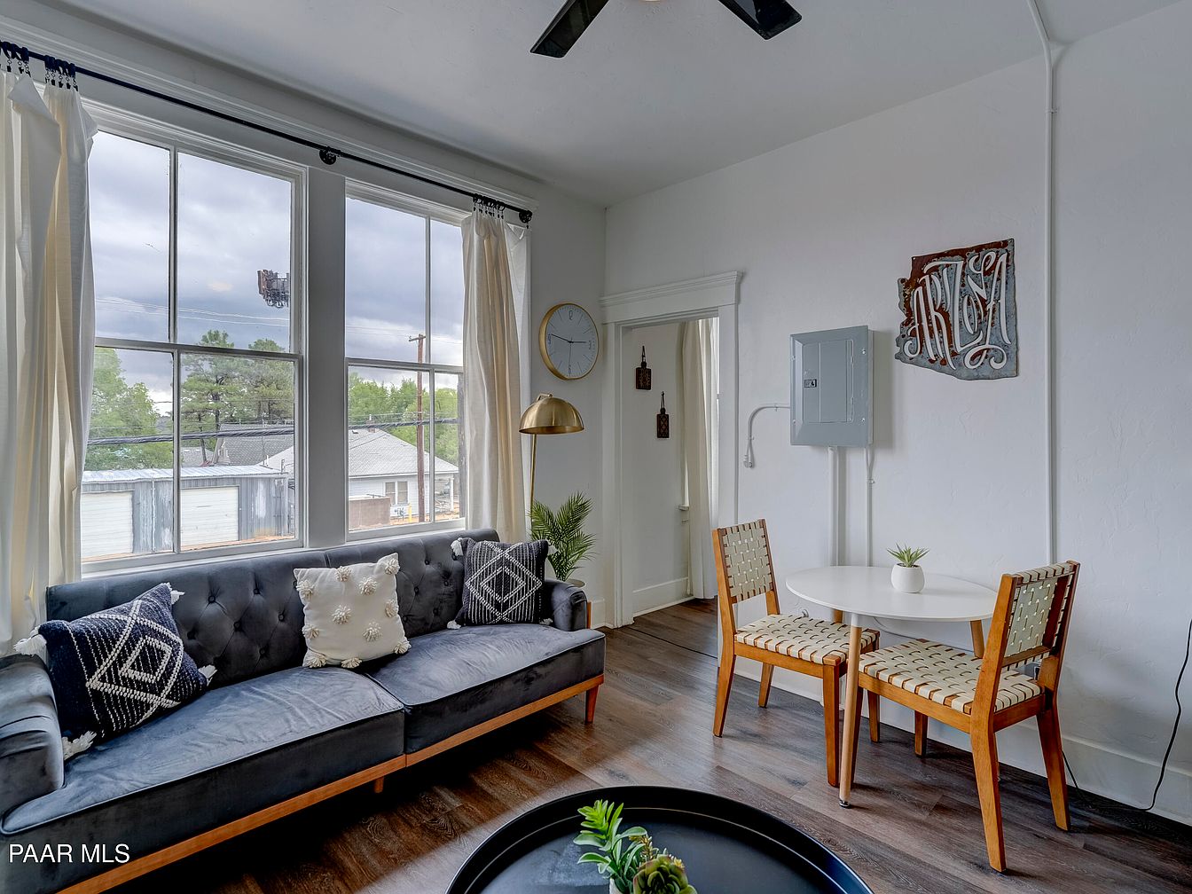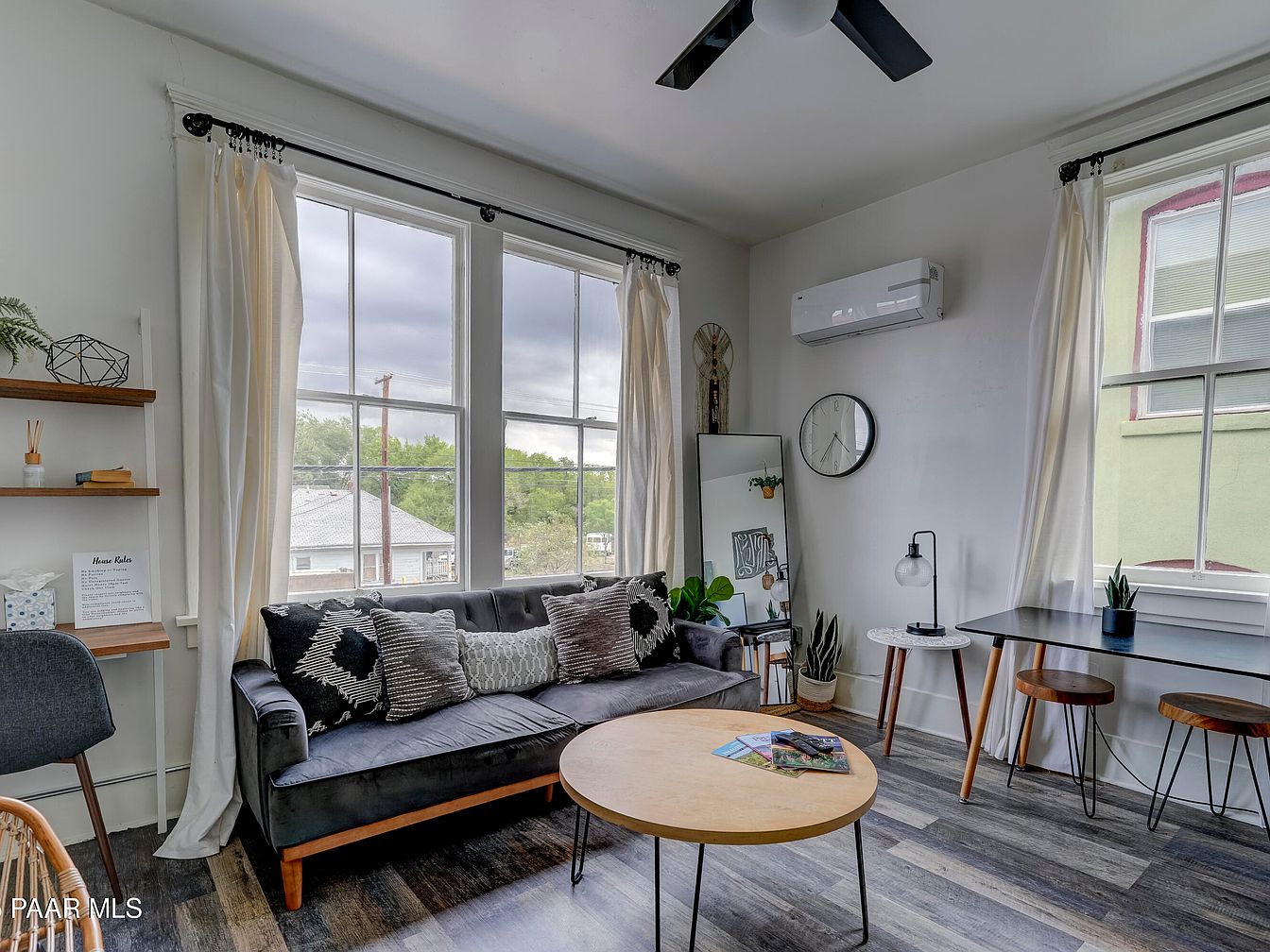 This remarkable century home, located in downtown Prescott, Arizona, offers significant historical charm and investment potential. Built during the late 19th or early 20th century, it features hallmark Victorian architectural elements, such as ornate window trim, bay windows, and decorative brickwork. The property, currently priced at $1,350,000, was extensively renovated in 2020, receiving all-new electrical, upgraded HVAC systems, central hot water, and a full interior update, making it turnkey-ready for both vacation rentals and long-term leases. The building houses 5 long-term units and 3 Airbnb-ready vacation units, all individually metered with on-site coin-operated laundry. With its proximity to Prescott’s Courthouse Square, this unique property blends historic character with modern conveniences for discerning buyers.