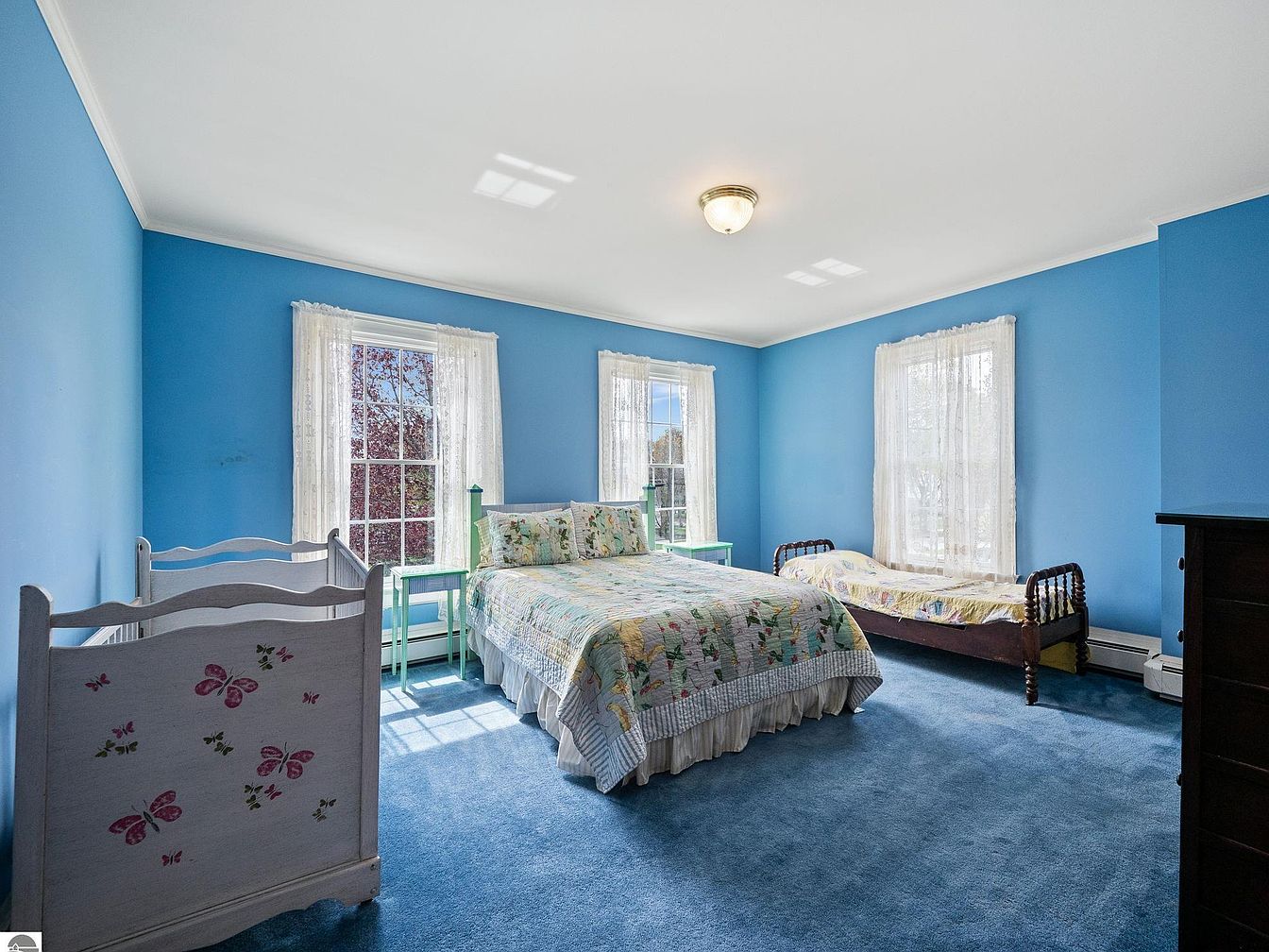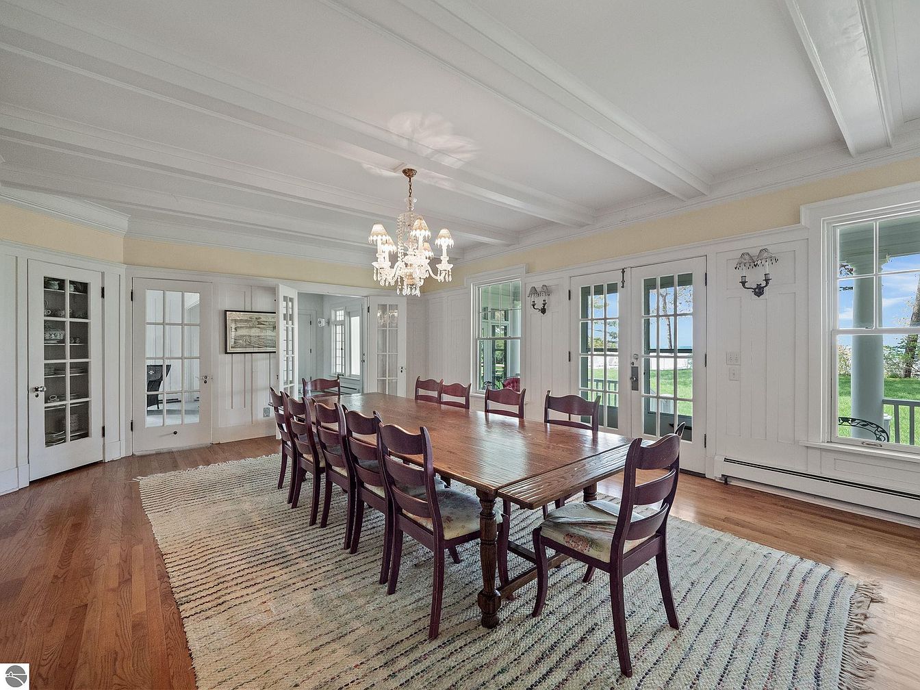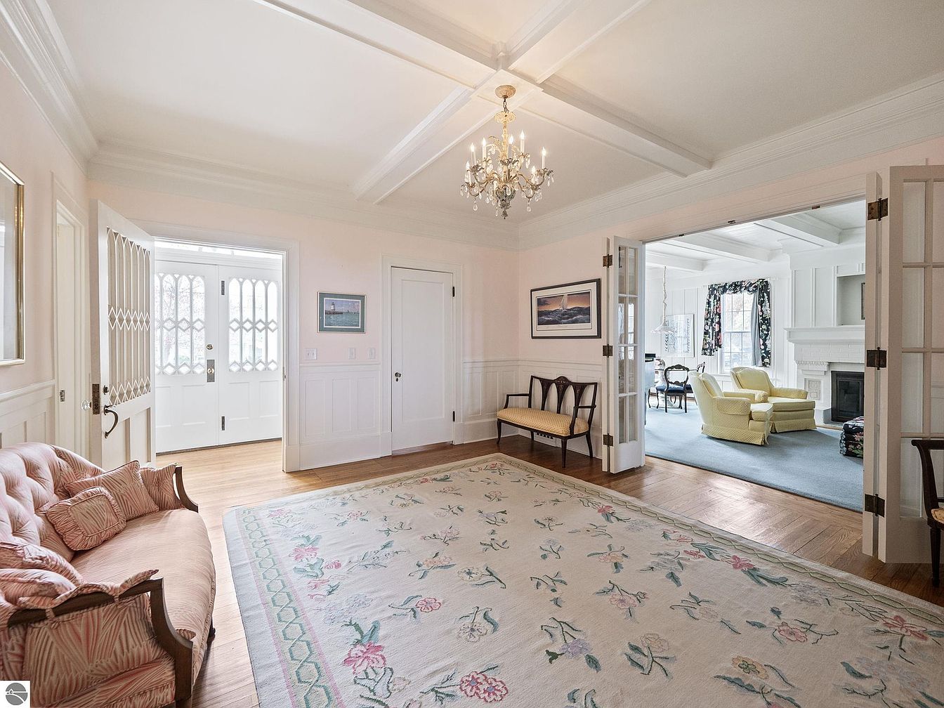 This iconic Greek Revival estate, built in 1912, is located in the heart of Charlevoix, MI, just steps from downtown and Lake Michigan’s shoreline. Spanning 7,676 sq ft with 10 bedrooms and 8 bathrooms, it boasts a unique architectural style characterized by stately Corinthian columns and intricate moldings. On nearly an acre of land, the property features stunning lake views, a sunroom, and expansive outdoor spaces perfect for entertaining. Recently listed at $3,450,000, this historic home has been lovingly maintained and renovated over nearly 40 years. Key amenities include a three-car garage and private beach access, making it a rare opportunity to own a piece of local heritage.