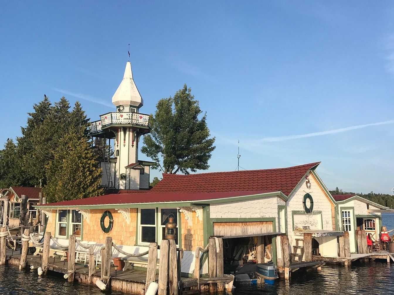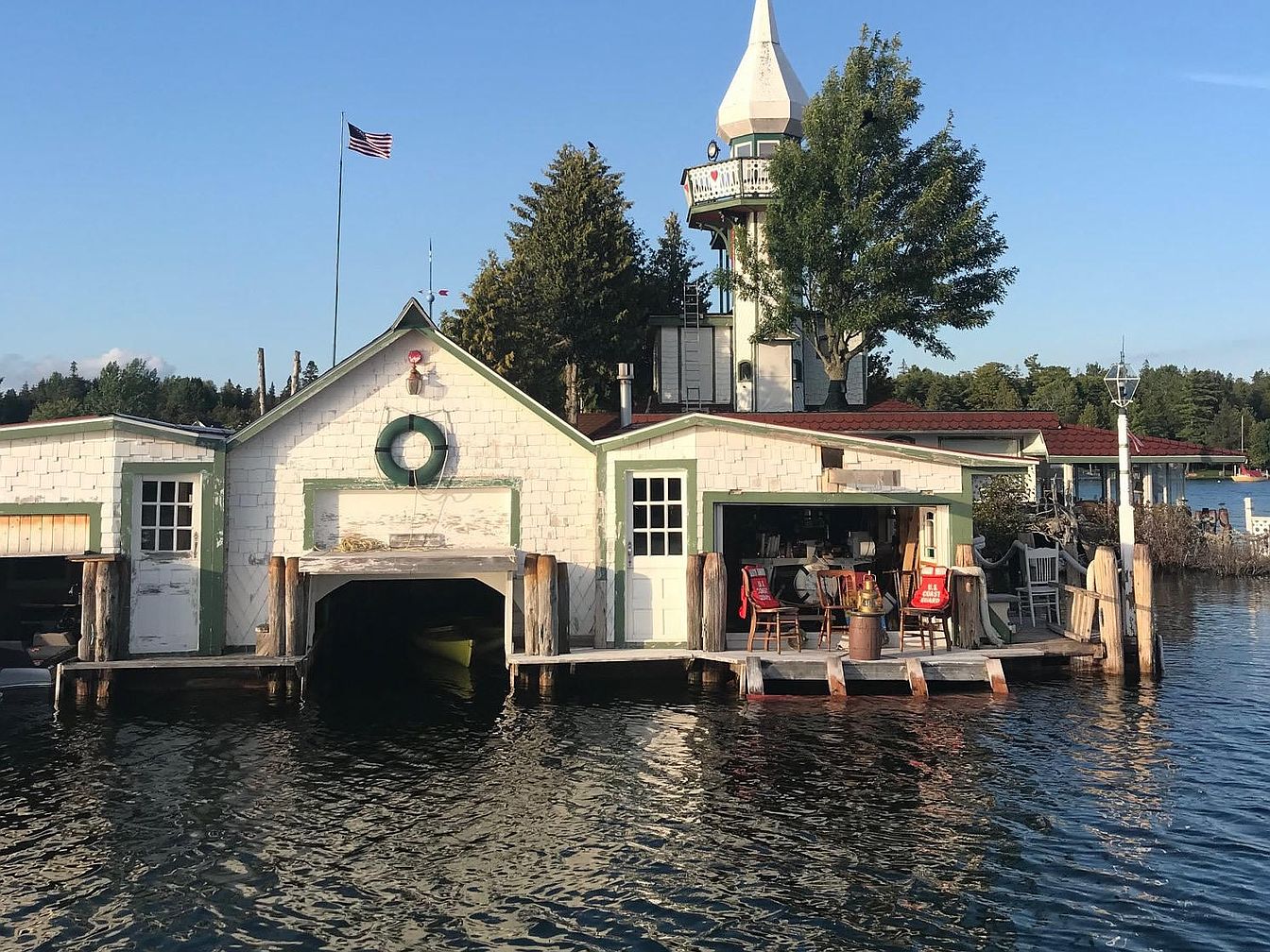 1913 Island Cottage in Cedarville, Michigan With a Turret, Solarium Sunporch, and 3-Stall Boathouse With Stained Glass