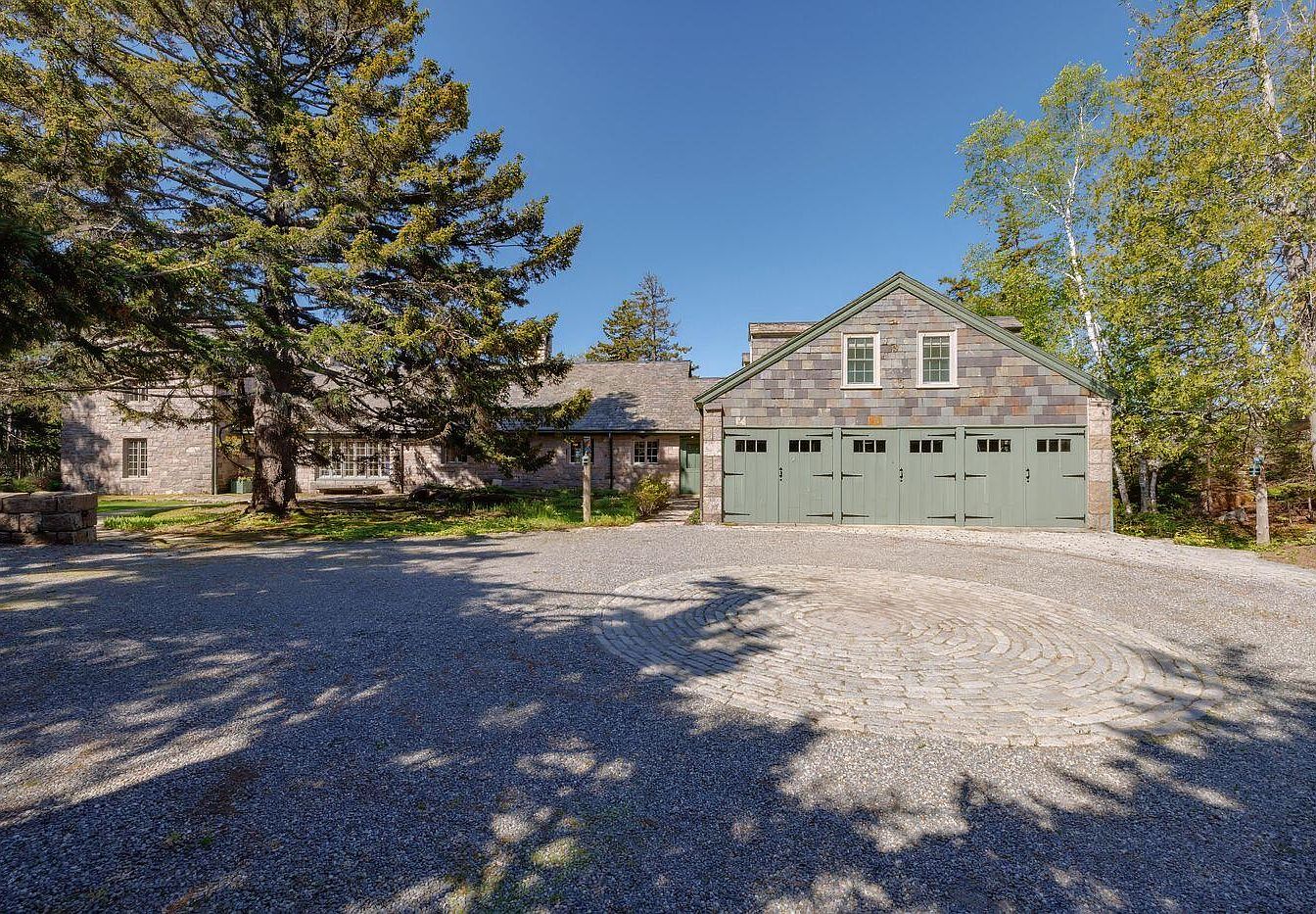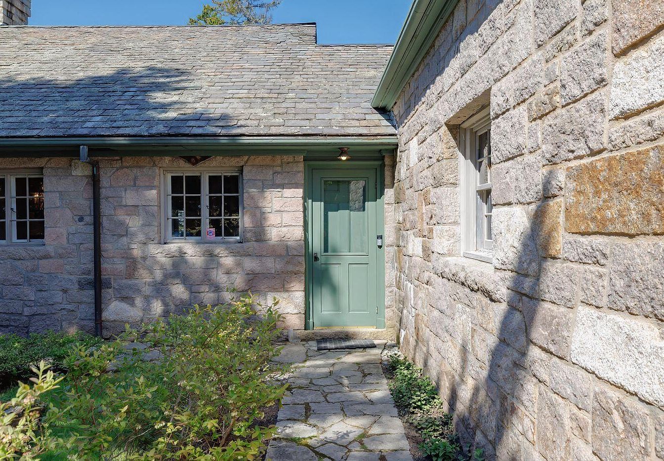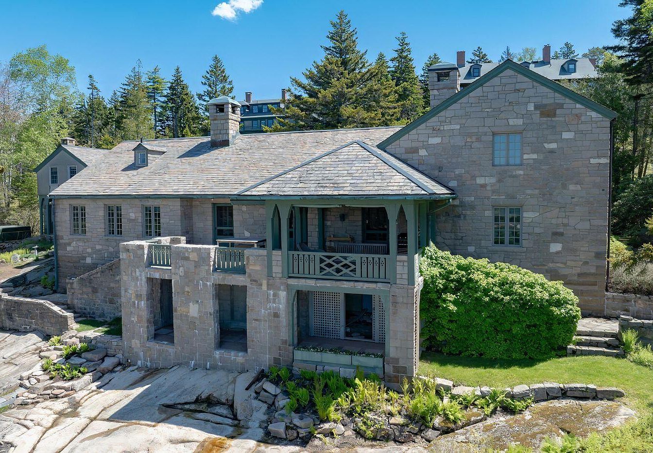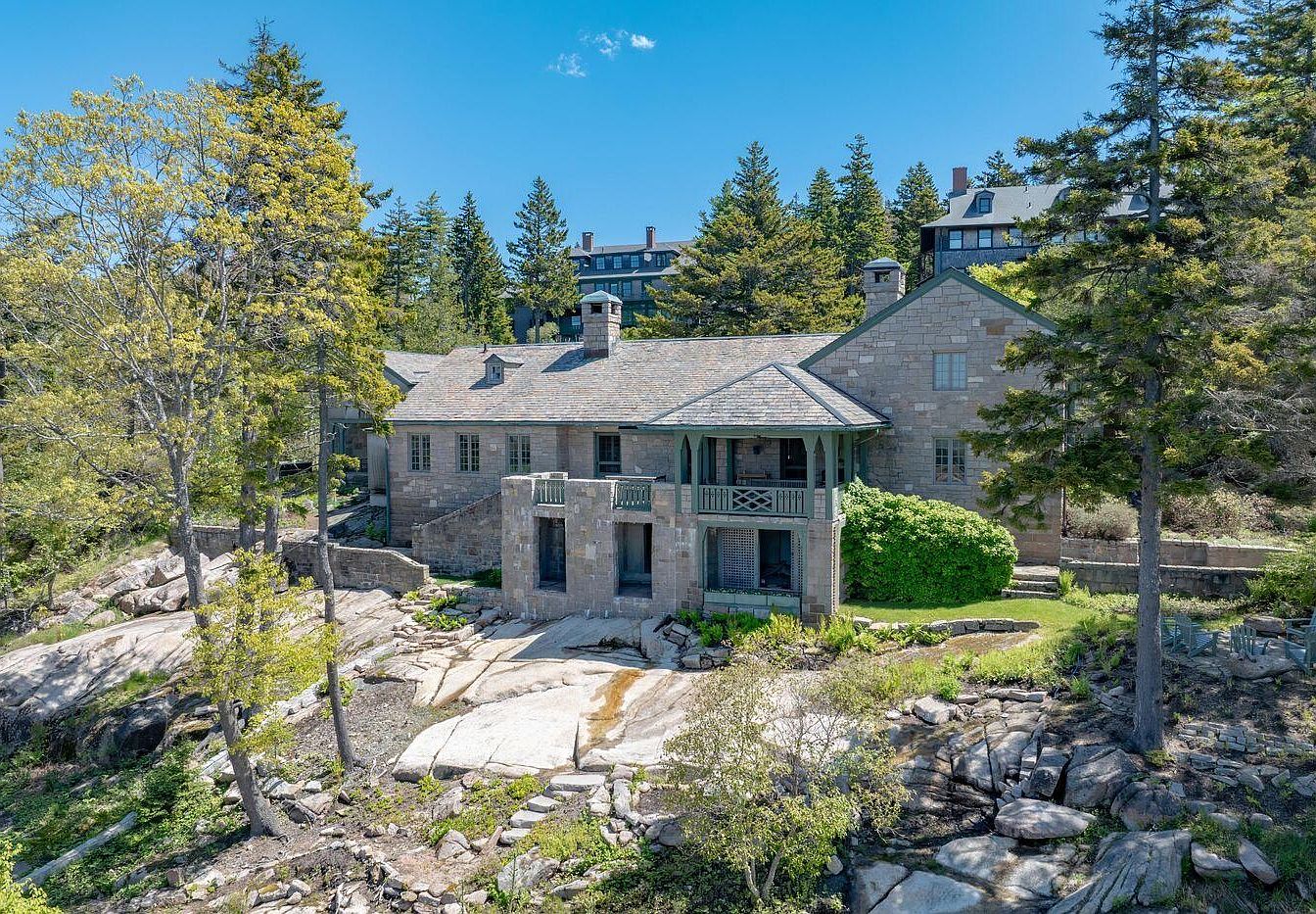 Cliffhanger, built entirely of pink granite in Mount Desert, Maine, embodies historical significance with its classic architecture and stunning views of Seal Harbor. This distinguished residence features a unique blend of Craftsman and Colonial styles, highlighted by a slate roof and a vaulted beamed ceiling in the expansive great room. Originally constructed in the late 19th century, this home has undergone recent renovations to provide modern amenities while preserving its charm. With seven bedrooms, including a large bunk room, and an outdoor hot tub overlooking the harbor, it caters to families and guests alike. Priced at $7,750,000, the property boasts a landscaped plot area and total square footage, making it an irresistible retreat.