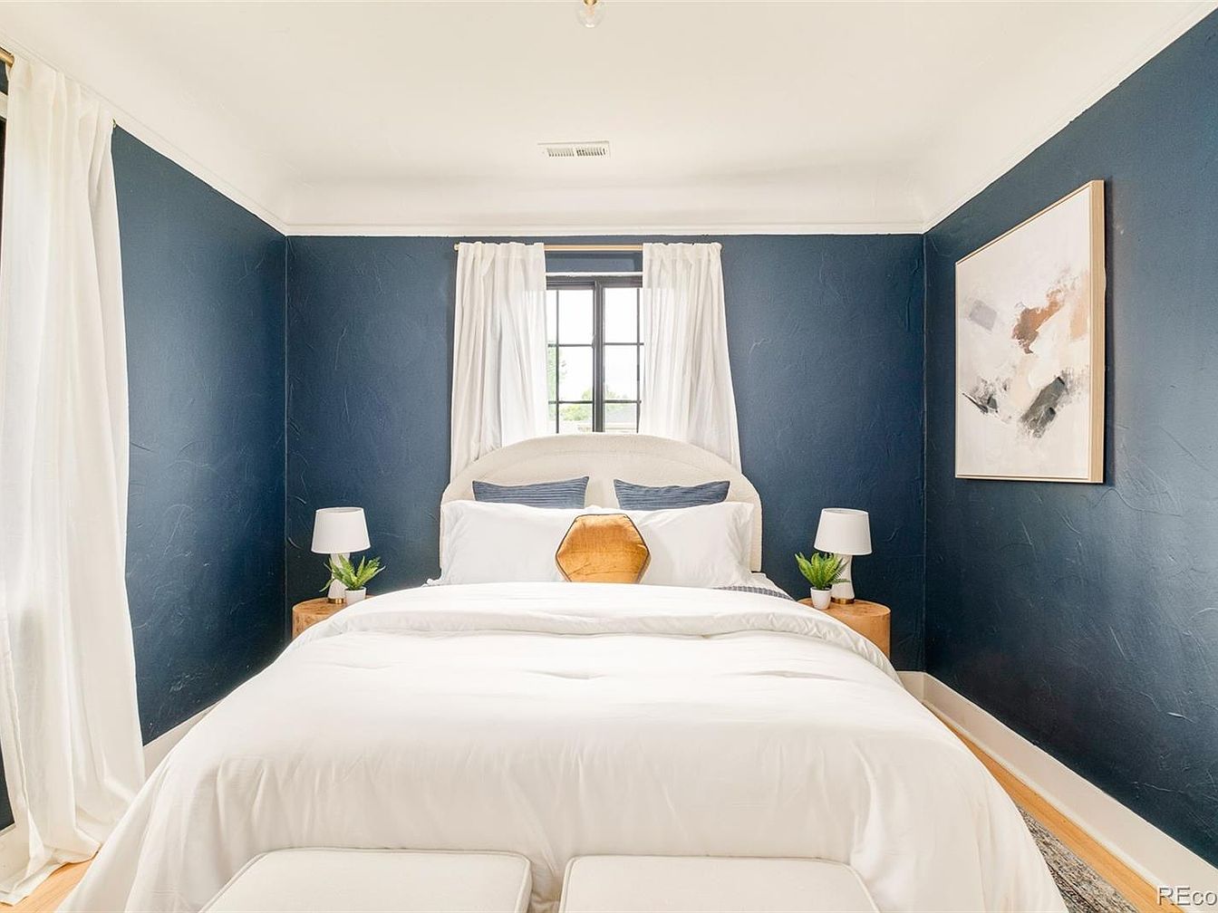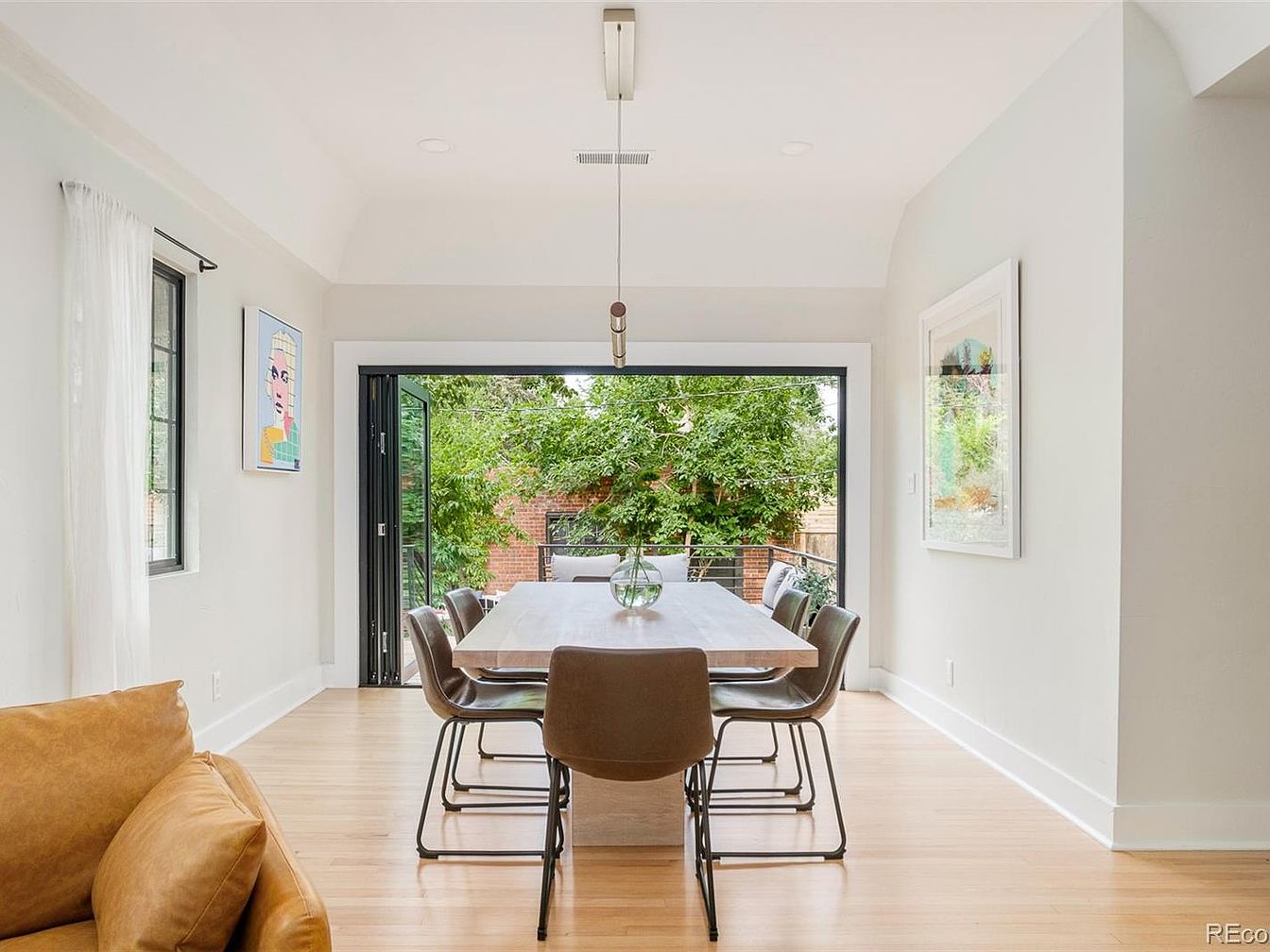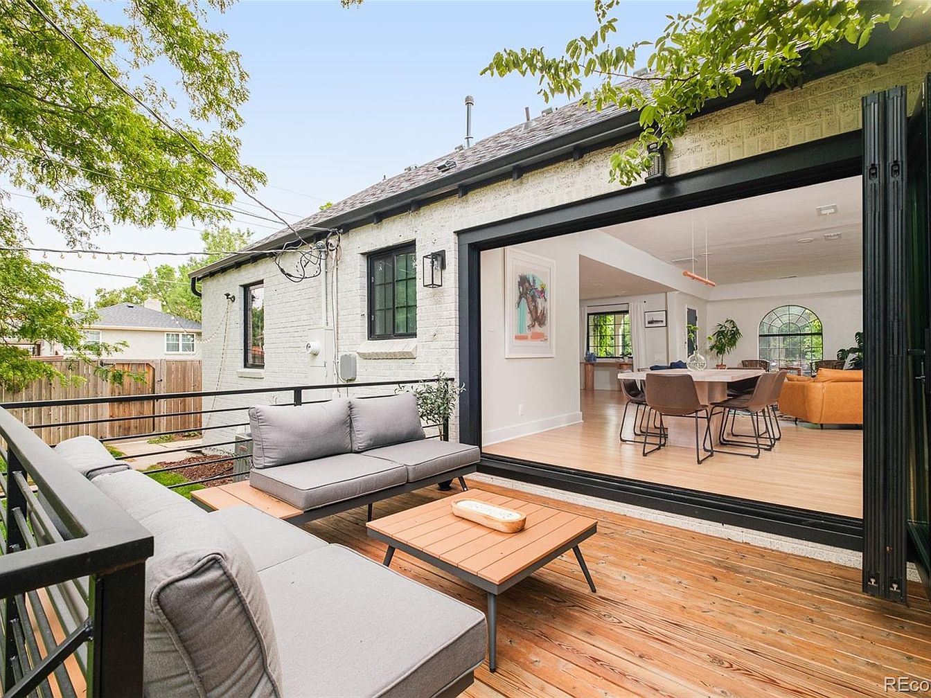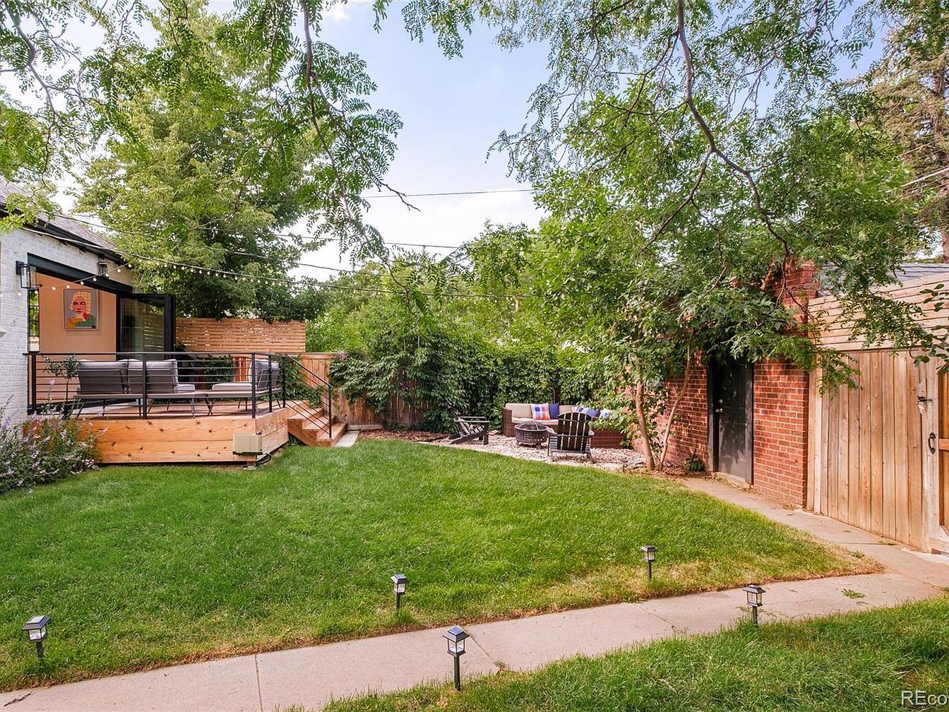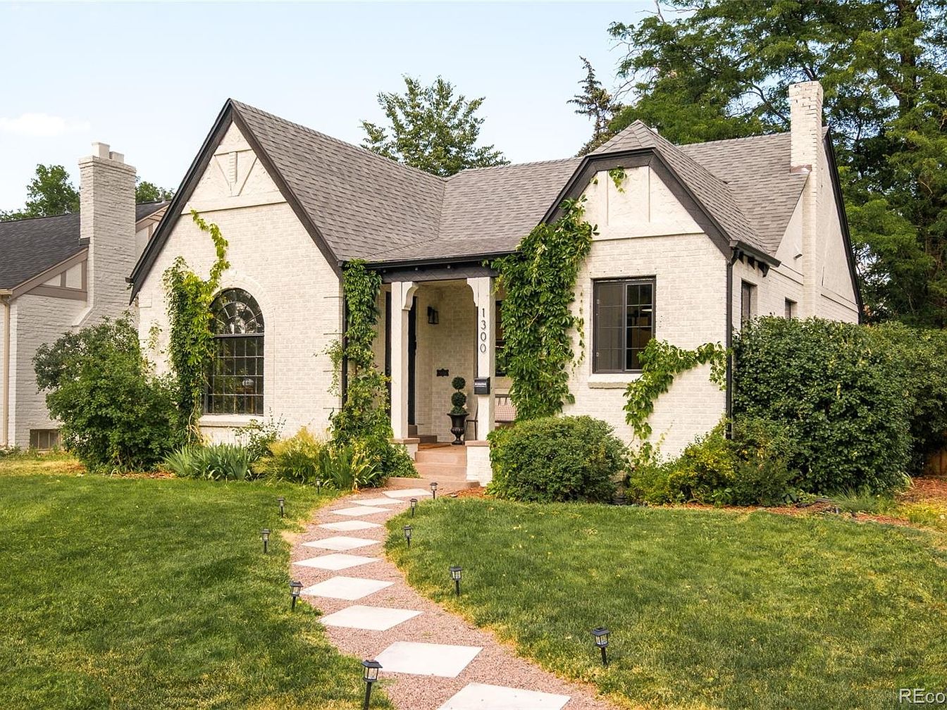 This beautifully reimagined Tudor home, built circa early 20th-century and located in the heart of Denver’s desirable Mayfair neighborhood, exemplifies the enduring allure of Tudor Revival architecture with its pitched rooflines, arched window, and brickwork accented by classic trim details. Blending historic character with contemporary updates, the home features a spacious, light-filled layout anchored by a prominent arched picture window, soaring ceilings, and seamless indoor-outdoor transitions, including a panoramic glass door opening to a lush, manicured backyard. The property benefits from recent renovations, including a modern kitchen, fireplaces, updated baths, and efficient enhancements throughout. Priced at $1,025,000, the home sits on a corner lot with a detached two-car garage, offering exceptional access to Denver’s vibrant urban amenities and parks.