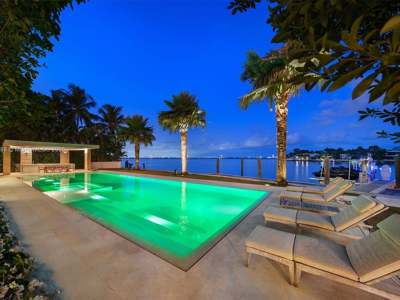 This brand-new ultra-luxury estate on the Venetian Islands exemplifies modern architecture and opulence. Built recently, it features 8 bedrooms, 7 full bathrooms, and 5 half baths, encompassing nearly 15,000 square feet on a sprawling 26,571 square foot lot, complete with 206 feet of Biscayne Bay frontage. Designed for lavish entertaining, it includes twin glass wine cellars, a walnut wet bar, a chef’s kitchen, a private gym, and a golf tee. With a listing price of $56 million, it provides exceptional amenities and garage space for over 12 luxury vehicles, all while offering breathtaking views of downtown Miami’s sunsets.