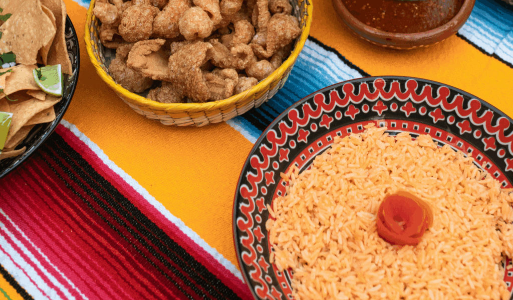 Mexican-style rice is a vibrant, tasty side dish that goes well with a variety of other foods. The traditional way is to sauté chopped garlic and onion in oil, then add long-grain rice and stir until just toasted. Finally, add tomato purée (or tomato + stock), salt, and a pinch of cumin. Cover and simmer until the rice absorbs the liquid. Use a fork to fluff the rice. For color, you can add corn or peas. Just make sure the lid is tight while simmering, and it’s forgiving. If you have a good rice recipe, you can serve it with beans, in bowls, or under grilled foods.