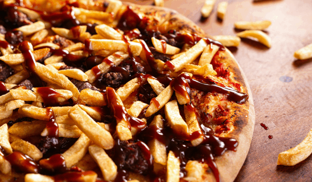 South African Gatsby pizza, a regional take with striking, layered toppings, was inspired by the overstuffed Gatsby sandwich. French fries, cheese, lettuce, spicy sauce, and seasoned beef or chicken are typical ingredients. Although the crust resembles that of a typical pizza, the toppings give it the texture of a loaded sandwich rather than a pie. It’s a creative and fulfilling take that showcases the nation’s fusion food culture, even though it’s primarily a specialty of some Cape Town pizzerias.
