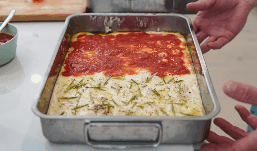 Old Forge, Pennsylvania, has its own take on pizza and is referred to by its citizens as the “pizza capital of the world.” Instead of being baked in pies and slices, Old Forge pizza is cut into “trays” and “cuts” after being baked in rectangular pans. Though not as heavy as deep-dish, the crust is soft and thick. With a creamy cheese blend that varies by pizzeria and a sweet, oniony sauce, toppings are usually simple. Few people outside of the area have tasted its cozy, comforting flavor because it is so locally rooted.