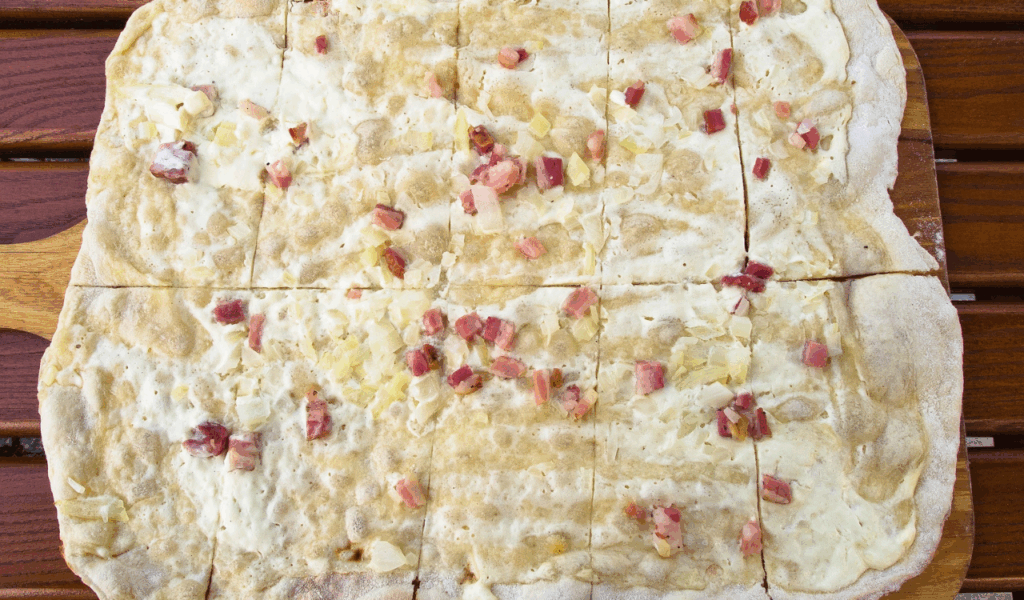 Often confused with pizza, this Alsatian specialty is a sophisticated creation all its own. The ultra-thin, crispy crust of tarte flambée is topped with bacon or ham, thinly sliced onions, and crème fraîche. It’s light, smoky, and a little tangy after being swiftly baked in a wood-fired oven. There is no tomato sauce and the crust is more like flatbread than regular pizza dough. It’s a tasty dish that demonstrates the versatility of “pizza-like” foods in European cuisines.