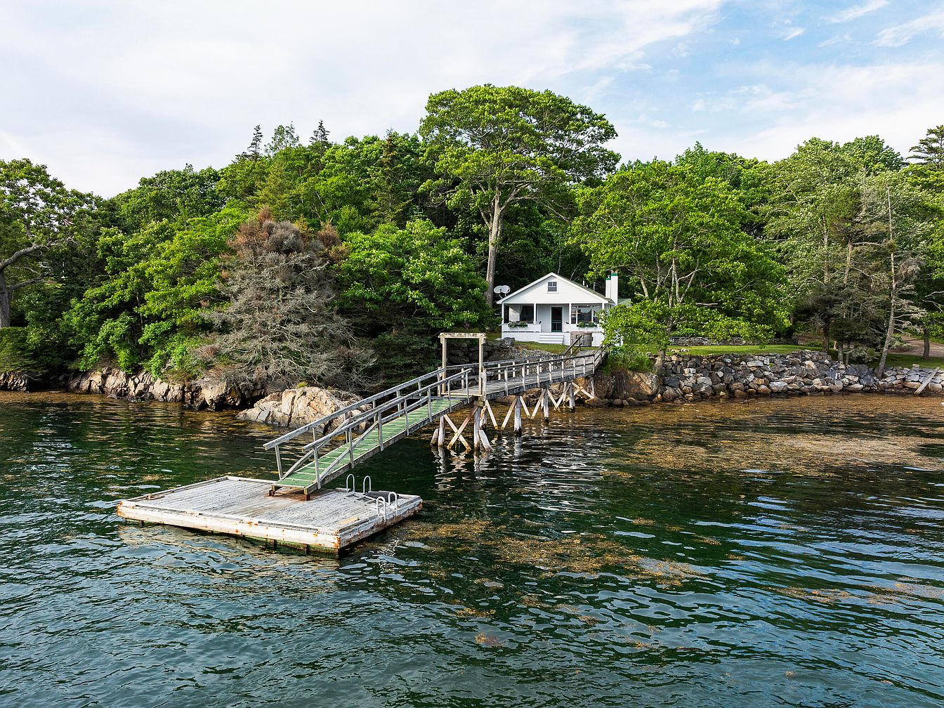 Charming 1930 Waterfront Cottage in South Bristol, Maine, With Stone Fireplace, Built-in Bookshelves, and Private Dock