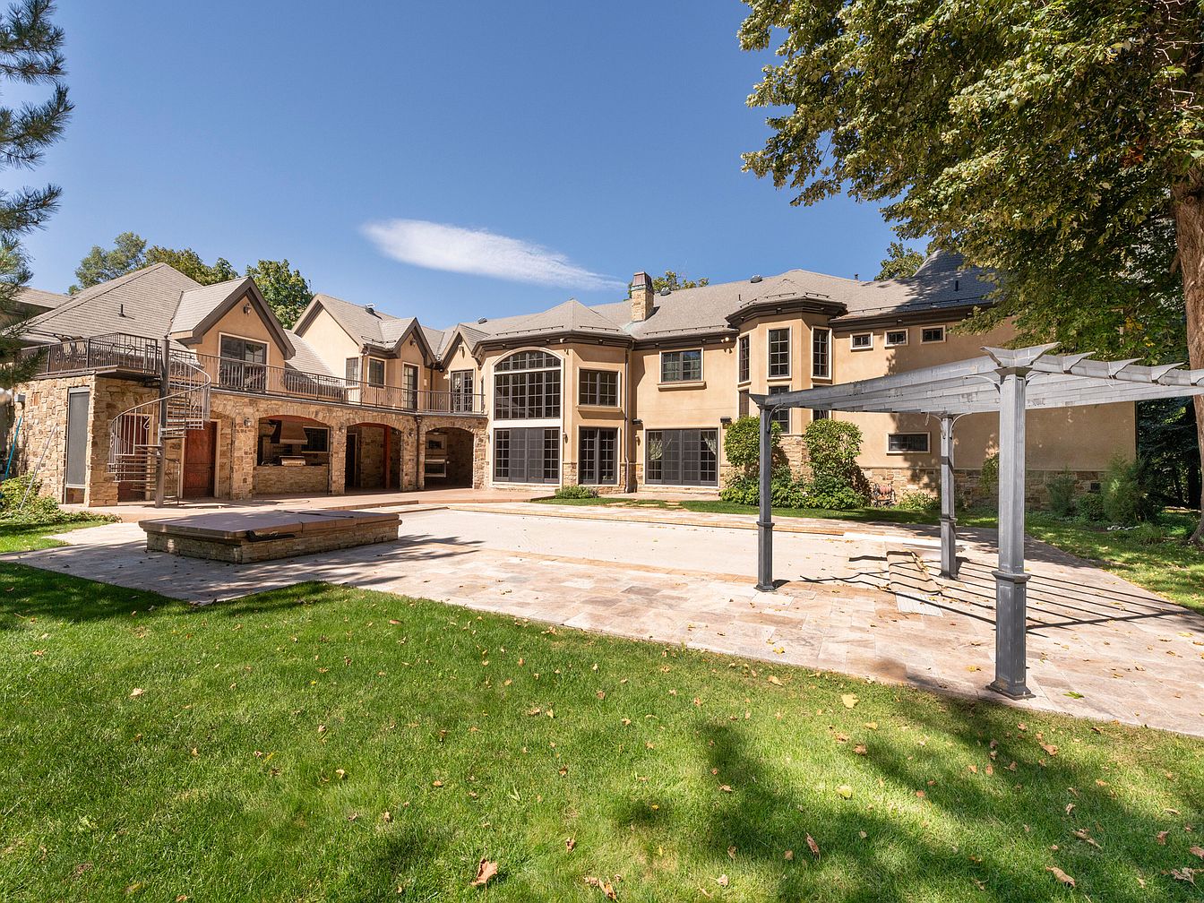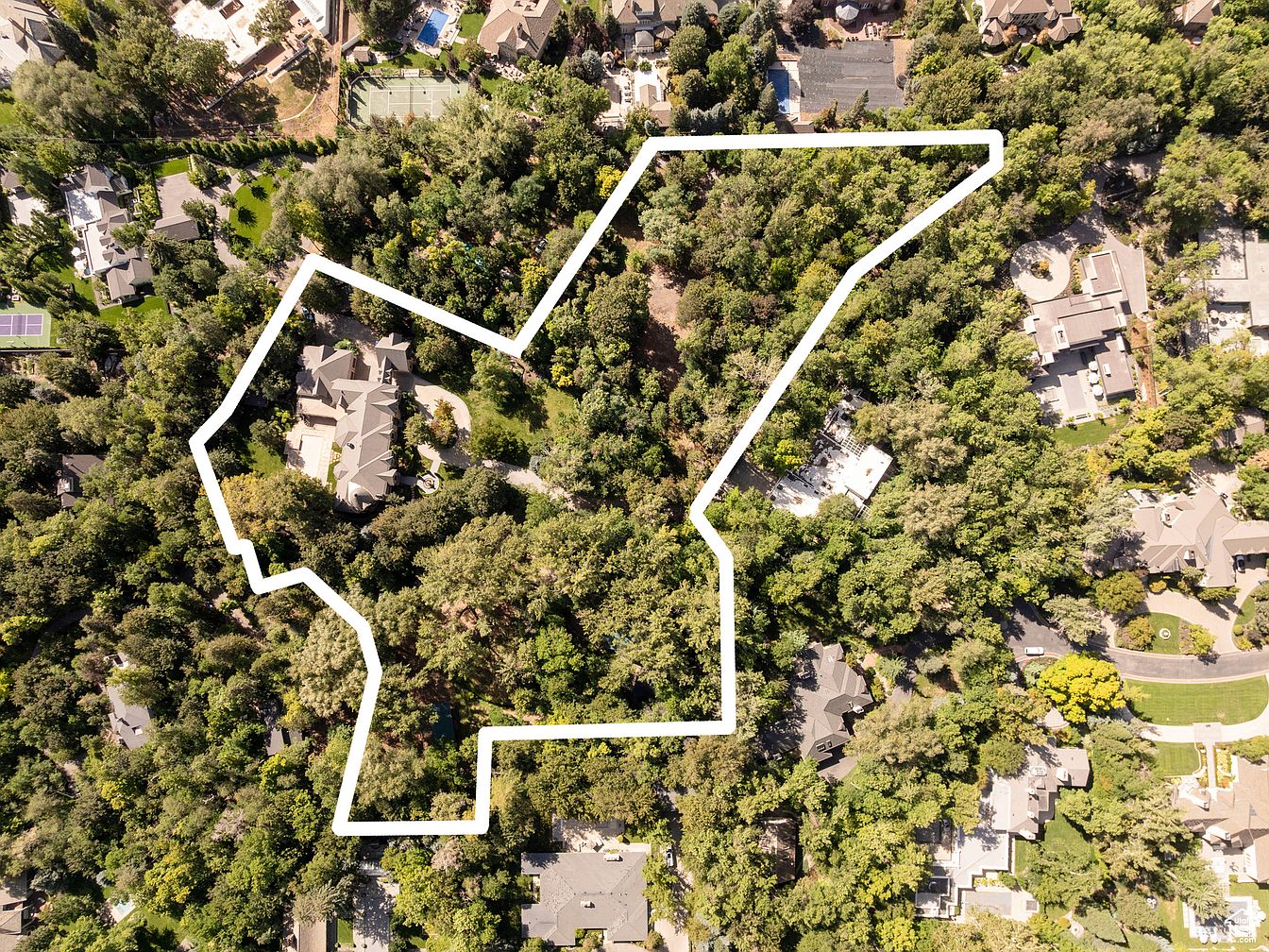 This breathtaking 4.87-acre estate, set in Holladay, UT, offers a rare opportunity to own a prominent luxury residence, possibly the last of its kind in the Cottonwoods. Built in a refined architectural style that combines modern elegance with historical touches, it features manicured lawns, serene streams, and a charming log cabin alongside a substantial main home with a pool. The property has undergone recent renovations, enhancing its luxurious appeal, while preserving its historical significance. Priced at $14,500,000, this estate encompasses generous plot dimensions and square footage, promising endless possibilities for future development. Its beautiful surroundings and expansive land present a truly magical setting for discerning buyers.