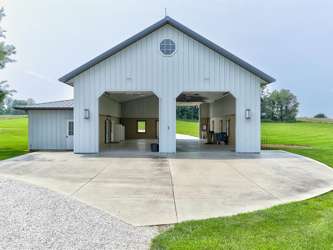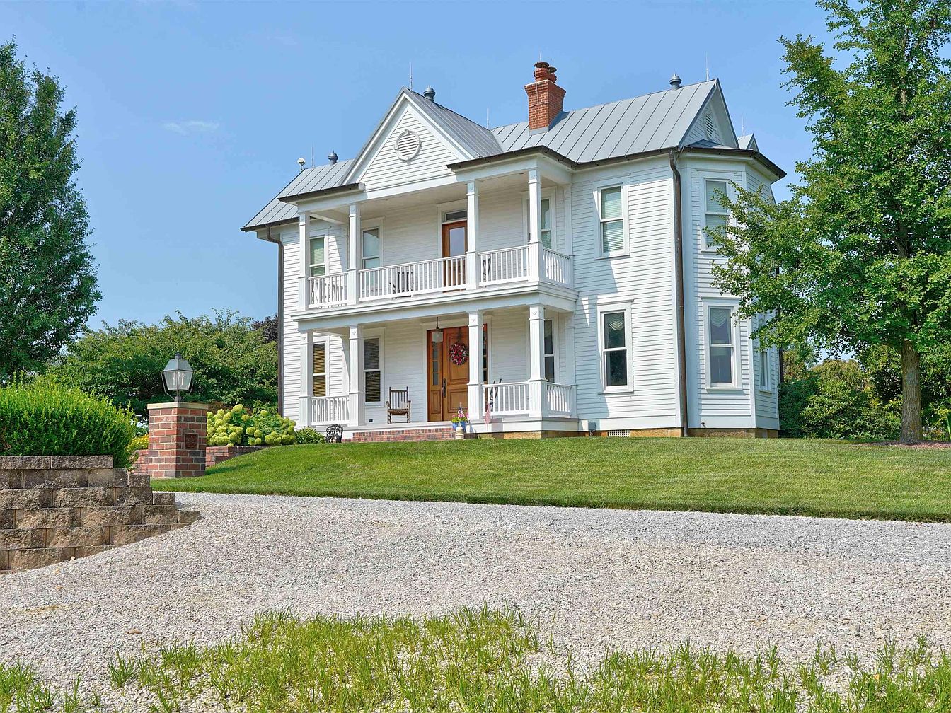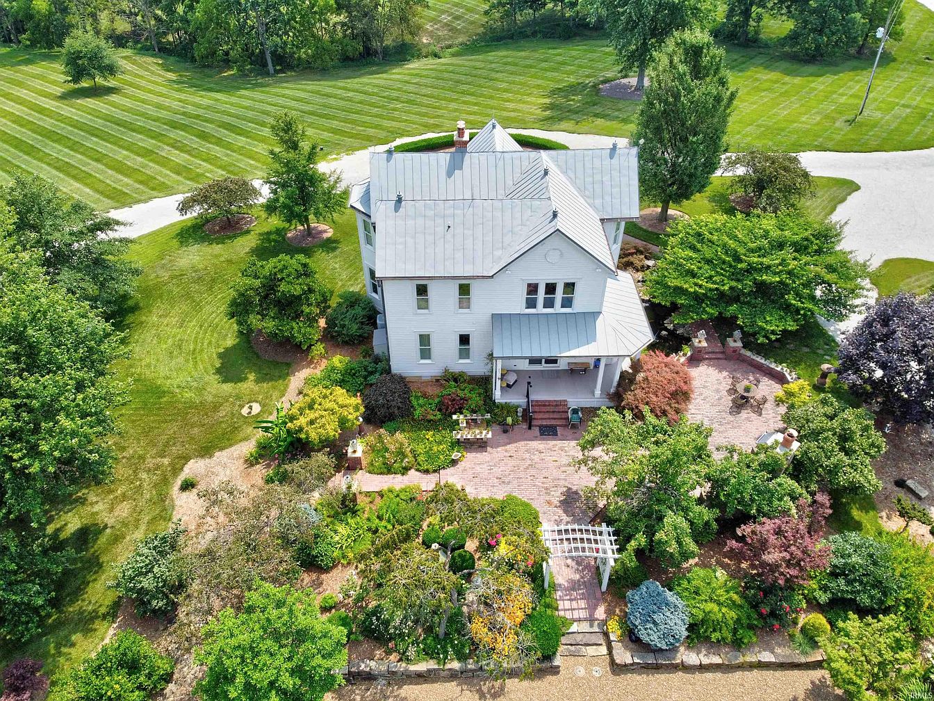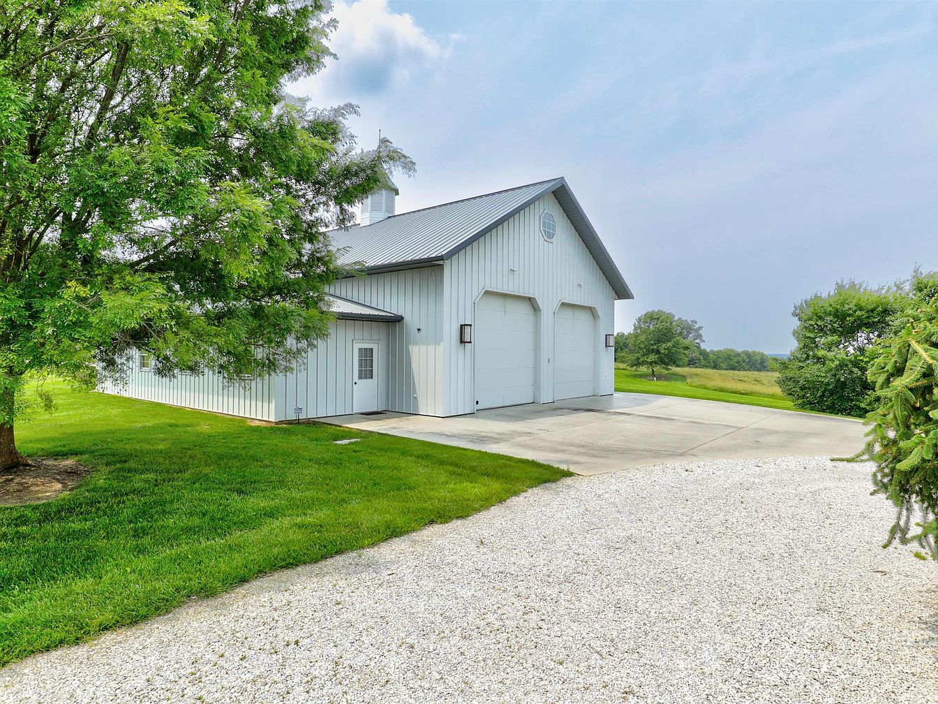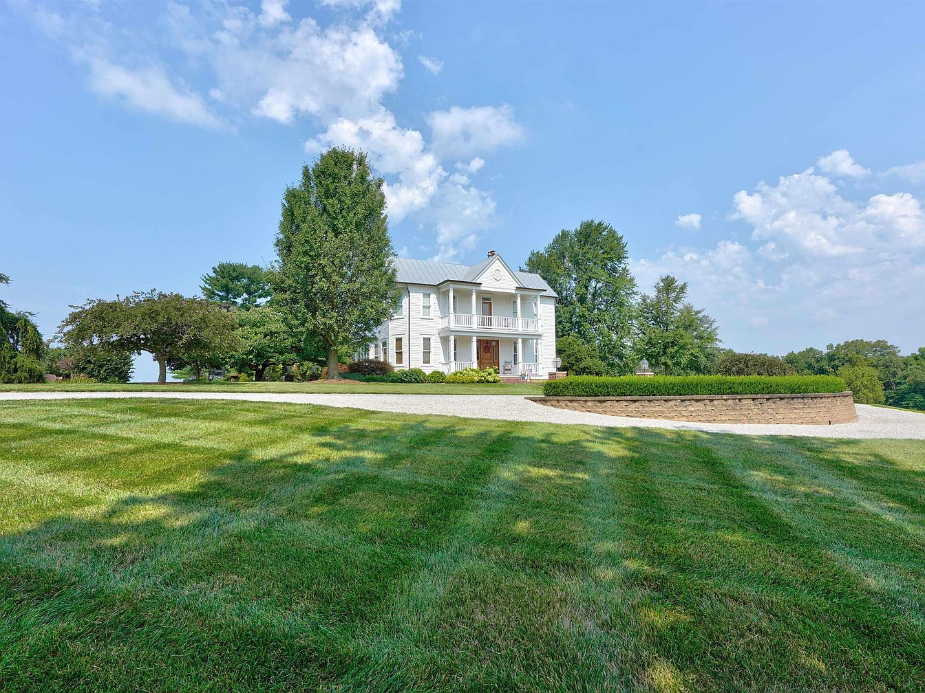 This beautifully restored farmhouse, originally built in 1906 and meticulously renovated between 1994 and 1997, epitomizes the timeless elegance of classic American farmhouse architecture with its white California Redwood siding and hand-fabricated standing seam metal roof. Nestled on nearly 33 acres of rolling Southern Indiana hills in Ferdinand, this historic property offers over 3-4 bedrooms and 3 bathrooms, complemented by original oak woodwork and stunning granite flooring in the kitchen. Outdoor highlights include a landscaped fish pond, brick patio with fireplace and grill, and expansive covered porches. Additional value is found in a modern 48×60 Morton building, offering a large office, full bath, and drive-through doors. Priced at $1,150,000, this “Heaven on Earth” estate spans more than 32 acres, providing unmatched views and tranquility just minutes from Louisville, Evansville, and Jasper.
