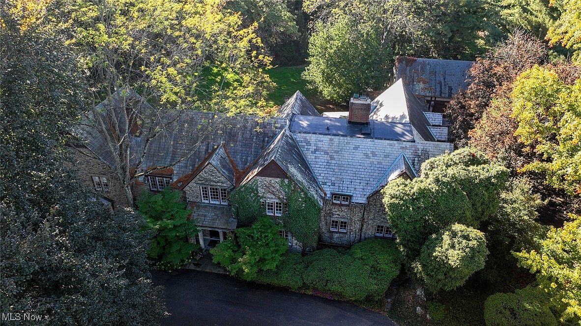 Experience 1929 Tudor Revival Estate in Akron, Ohio, With Stone Exterior, Reverse Staircase, and 2 Acres of Gated Gardens