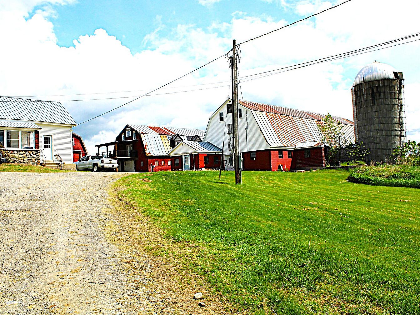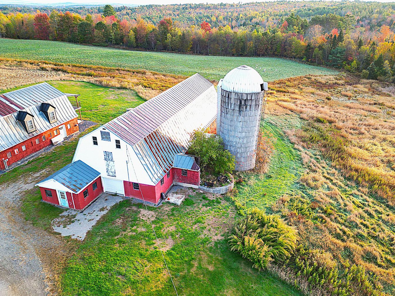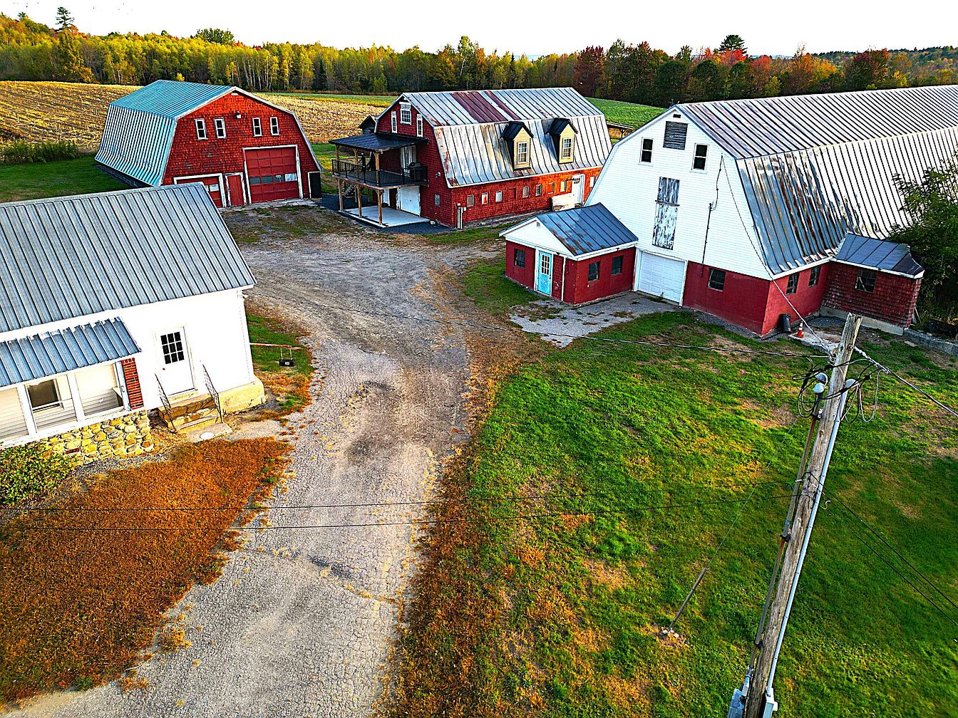 Explore a 1918 Farmhouse in Madison, Maine With Three Barns, a Second Home, Grain Silo, and 270 Acres of Wooded Land
