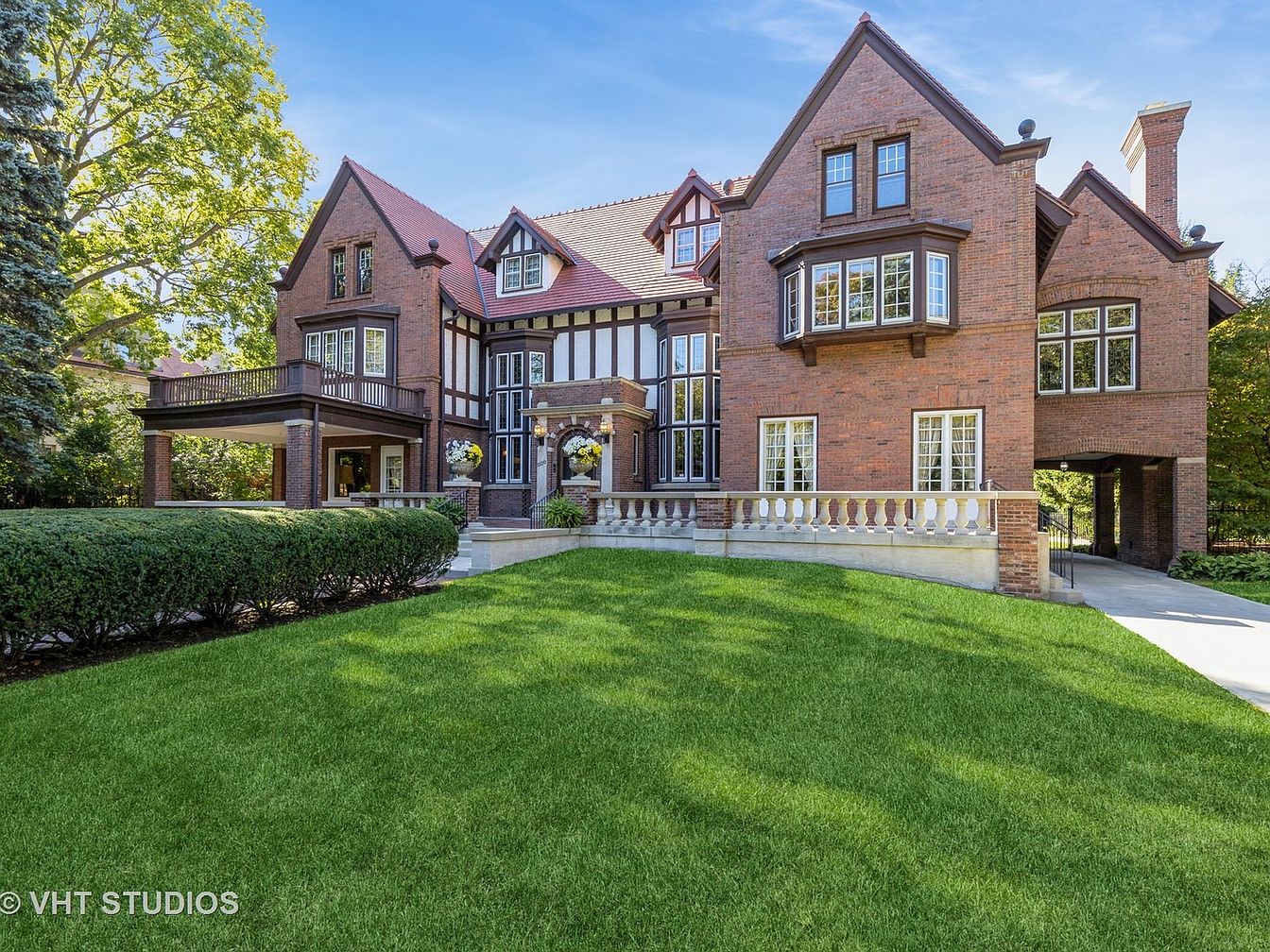 Grand 1912 Tudor Landmark in Evanston, Illinois With a Two-Story Great Hall, Four Fireplaces, and a Historic Coach House