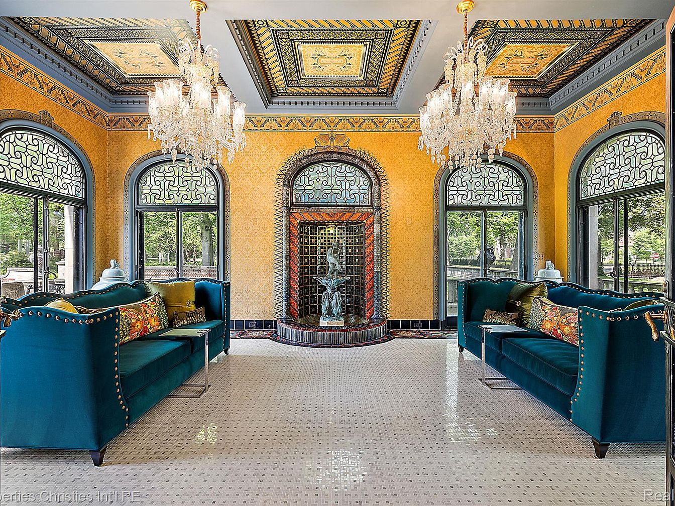 Grand 1926 Fisher Mansion in Detroit, Michigan, with 15 Bedrooms, Breathtaking Stained-Glass Windows, and Lush 5-Acre Grounds