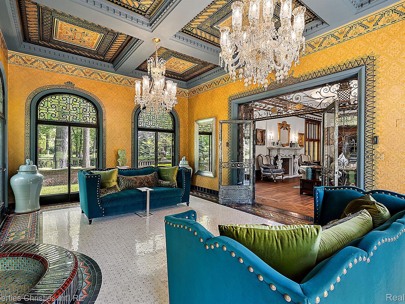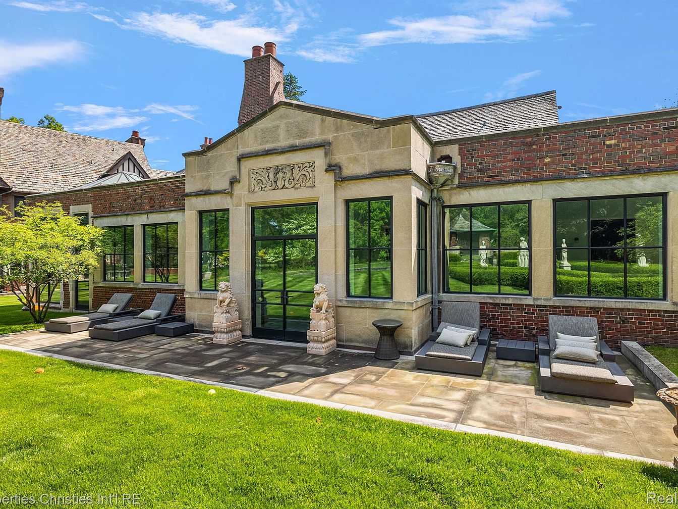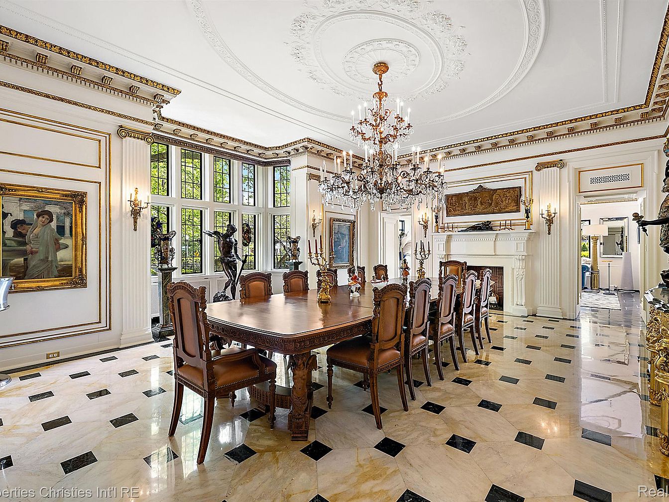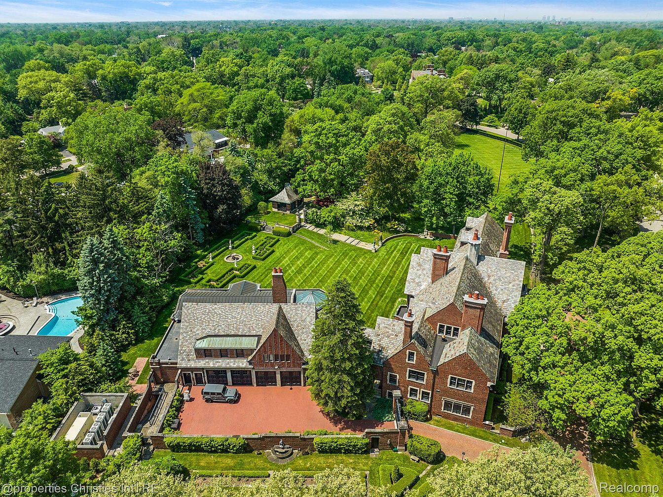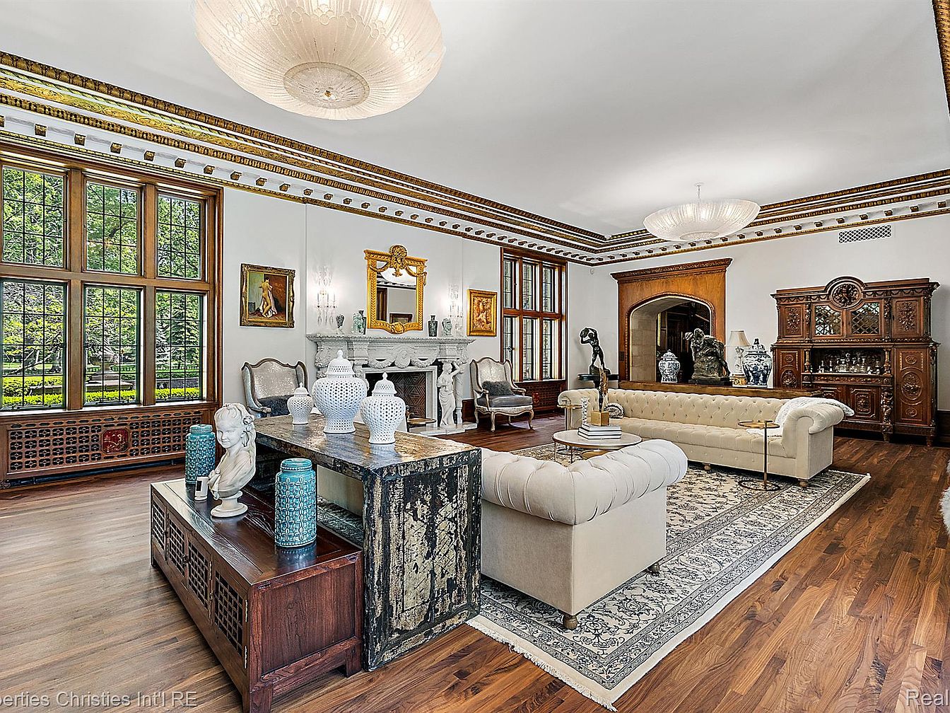 The Fisher Mansion, a monumental estate in Detroit’s prestigious Palmer Woods, spans over 20,000 sq. ft. on nearly 5 acres, embodying early 20th-century architectural grandeur. Built in the 1920s, this masterpiece reflects the craftsmanship of its era, featuring intricately paneled mahogany interiors, stained-glass accents, and soaring ceilings. Recently renovated to preserve its historic opulence while integrating modern luxury, the estate boasts 15 bedrooms and an indoor pool. Priced at $7,000,000, it represents a unique blend of history and contemporary elegance, making it a prime example of Detroit’s rich architectural legacy, inviting discerning buyers to experience its timeless beauty.