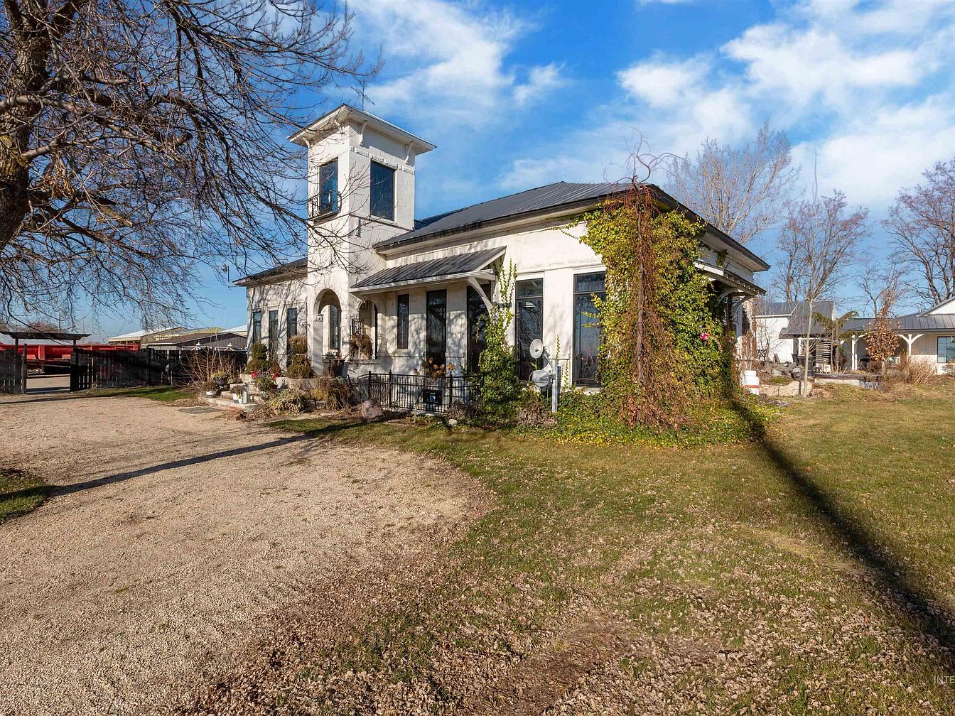 This remarkable 1905 schoolhouse in Nampa, Idaho represents a rare blend of historical significance and modern luxury, recently renovated from a commercial building into an elegant residence. The home features 4 bedrooms, 3.5 baths, real hardwood floors, soaring 13ft ceilings, and a living room centered around an authentic wood fireplace. Showcasing a transitional architectural style, it offers a master suite with spa-like amenities and major upgrades to plumbing, electrical, and heating for contemporary comfort. The property also includes a 30×30 foot garage, a separate shop with a pellet stove, and an unfinished basement with its own entry. A highlight is the 2020-built 1,350 sq.ft. guest house with a 6-car garage and wraparound porch. Listed at $1,224,625, it’s truly a must-see.