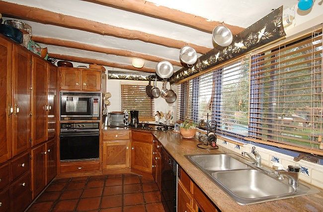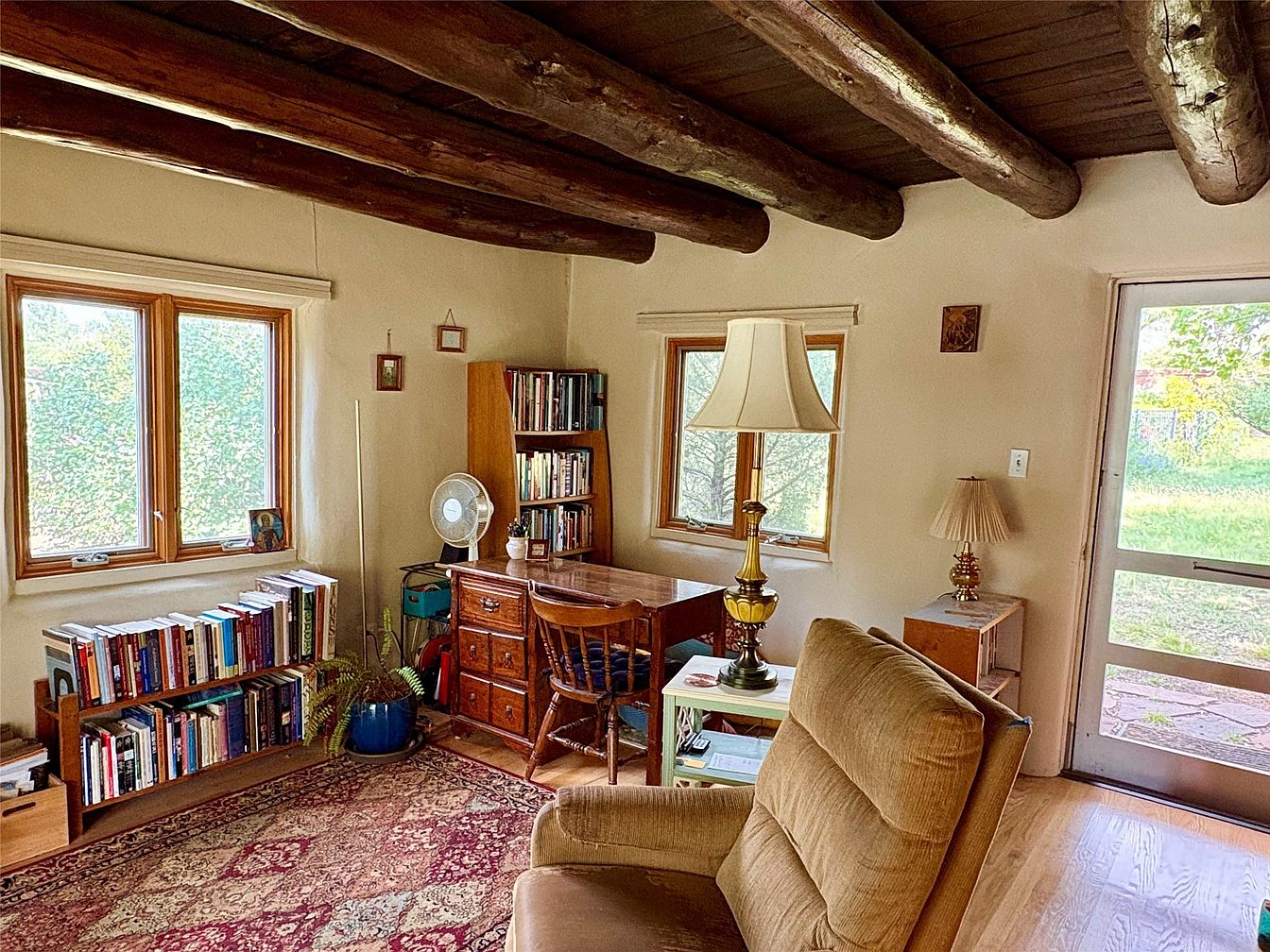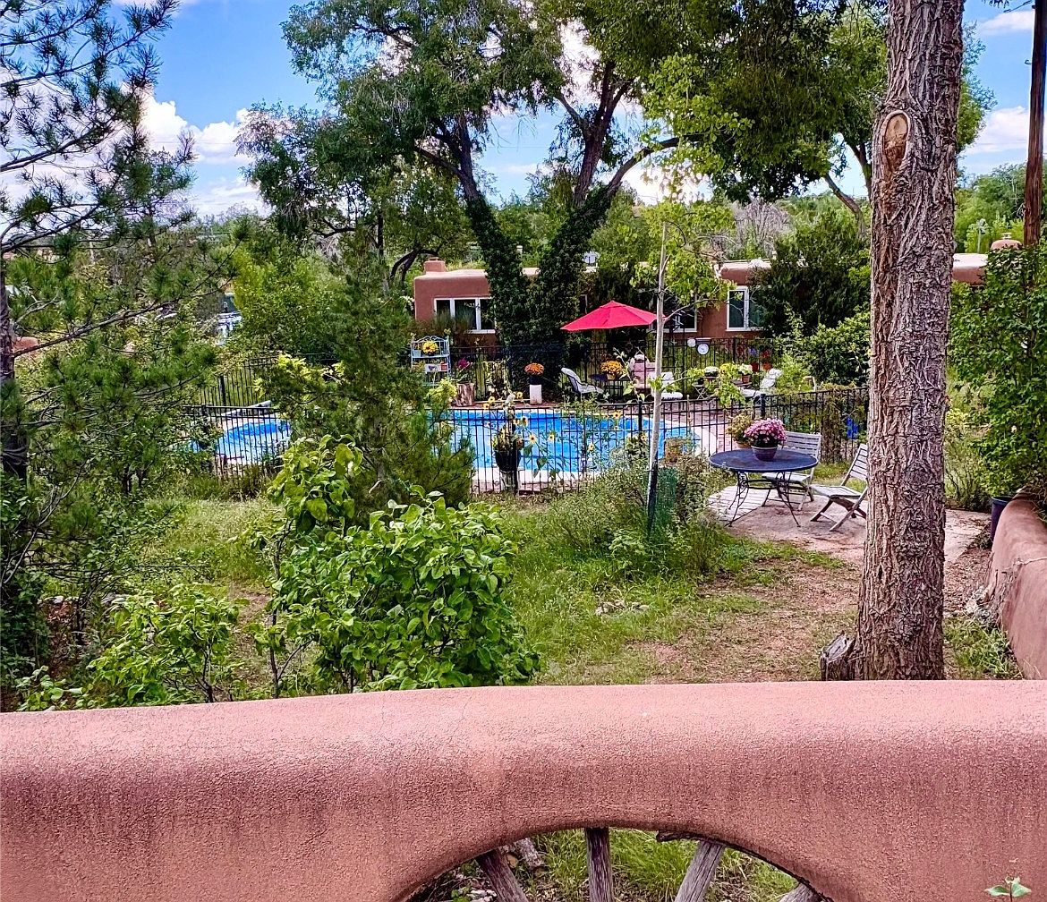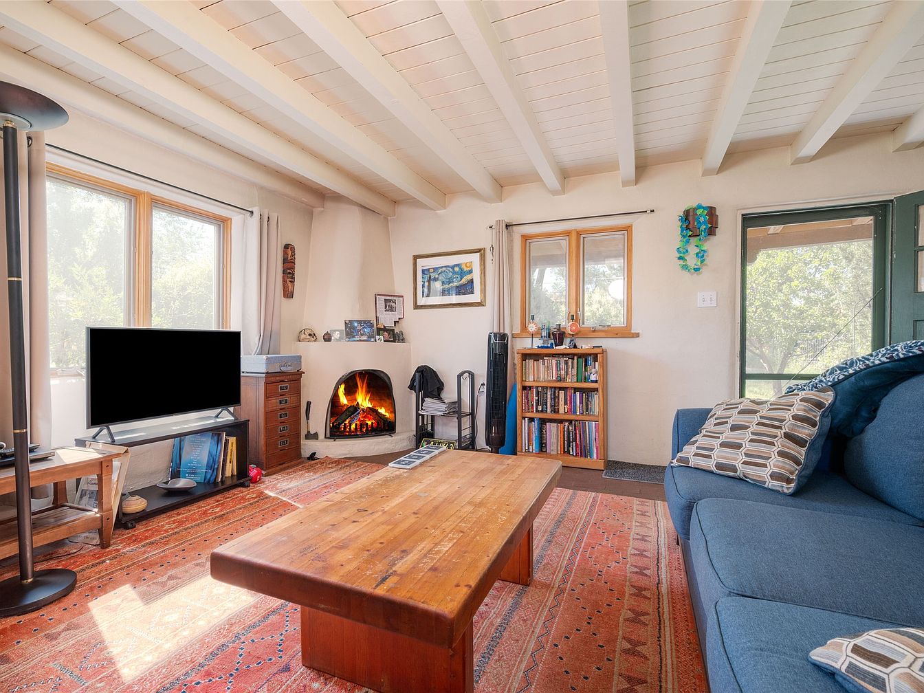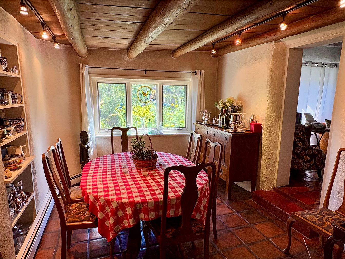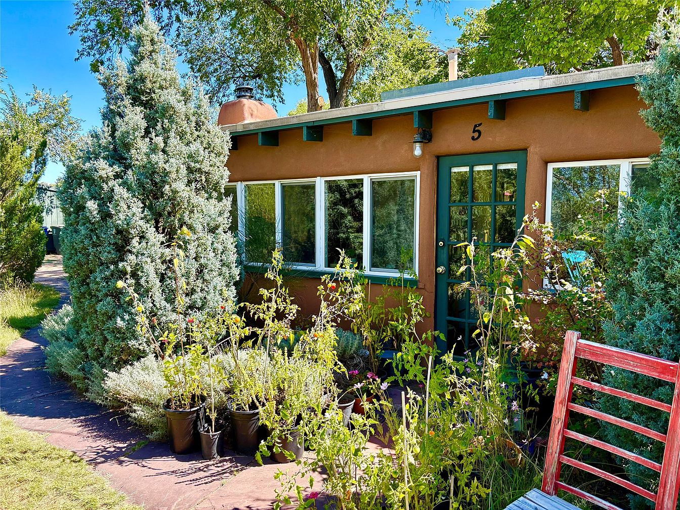 This century-old adobe residence in Santa Fe, NM, set on roughly 2 acres, features a unique compound design with five casitas surrounding a central oasis. Built over 100 years ago, it embodies the Southwest architectural style, adorned with authentic adobe walls and natural landscaping. Recent renovations include updated kitchens and baths, new Pella windows, and extensive landscaping with native flora. The compound includes six units, totaling 6,215 sq. ft., with eight bedrooms and baths, complemented by amenities such as nine fireplaces and a 12′ x 28′ barn. Priced at $4.5 million, the property also offers reserved development rights, ideal for various uses like retreats or community living, located just 3 miles from the Santa Fe Plaza.
