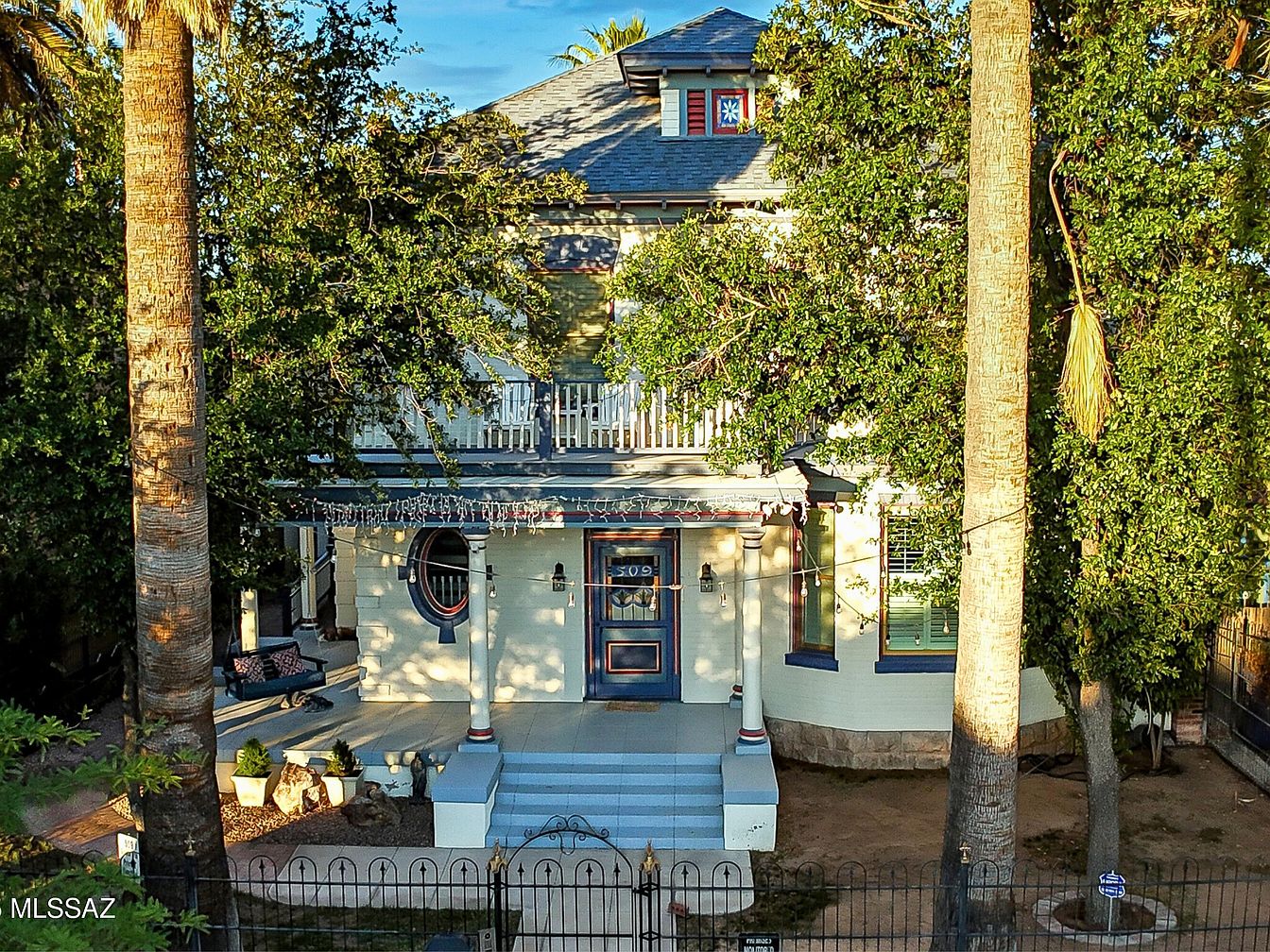 The fully restored 1902 Miller Mansion, located in Tucson, AZ, exemplifies early 20th-century grandeur with rich historical significance, having undergone nearly $1 million in renovations to preserve its classic architecture while introducing modern comforts. Showcasing a blend of Victorian and early American architectural styles, the mansion boasts 11-foot ceilings, an ornate grand staircase, restored clawfoot tubs, and custom marble bathrooms. Modern upgrades include a chef’s kitchen with Wolf appliances and ADA-compliant accessibility. The property features a gated courtyard and a separately updated Carriage House, making it suitable for residence, business, or B&B use. Zoned for both residential and commercial purposes, this iconic mansion is listed at $2,000,000, offering timeless elegance in Tucson’s vibrant heart.