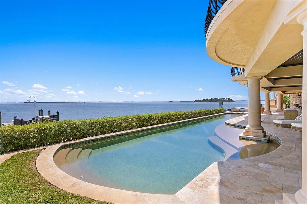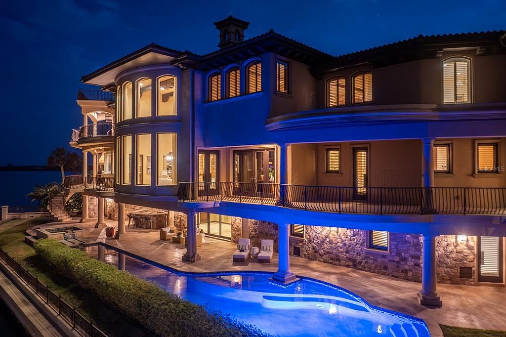 This extraordinary Mediterranean estate, known as the ‘Magic Mike House,’ is located in the coveted Sands Point community of Tierra Verde, Florida, commanding nearly 200 feet of breathtaking waterfront views. The home was built in recent decades, blending refined architectural details with modern amenities, including two elevators and a guest casita. Recent renovations have enhanced its luxurious allure, featuring a dramatic great room with soaring ceilings, a limestone fireplace, and a media room. Listed at $9,800,000, the estate boasts extensive entertaining spaces, a heated saltwater pool, and automated smart-home systems. The expansive plot offers a large square footage, complemented by a full-service dock, ensuring an ultimate Florida waterfront lifestyle.