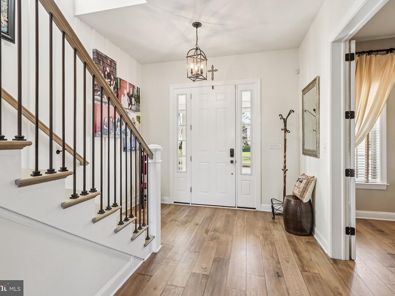 This exquisite Modern Farmhouse, located in Middletown, DE, exemplifies luxury and timeless design, blending classic architectural cues like a wrap-around porch, dormer windows, and Greek Revival details with contemporary amenities. Built recently with nearly 6,000 sq ft of living space, it offers 5 bedrooms, 4.5 baths, 7-inch wide hardwood oak floors, custom millwork, and 10-foot ceilings throughout. An entertainer’s dream, it features a gourmet kitchen, formal dining with butler’s pantry, and an expansive great room. The home’s premium plot backs to parkland on three sides, providing exceptional privacy and scenic pond views. Priced at $1,069,000, this property includes high-end finishes, a walk-out lower level, smart home features, and is walking distance to local amenities.