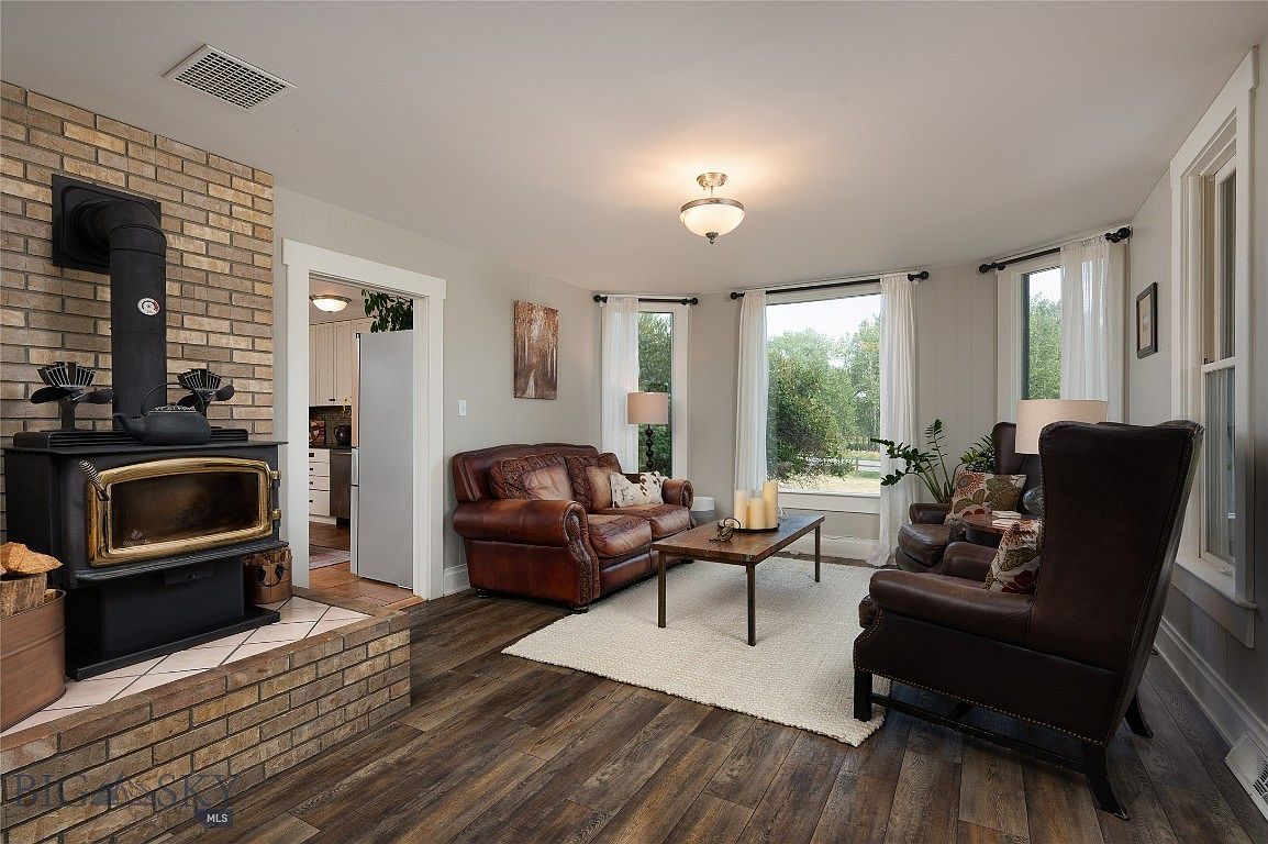 Nestled in the picturesque Gallatin Valley, this historic 1914 farmhouse at 1245 Gateway South offers a unique blend of rustic charm and modern convenience. Set on 22.6 acres, the property boasts a serene spring-fed pond and stunning mountain views, making it a prime retreat just 15 minutes from Bozeman. Thoughtful renovations have enhanced the home, incorporating new flooring, remodeled bathrooms, and upgraded appliances while preserving its character. With no zoning restrictions and two wells, the property offers endless possibilities, including farming and gathering spaces. Recently listed for $2,314,700, this comparatively spacious home invites outdoor enthusiasts and those seeking a peaceful lifestyle to create their dream Montana experience.