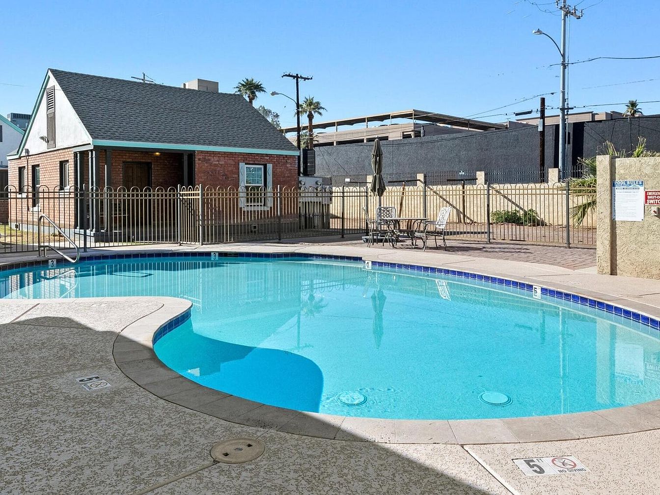 This historic century home, located in a well-established gated community at the corner of 9th Ave and Adams in Phoenix, AZ, reflects classic early-mid 20th century American architectural style with charming brick and stucco cottages. Built in the early 1900s, the property comprises seven stand-alone units: one 3-bedroom/2-bath home and six 2-bedroom/1-bath cottages, scattered across a half-acre plot. Recent renovations include a pool remodel, new roofs, solar panels, upgraded attic insulation, and new water heaters and HVAC systems, providing modern efficiency while preserving historic charm. With a listing price of $1,600,000, on-site laundry, transferable termite warranties, and proximity to downtown Phoenix attractions, this investment offers both historic significance and contemporary tenant appeal.