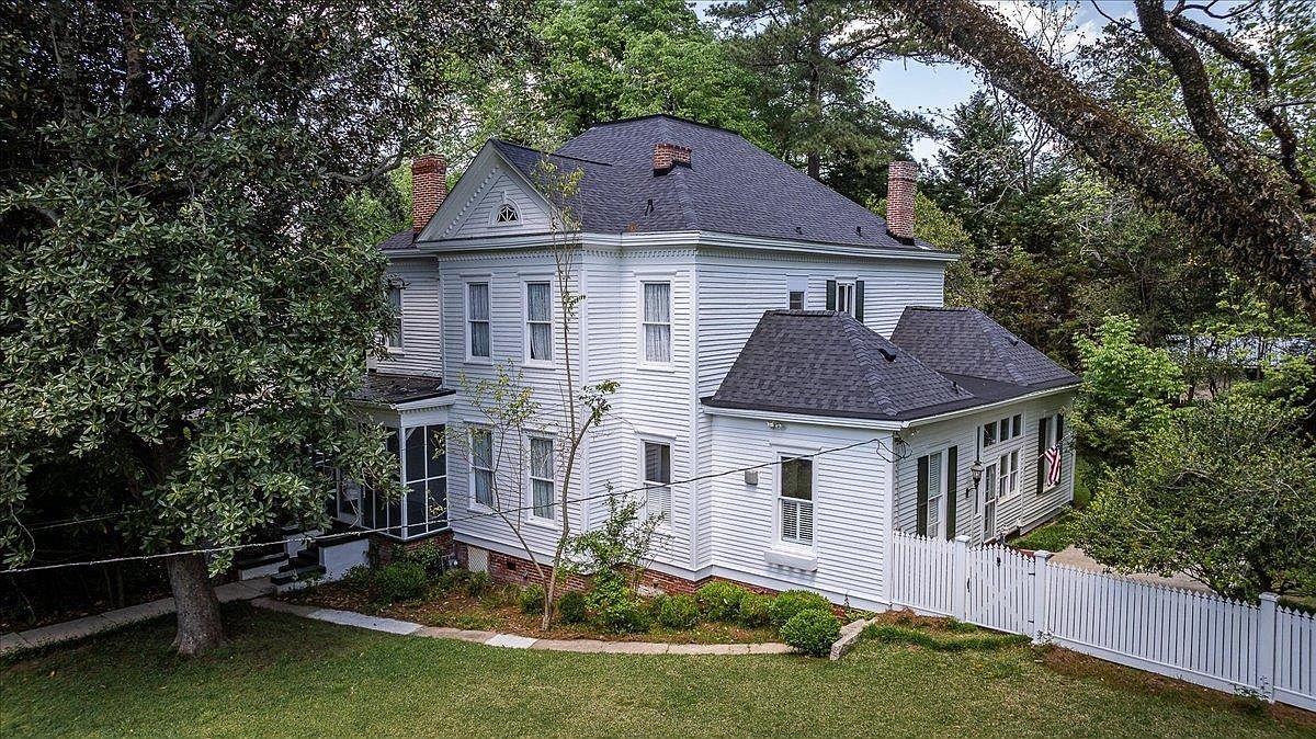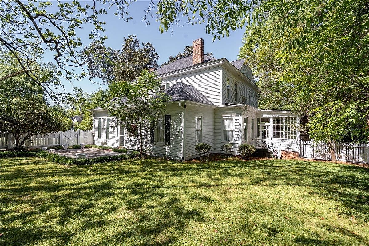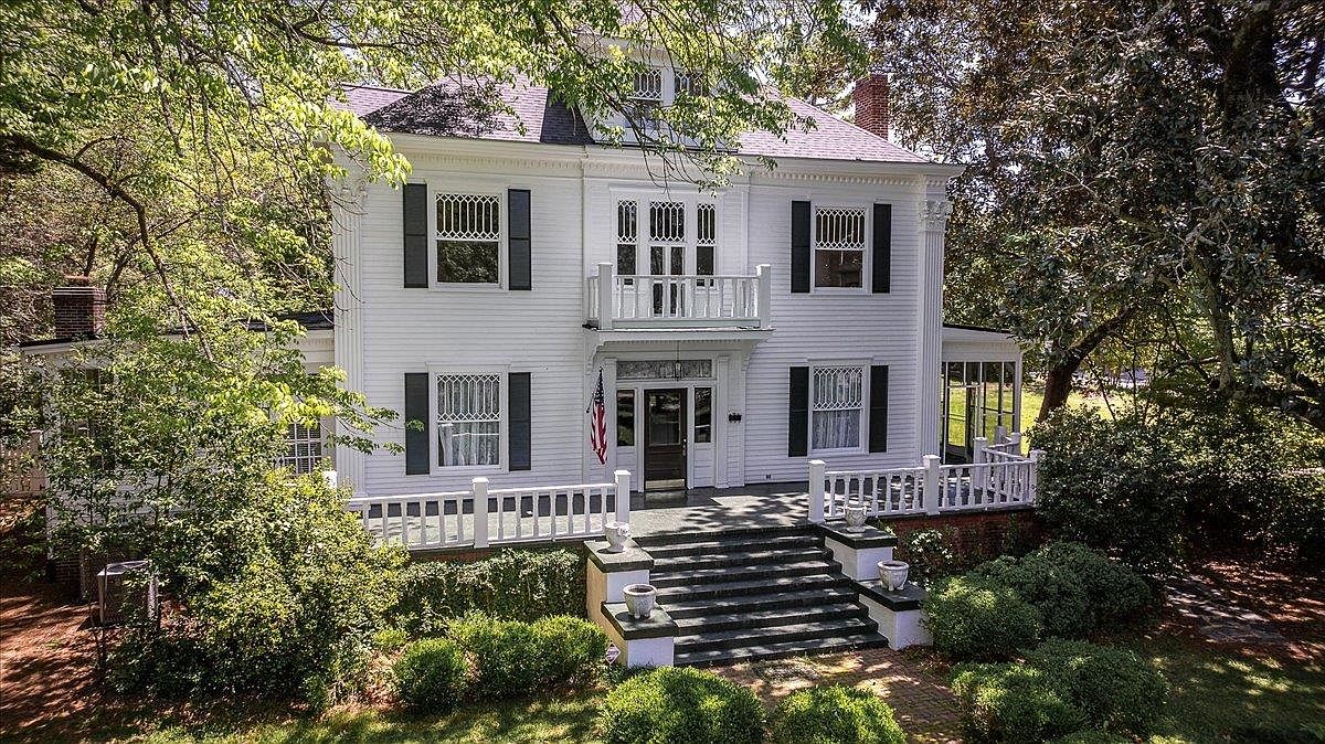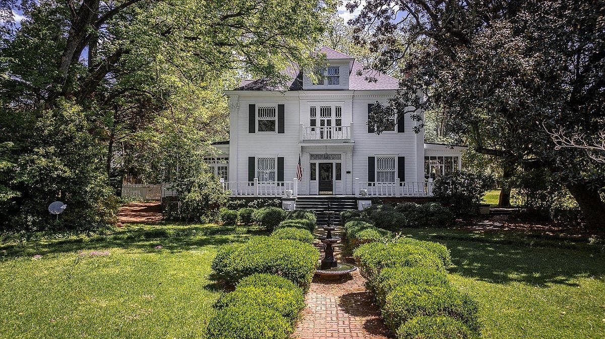 This exquisitely preserved century home in Greensboro, Georgia, exemplifies early 1900s Southern architectural charm with its stately columns, wide porch, and elegant detailing. Set amid lush, manicured gardens and featuring an ornate cast-iron fountain, the property blends old-world grace with modern comforts, including a newly updated kitchen and comprehensive renovations in 2023 to the roof, HVAC, and utilities. Notable for its original plaster walls, crown molding, and nine decorative fireplaces, this historic residence offers spacious grounds ideal for entertaining. Nestled just minutes from Lake Oconee and prestigious amenities, this move-in ready home is listed at $1,150,000, solidifying its significance as a rare blend of heritage, luxury, and Southern hospitality in tranquil Greensboro.
