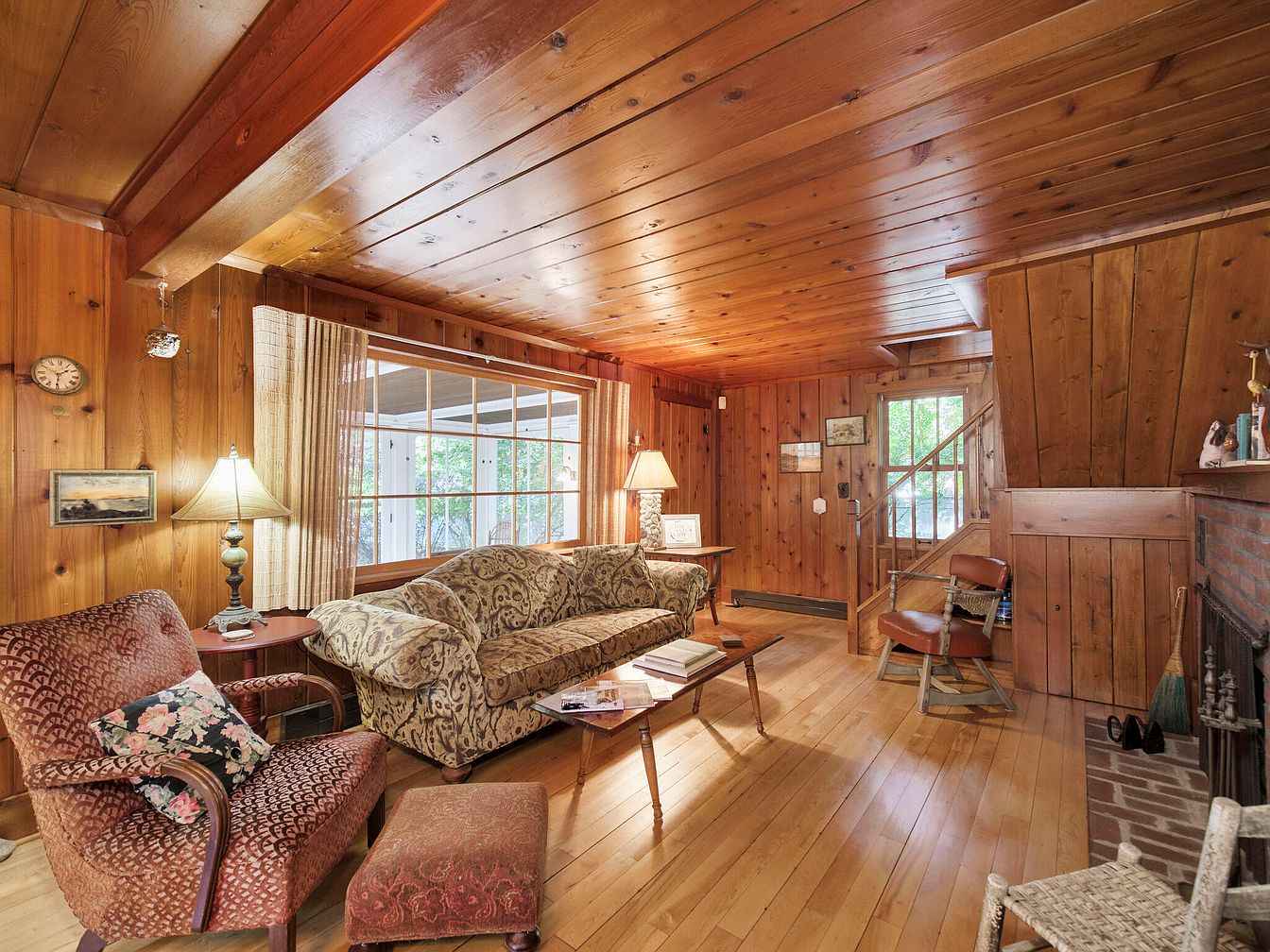 Step Inside a 1900 Cottage in Bear Lake, Michigan, Featuring Original Woodwork, a Brick Fireplace, and Lake Michigan Views