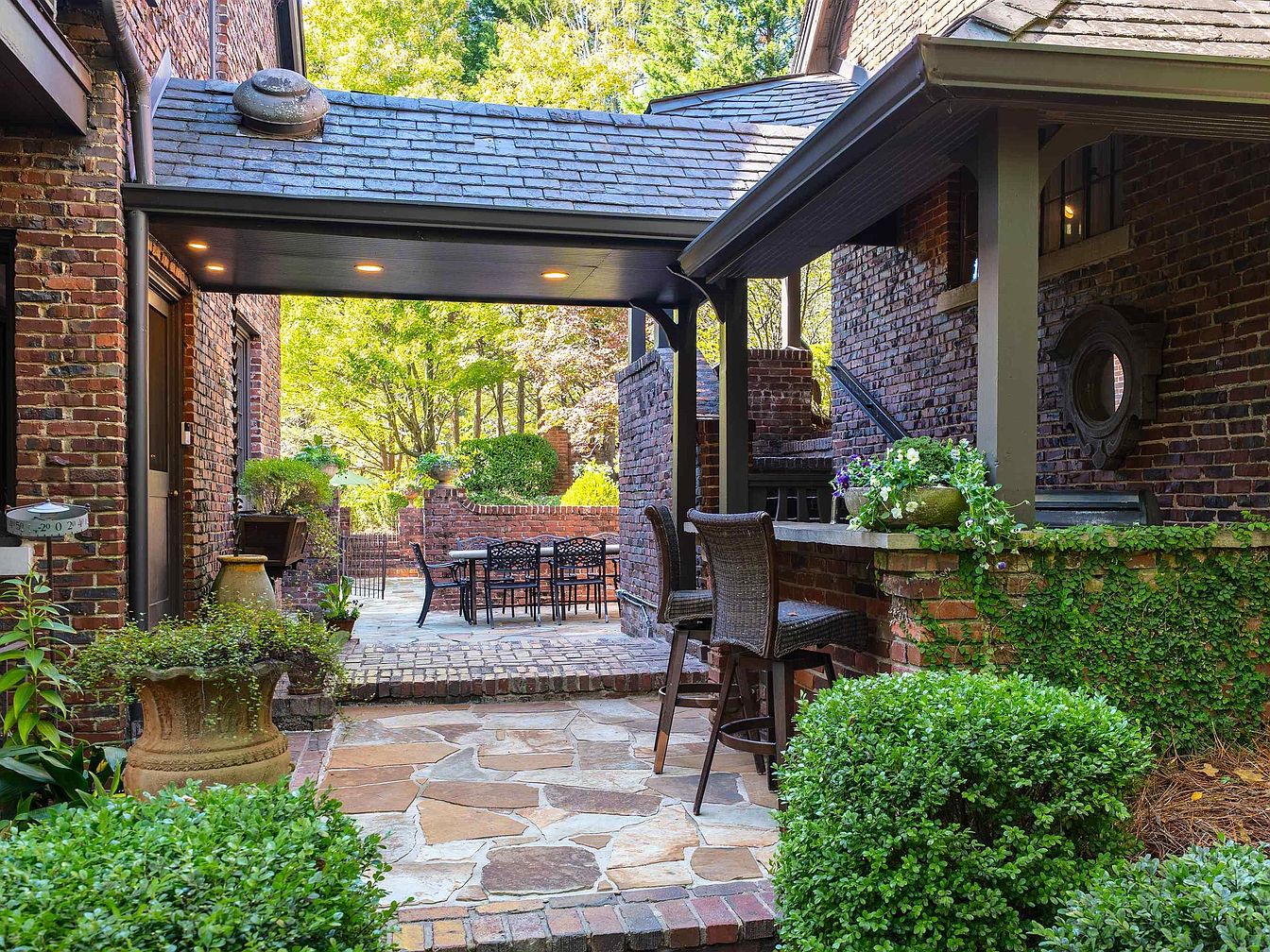Step Inside a 1925 Klinker Brick Tudor in Birmingham, Alabama With a Guest House, Outdoor Fireplace, and Fountain Pool