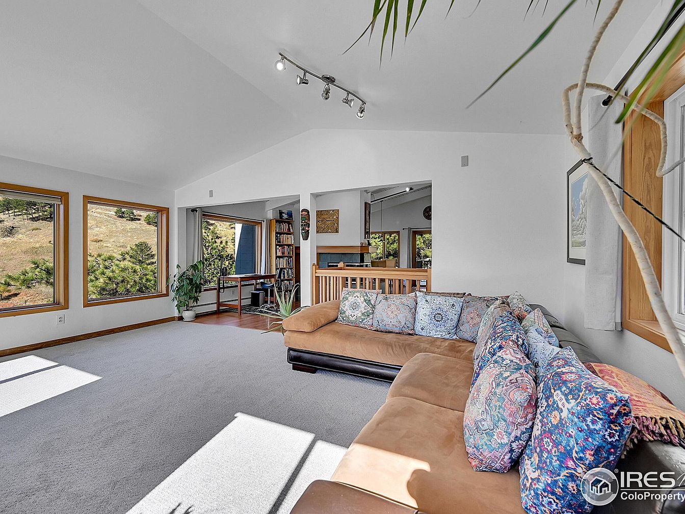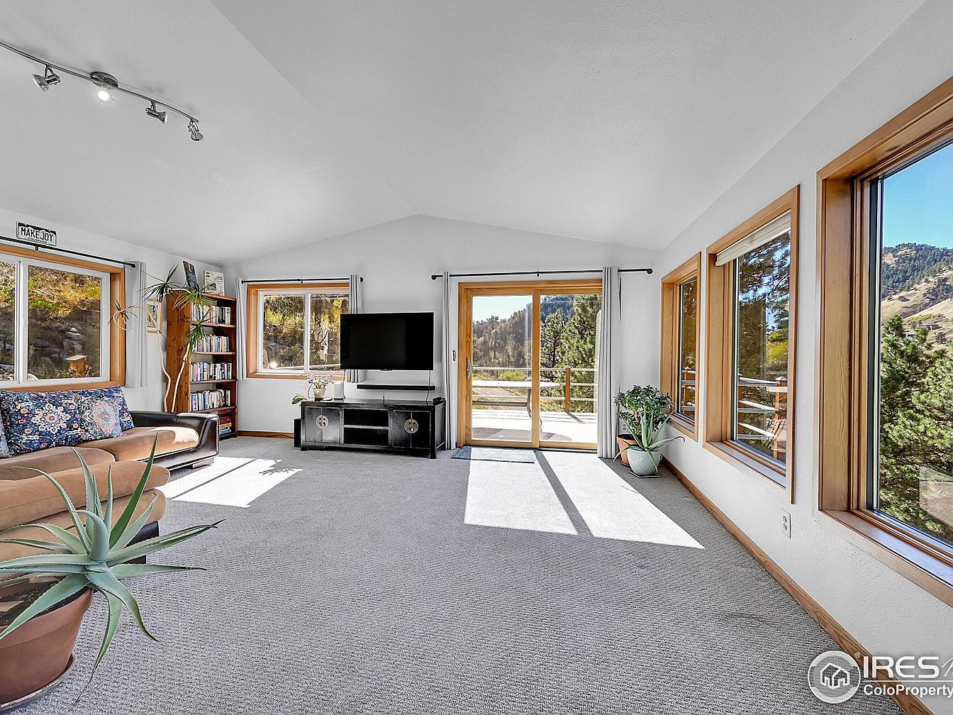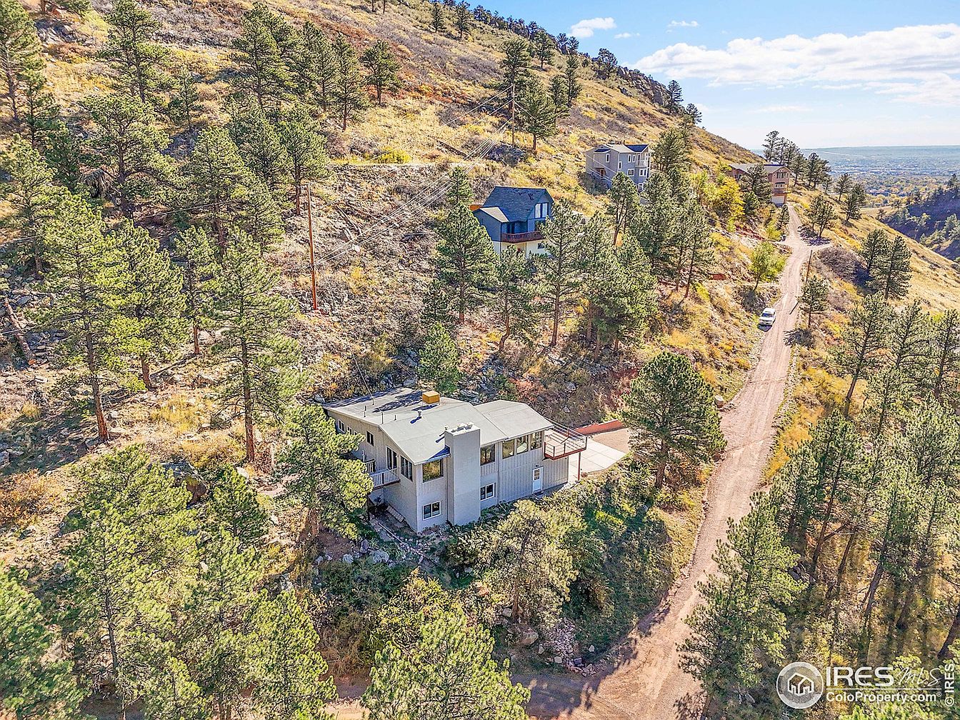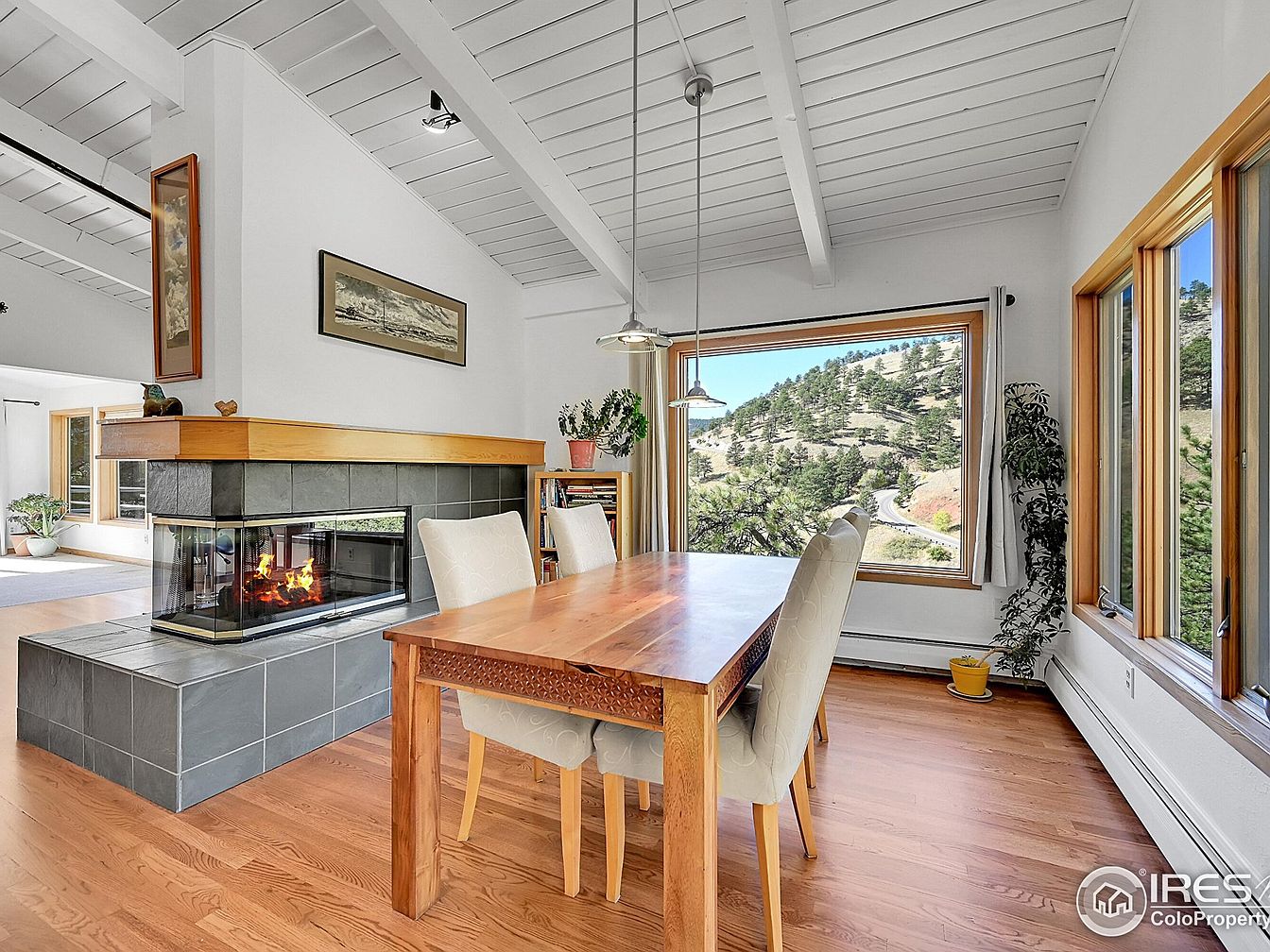 This stunning century-home-inspired mountain retreat, located just ten minutes from downtown Boulder, Colorado, perfectly blends historical charm with modern updates. Likely built in the mid-20th century, the architectural style exhibits classic split-level modernism, featuring expansive windows, soaring beamed ceilings, and an inviting double-sided fireplace that anchors the open-concept living spaces. Recent renovations include a brand-new south-facing deck, all-new high-efficiency windows, a fire-resistant roof, and fully updated interiors such as the custom wood floors and high-end kitchen. The home sits on a lush, pine-framed one-acre lot, offering panoramic views and abundant privacy, while a separate downstairs apartment enhances versatility. This thoughtfully upgraded listing, offered at $1,087,500, provides tranquil mountain living moments from Boulder’s city amenities.