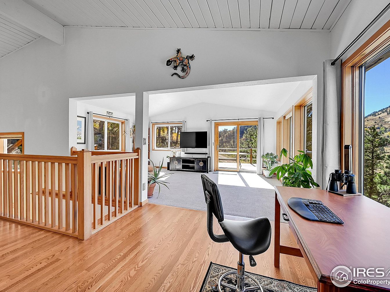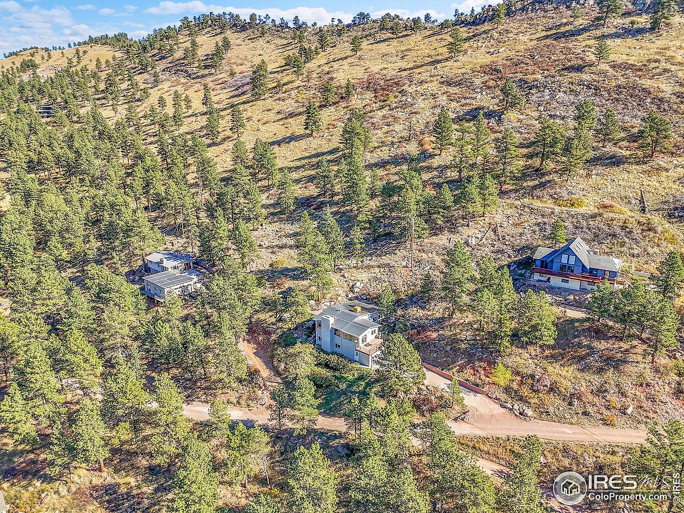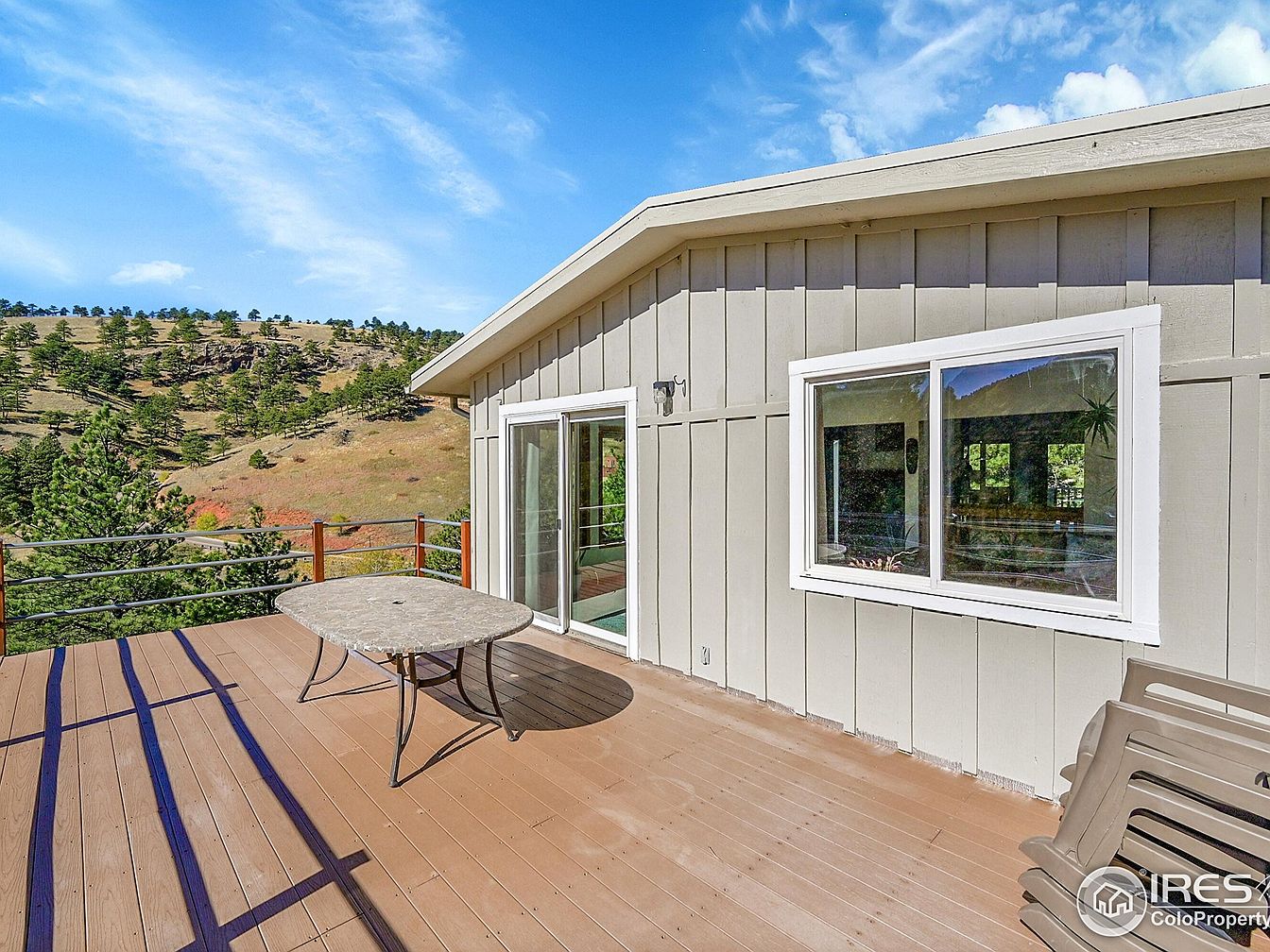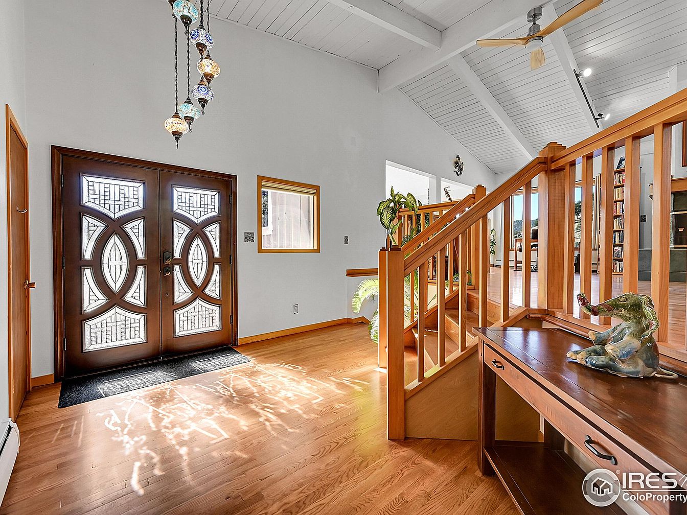 This stunning century-home-inspired mountain retreat, located just ten minutes from downtown Boulder, Colorado, perfectly blends historical charm with modern updates. Likely built in the mid-20th century, the architectural style exhibits classic split-level modernism, featuring expansive windows, soaring beamed ceilings, and an inviting double-sided fireplace that anchors the open-concept living spaces. Recent renovations include a brand-new south-facing deck, all-new high-efficiency windows, a fire-resistant roof, and fully updated interiors such as the custom wood floors and high-end kitchen. The home sits on a lush, pine-framed one-acre lot, offering panoramic views and abundant privacy, while a separate downstairs apartment enhances versatility. This thoughtfully upgraded listing, offered at $1,087,500, provides tranquil mountain living moments from Boulder’s city amenities.