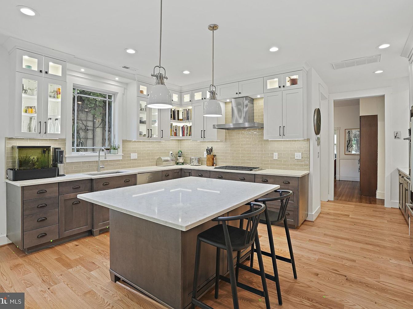 Nestled on Drummond Avenue in Chevy Chase, MD, this historical home, built in 1900, showcases exquisite architecture with modern updates after a significant renovation in 2021-2022. Spanning over 4,000 sqft, it features a wrap-around porch, high ceilings, and heart-of-pine floors, blending classic elegance with contemporary comfort. The property encompasses a generous 12,000+ sqft lot adorned with lush gardens and a detached garage converted into an artist’s studio. Listing for $2,095,000, it offers versatile living spaces ideal for multi-generational needs, including three main-level bedrooms and two upstairs. Conveniently located near parks and shops, it’s perfect for those seeking a quiet yet accessible community. Square footage is approximate; verification is recommended.