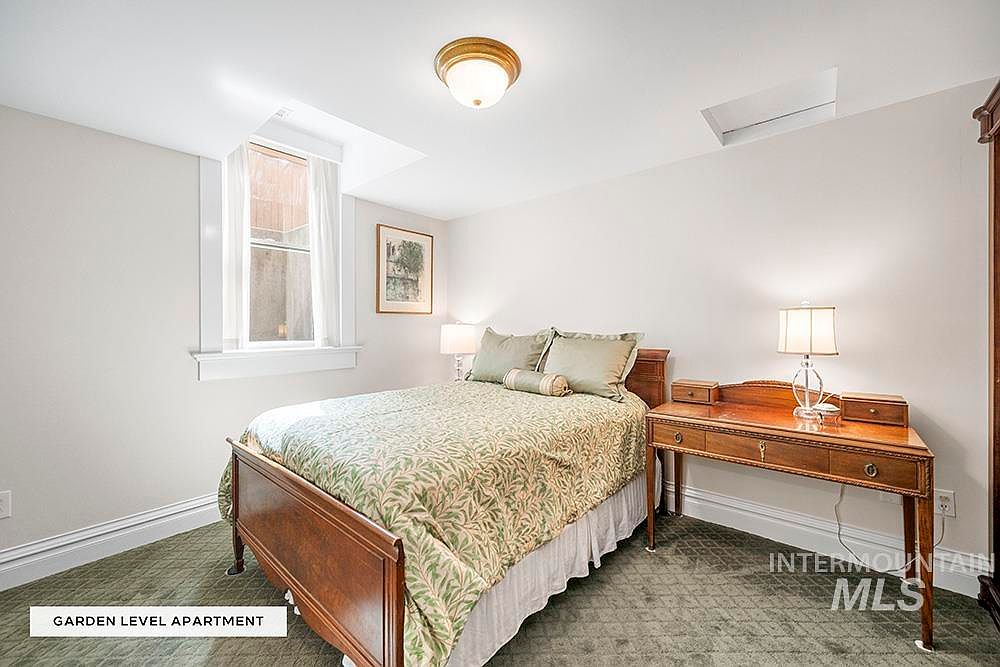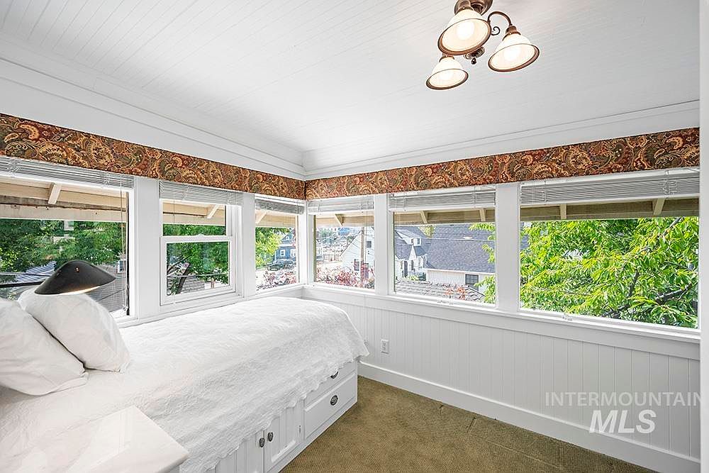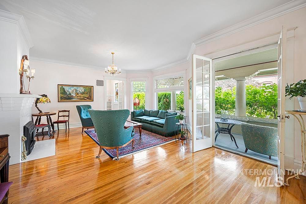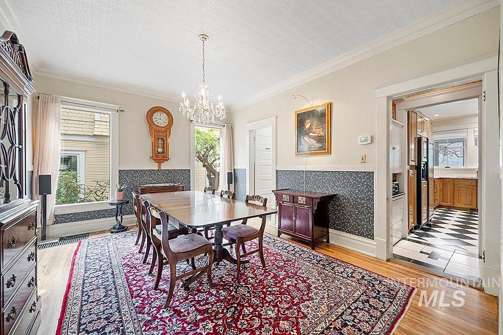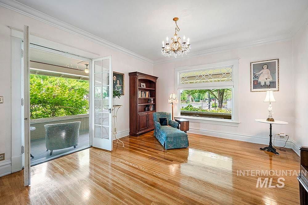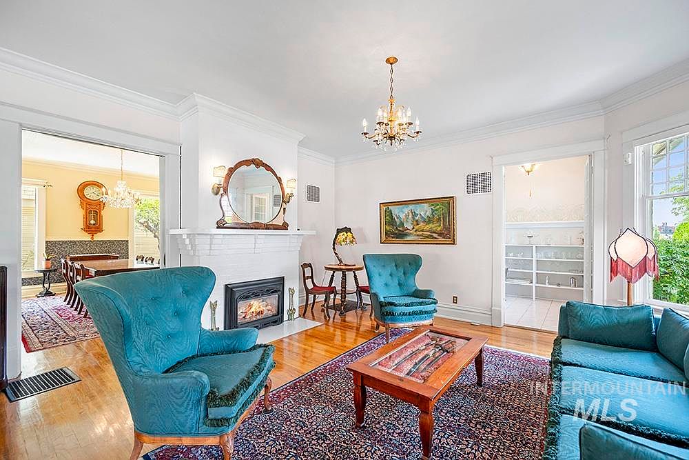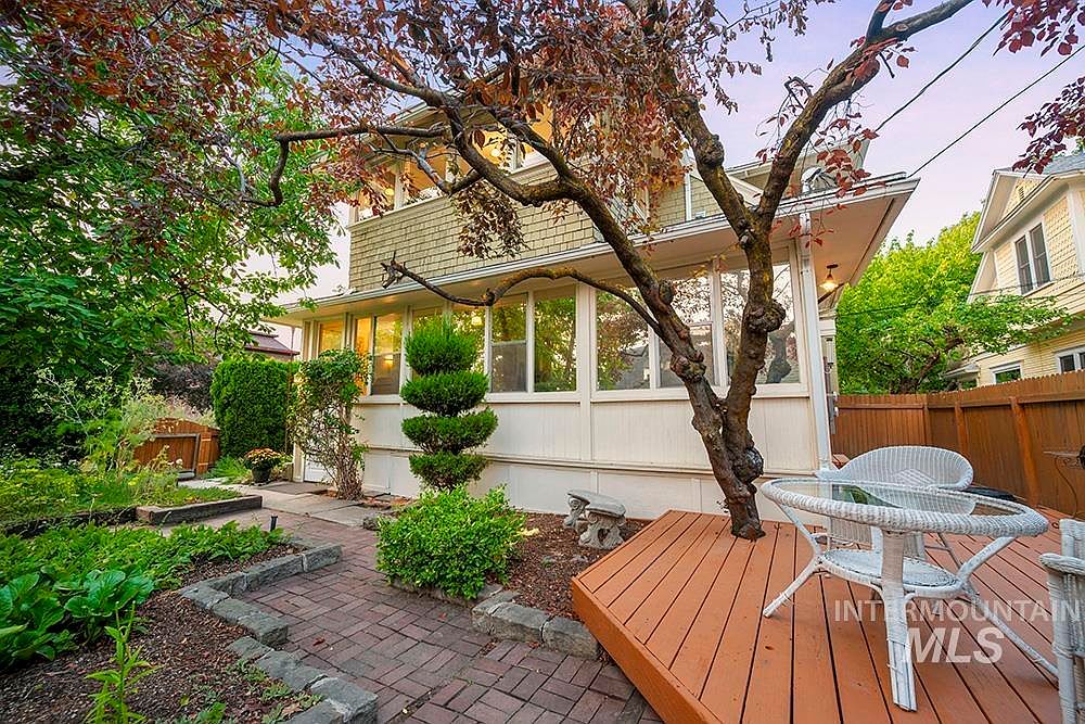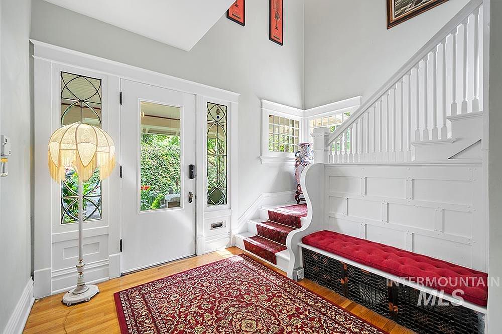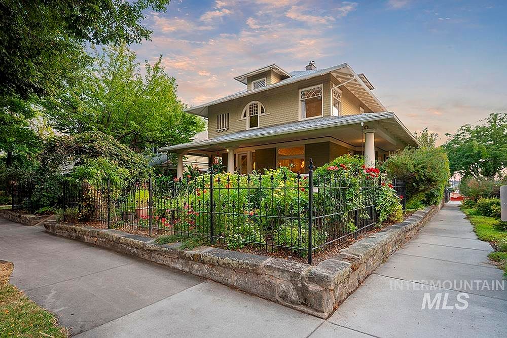 The Sensenig House, a celebrated American Foursquare built in 1905, stands on a commanding corner lot where Boise’s North End meets downtown. Listed on the National Register of Historic Places and a recipient of a Historic Preservation Award for its thoughtful restoration, this home boasts stunning curb appeal with lush gardens and an expansive wraparound porch. Inside, original character is preserved with leaded glass windows, hardwood floors, custom millwork, and abundant natural light. The main level features a gourmet kitchen, formal dining, and versatile office, while upstairs includes four bedrooms, two baths, and a private sauna. Offered at $1,198,000, this property offers flexible zoning and live-work potential, making it a rare opportunity in a prime Boise location.