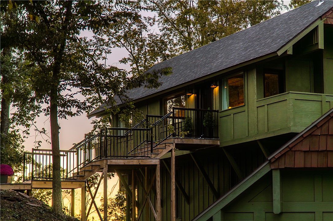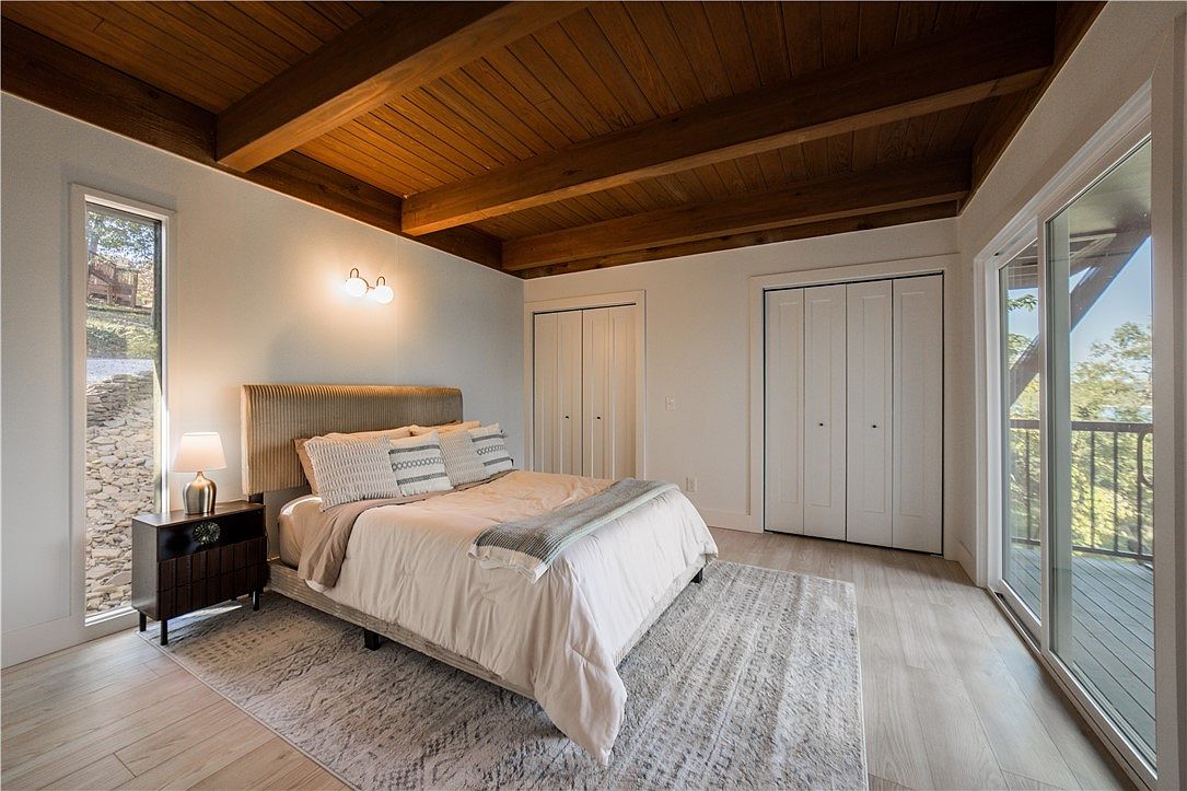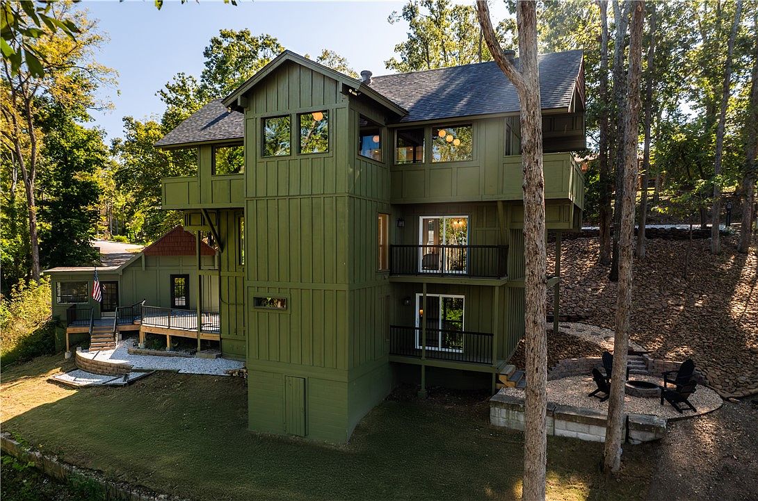 Situated in Rogers, AR, this mid-century modern lake house, originally built in the mid-20th century, has been extensively remodeled in 2023. It features sleek architectural lines, an open layout, and large windows that showcase picturesque Beaver Lake views. The home boasts energy-efficient upgrades, a new HVAC system, and luxurious finishes, integrating modern comfort with classic design. Set on a private road, the property includes two boat slips and is conveniently located near downtown amenities and Hobbs State Park. With a listing price of $1,350,000, this unique retreat spans a generous lot, ideal for both relaxation and outdoor adventures.