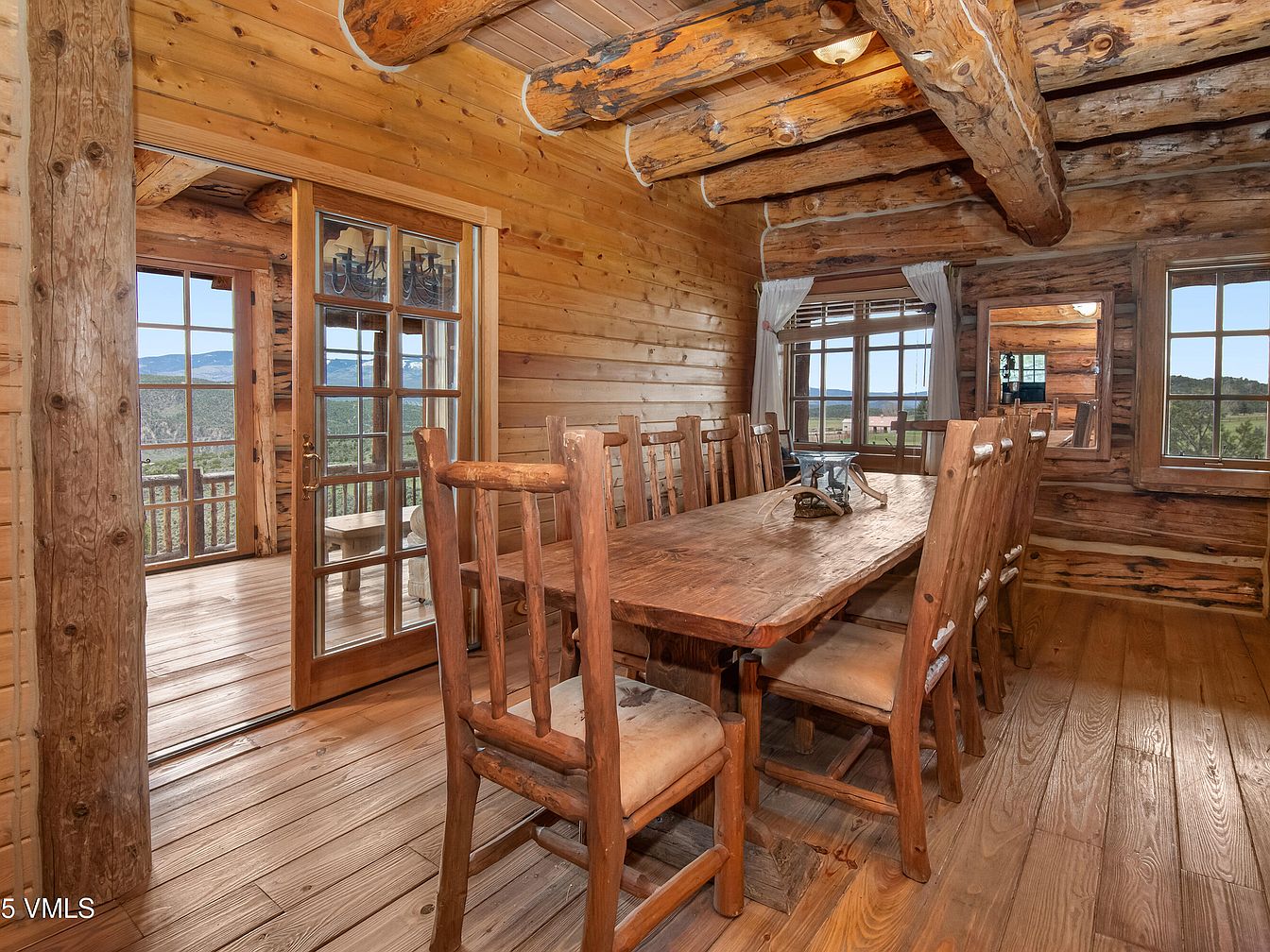 Nestled in the scenic Eagle, Colorado, this stunning handcrafted log cabin, set on 35 acres, embodies the essence of rustic elegance. Built with meticulous artistry, the home offers expansive mountain views and a spacious interior featuring 4 bedrooms and 6 bathrooms. Recent renovations have enhanced its adaptability with a generous lower-level bonus space, perfect for entertainment or guest accommodations. Priced at $2,499,000, this property includes water rights and horse-friendly zoning, allowing the construction of an additional 1,800 square foot secondary dwelling. With proximity to world-class skiing in Vail and Beaver Creek, this home not only provides tranquility but also embraces the adventurous spirit of Colorado mountain living.