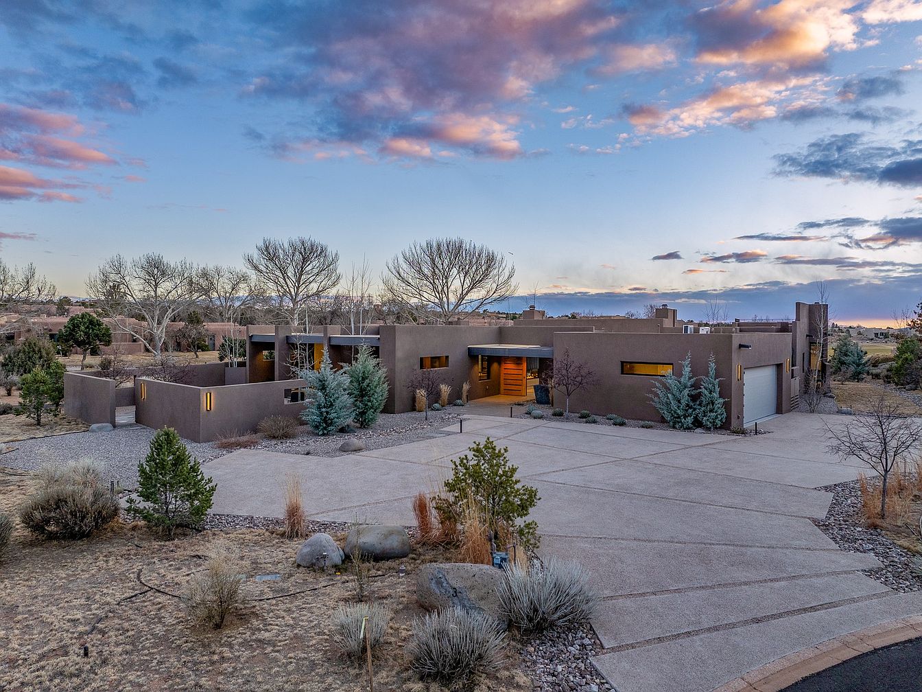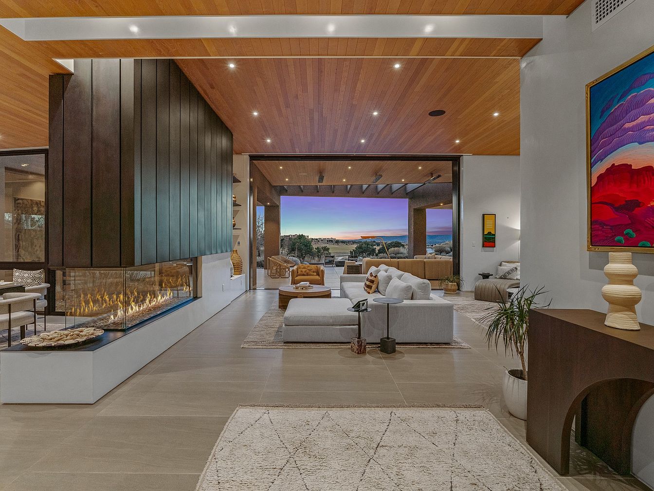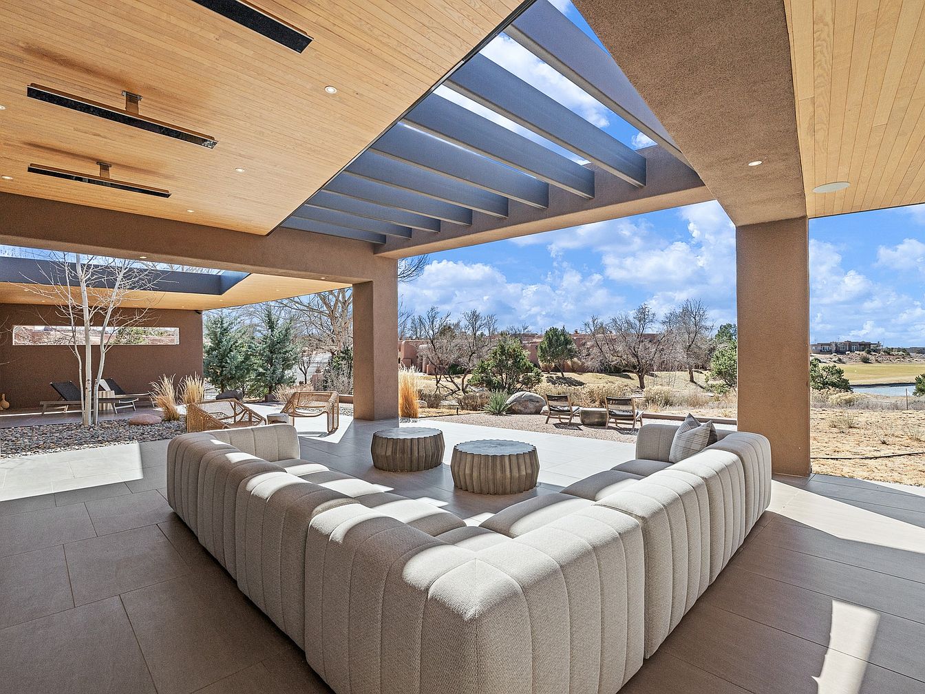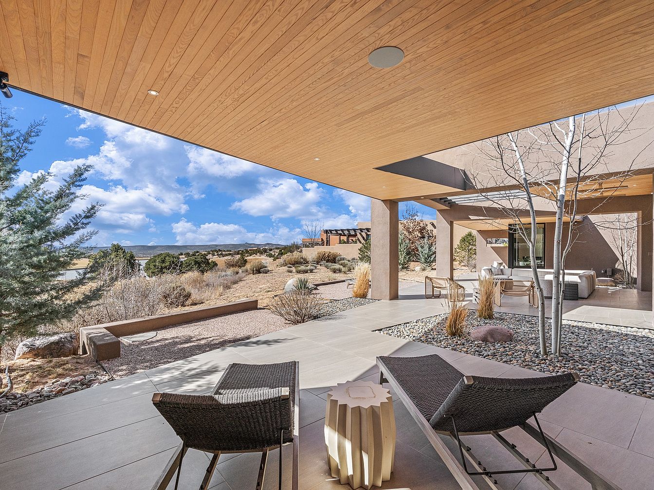 Nestled within the scenic landscape of Santa Fe, NM, this extraordinary property, constructed in 2023 by Zachary & Sons, redefines luxury living. Priced at $3,295,000, this home boasts contemporary architecture characterized by vast glass walls that effortlessly merge indoor and outdoor spaces, offering stunning lake and horizon views. With 2,500+ sq. ft. and a single-level design featuring two primary suites and a guest casita, it embraces both intimacy and functionality. Recent renovations emphasize high-quality finishes like Neolith surfaces and professional-grade Hestan appliances, while outdoor amenities include a rooftop deck and custom fire features, solidifying its status as a standout residence in the prestigious Las Campanas community.