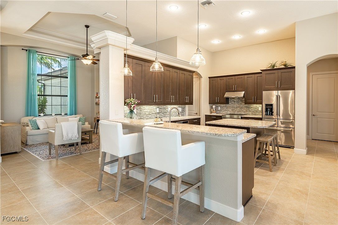 This stunning waterfront property in SW Cape Coral, FL, perfectly blends modern luxury with relaxation, situated on an oversized ½-acre+ lot featuring approximately 2,700 sq.ft. of interior space (5,500 total). Built recently with high-end materials, including a brand-new flat tile roof and full impact windows, it captures breathtaking canal views and stunning sunsets. The architectural style reflects contemporary elegance with a spacious open layout, 12-ft ceilings, and lavish outdoor amenities like a saltwater pool and expansive lanai. Recently listed for $1,198,900, this home includes a custom outdoor kitchen, a wrap-around dock, and significant renovations completed in 2025, showcasing meticulous attention to detail by the current owners.