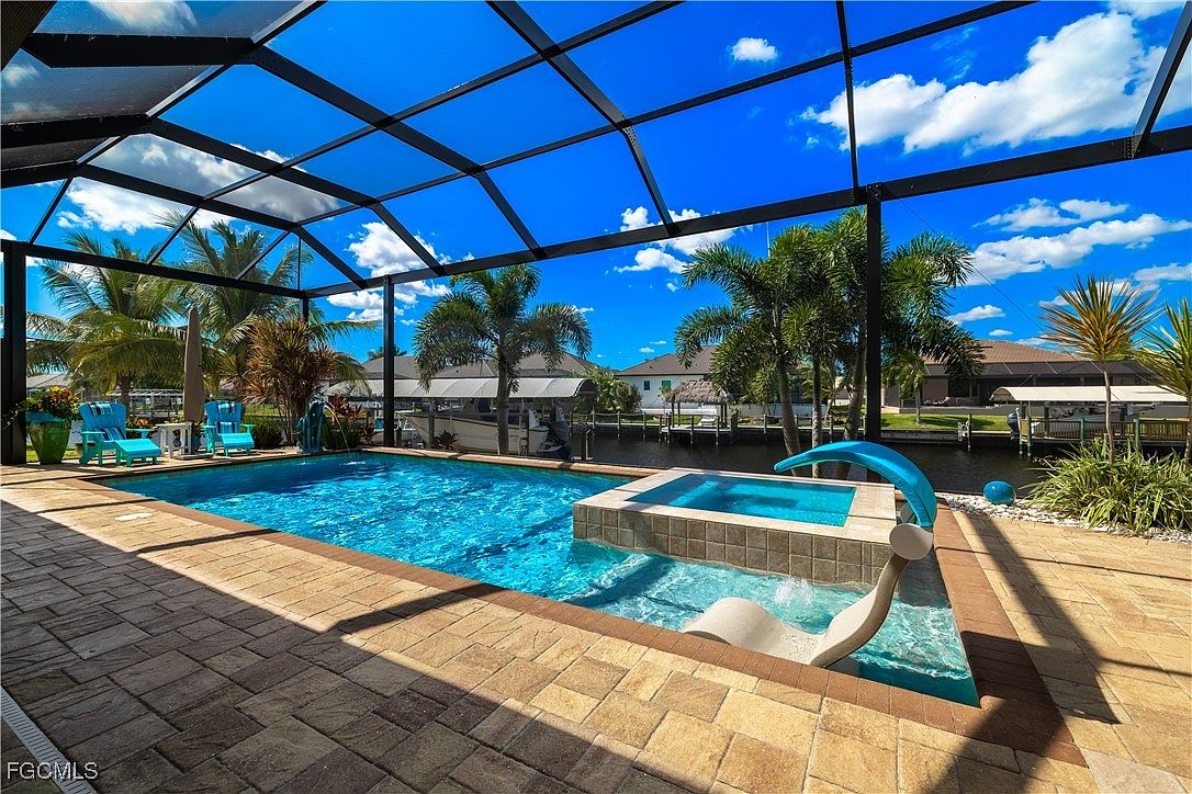 Stunning Waterfront Retreat in Cape Coral, Florida, Featuring Canal Views, a Resort-Style Pool, and a Custom Outdoor Kitchen